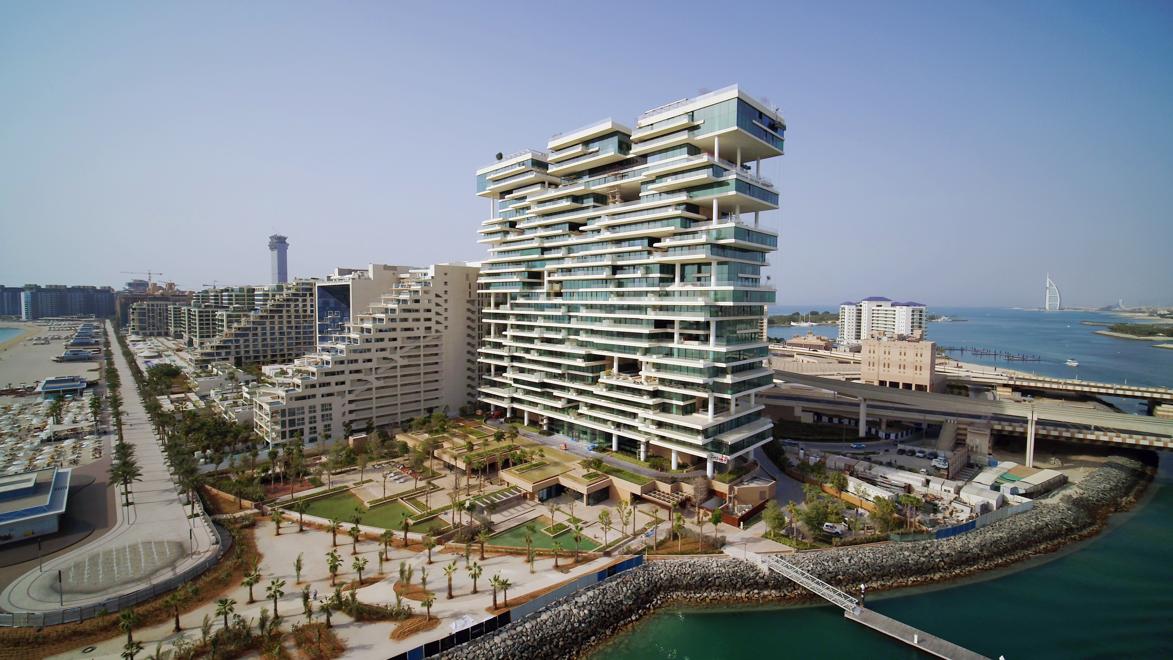 One at palm rises on the Jumeirah Palm Island in Dubai. It consists of 90 exclusive and uniquely designed residences. The project takes full advantage of the panoramic views of the palm to the North, and the Dubai marina to the South, while simultaneously providing a sense of arrival and iconography at the entrance of the island.