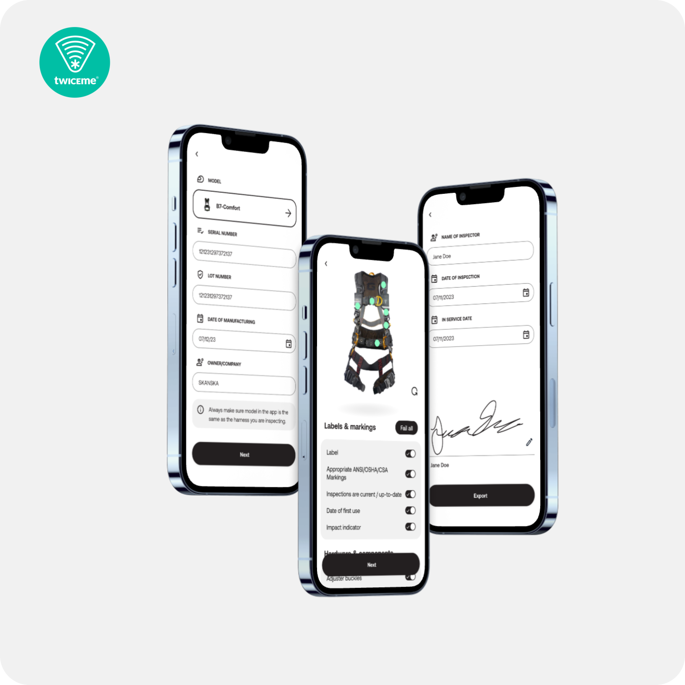 Twiceme began using HTH in mountain sports but expanded into the industrial space. Twiceme integrated next-generation NFC technology directly into safety gear because most people now wear helmets when skiing/snowboarding or biking. This model was applied to the construction industry. NFC was a natural choice since it does not require power, can store information locally, and has no cloud storage, which could create a cybersecurity risk. Using a smartphone app, a device people bring everywhere, one can immediately tap into the technology. Twiceme can then update the HTH app without interacting with the embedded NFC chips.