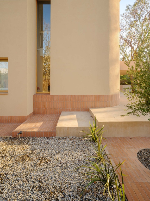 The project aims to establish a fluid relationship between the interior and the slightly depressed exterior by constructing an elevated platform at the same level as the original house, creating a transition area with the garden and blurring the boundaries between both. New, meticulously located windows reinforce this relationship and flood the house with natural light. The project recognizes the original curved geometry of the existing staircase as unique. These curved lines are thus exported to new platforms, interior walls, kitchen, and pool, integrating this geometry into the design of new elements. The new layout emphasizes fluid circulations and open spaces through equipped walls that generate and distribute the space, incorporating storage and intimate areas within. The third axis of the project decisively responds to an energy strategy of self-sufficiency and minimal environmental impact, incorporating a complete catalog of sustainable tools, renewable energies, and ecological and local materials, as well as the design of a garden that promotes biodiversity and environmental improvement