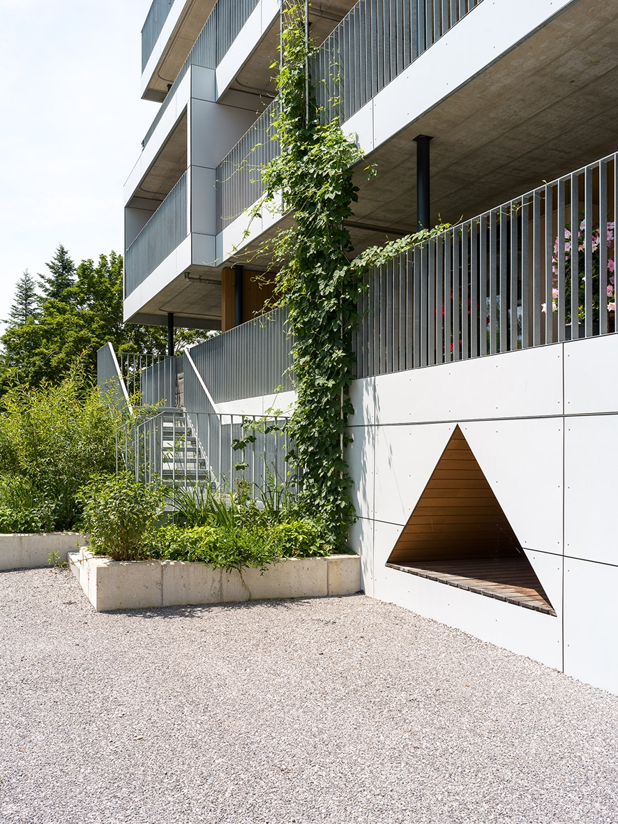 To reduce CO2 emissions, the building's structural integrity will be preserved. The basement will be excavated, transforming into a new entrance level with communal spaces. The project actively fosters social interaction among residents, for instance, through new addressing towards a redesigned courtyard or integrating garage accesses into the environment instead of directly into building stairwells.