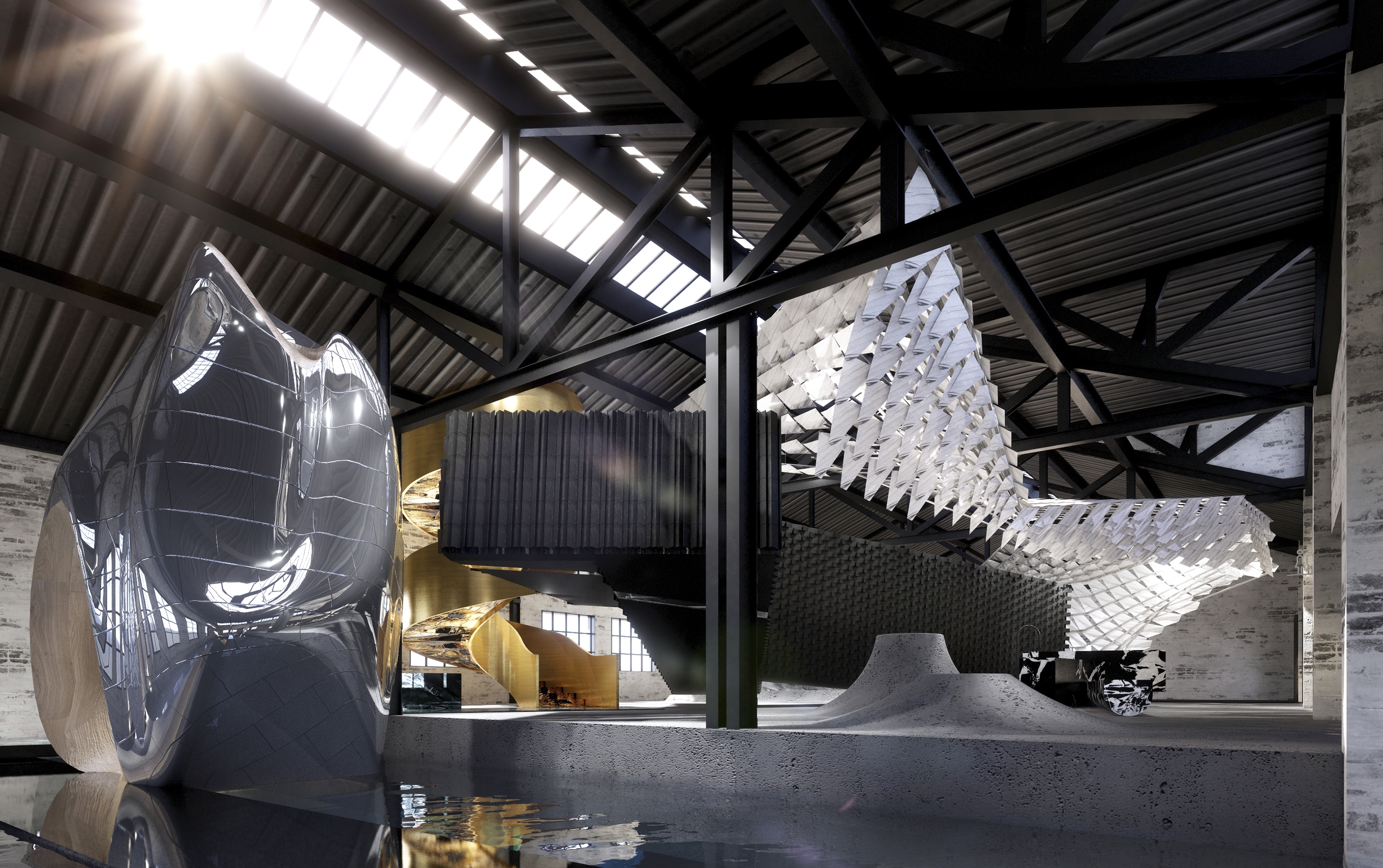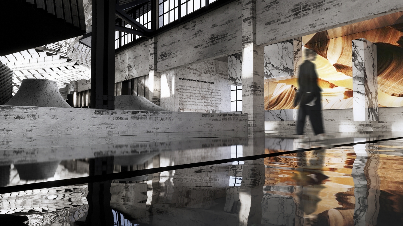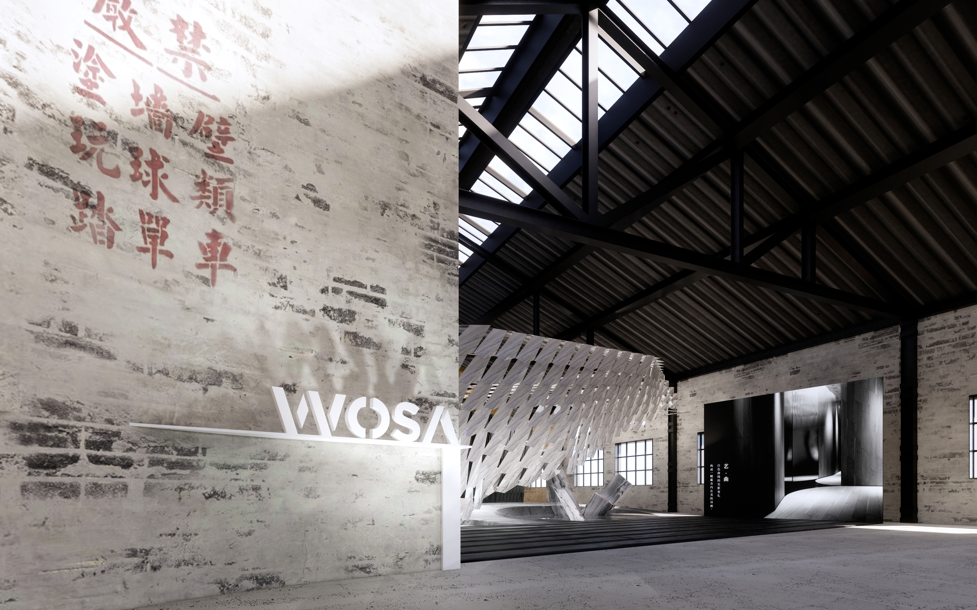 In a repurposed 580m2 factory in Shanghai, this WOSA retail space surpasses conventional sintered stone showrooms by seamlessly blending art, architecture, and commerce to create an immersive experience.