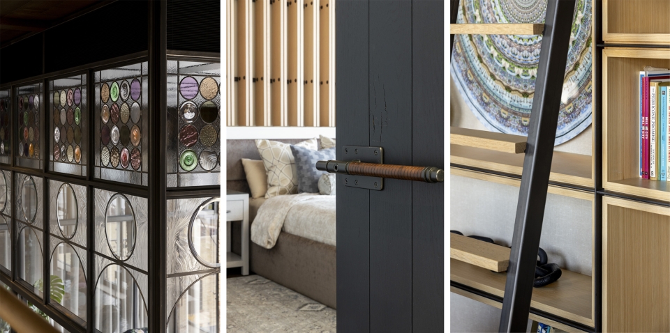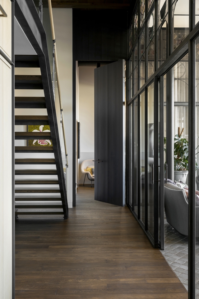 The space balances lofty double-height areas with more intimate, compressed zones, made possible by the 18-foot ceilings. Handcrafted features abound, including intricate steelwork, bespoke cabinetry, and warm wood finishes that wrap the entire space. The design thoughtfully integrates industrial elements like exposed steel columns and mechanical systems while embracing Victorian elegance, creating a seamless flow that feels both expansive and personal.