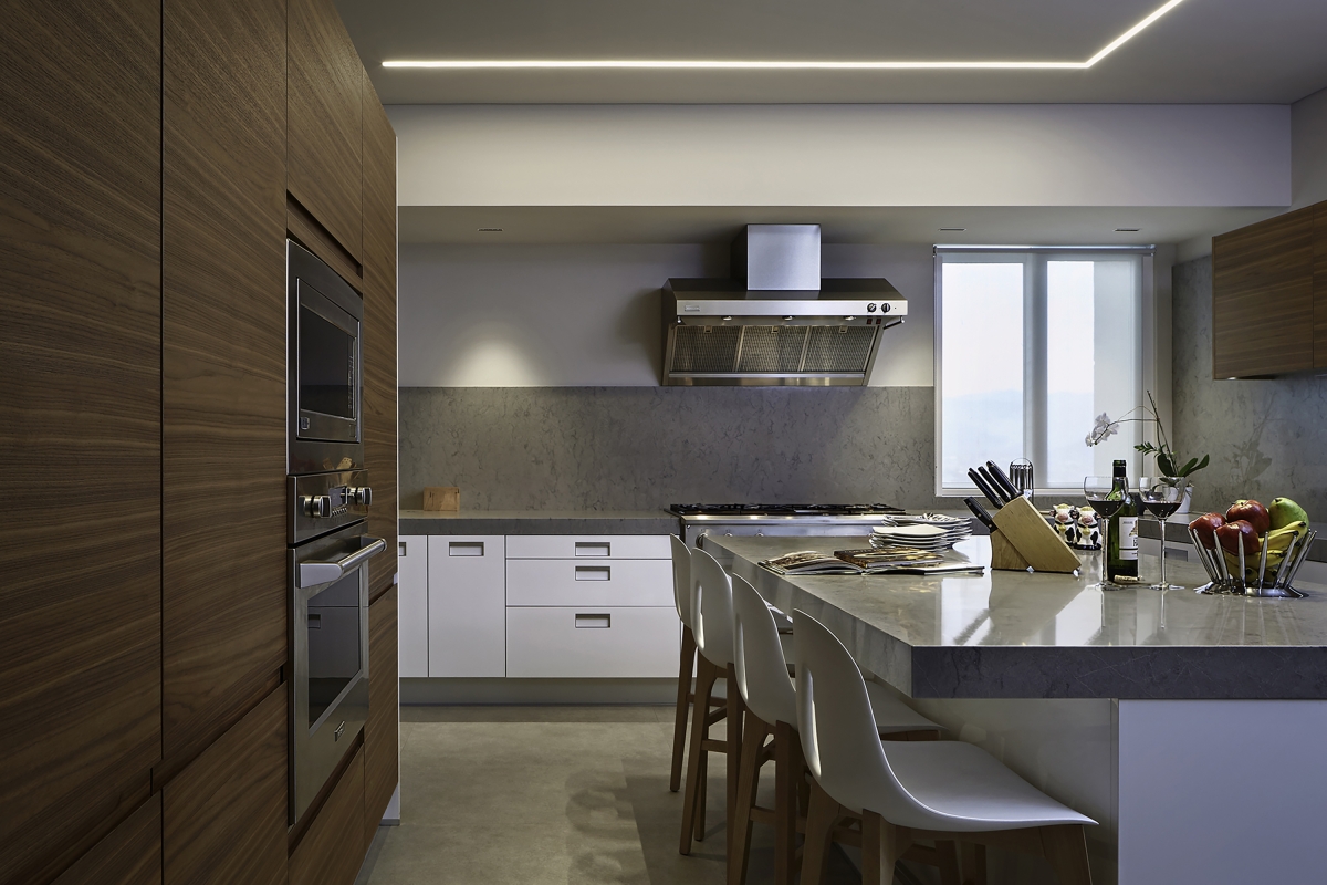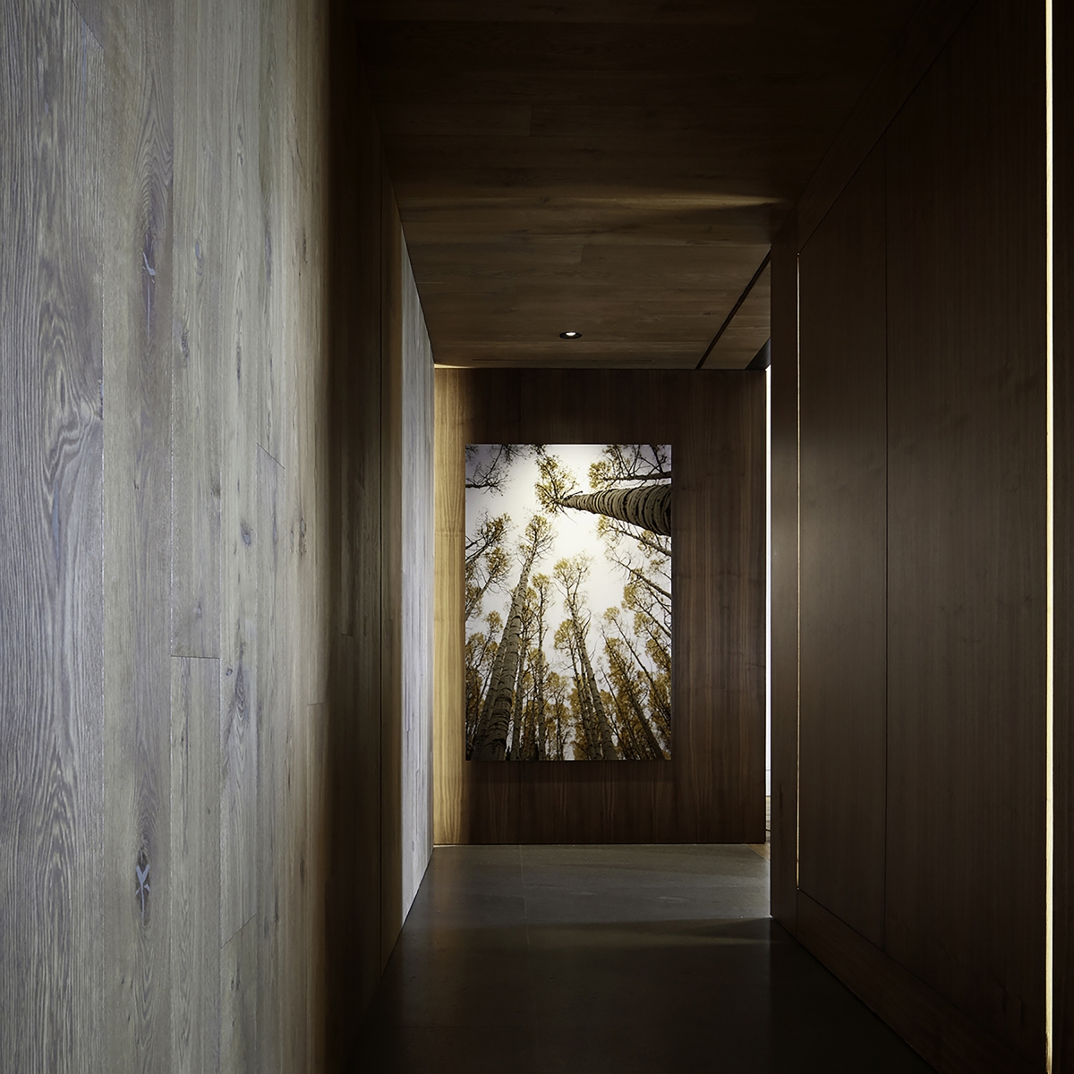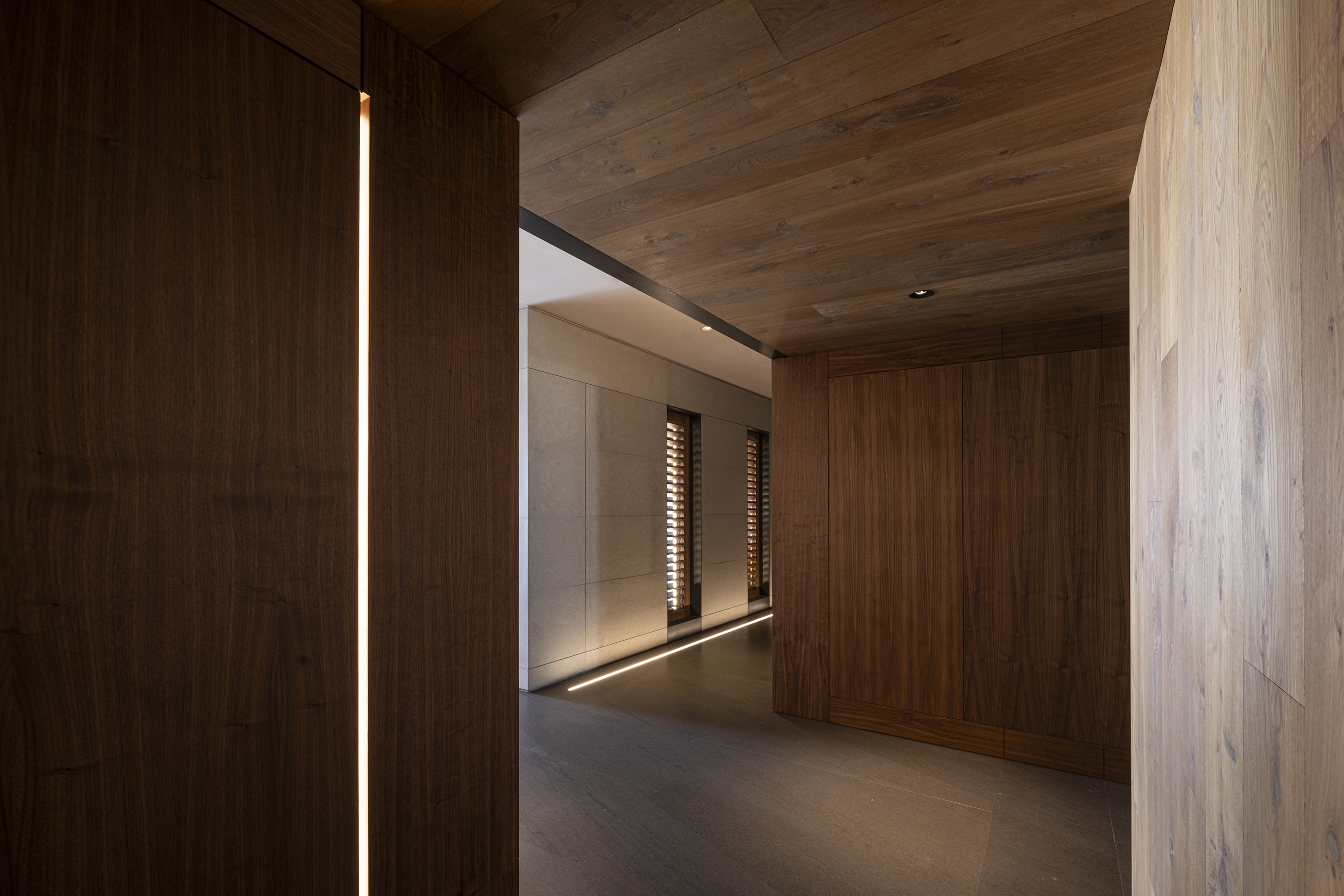 The project is centered around a wooden core, the main circulation hallway, which houses all services. This corridor is designed as a box completely lined with oak wood, concealing service areas and acting as a threshold or filter between the public and private spaces of the residence.