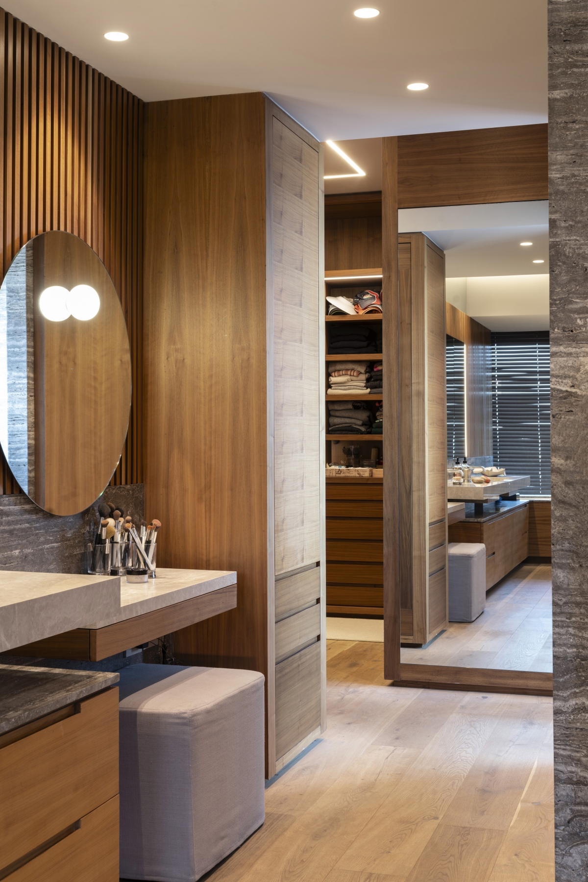 This timelessness and the use of materials to define spaces establish the apartment's aesthetic foundation in a compelling way. Regardless of changes in furniture, the space will always be distinguished by the same aesthetic and vision provided by the firm for the client.
