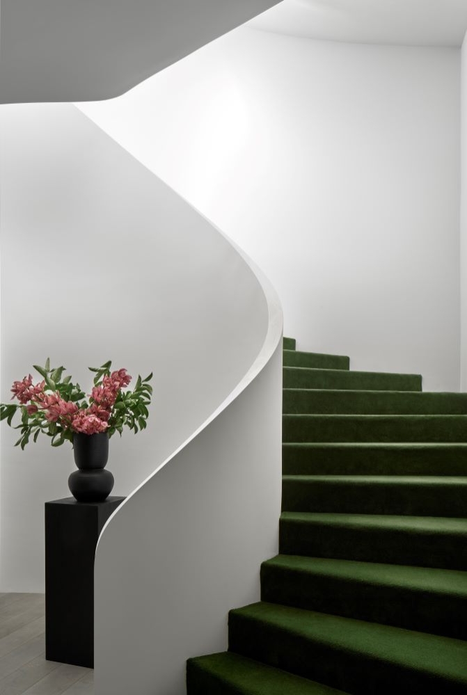 The exterior’s classic composition follows through the interiors with a formal arrangement focussing on individually tailored spaces and rich material pallet.