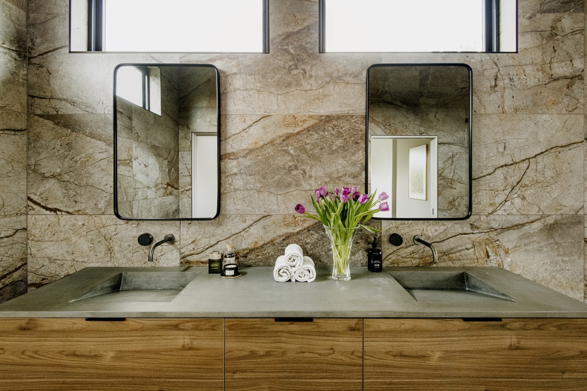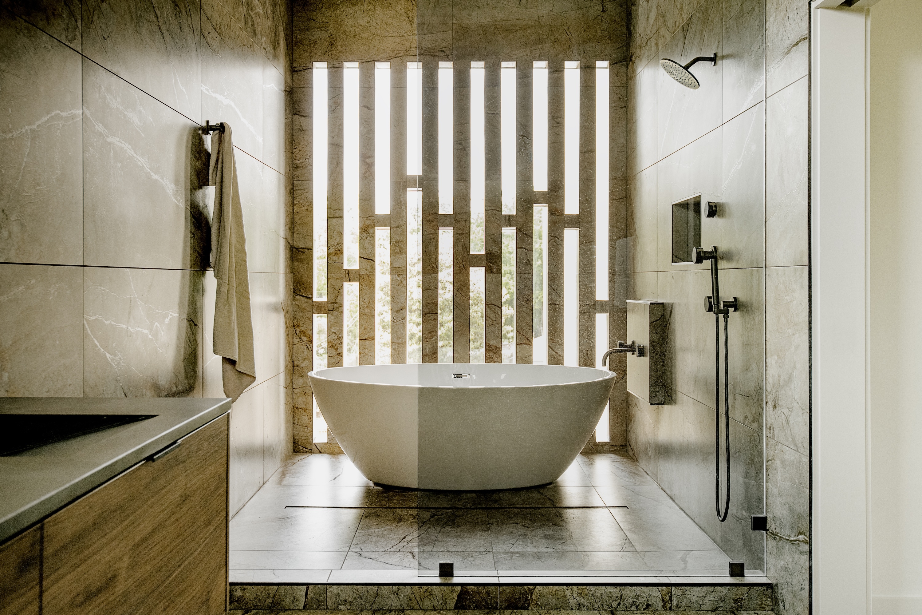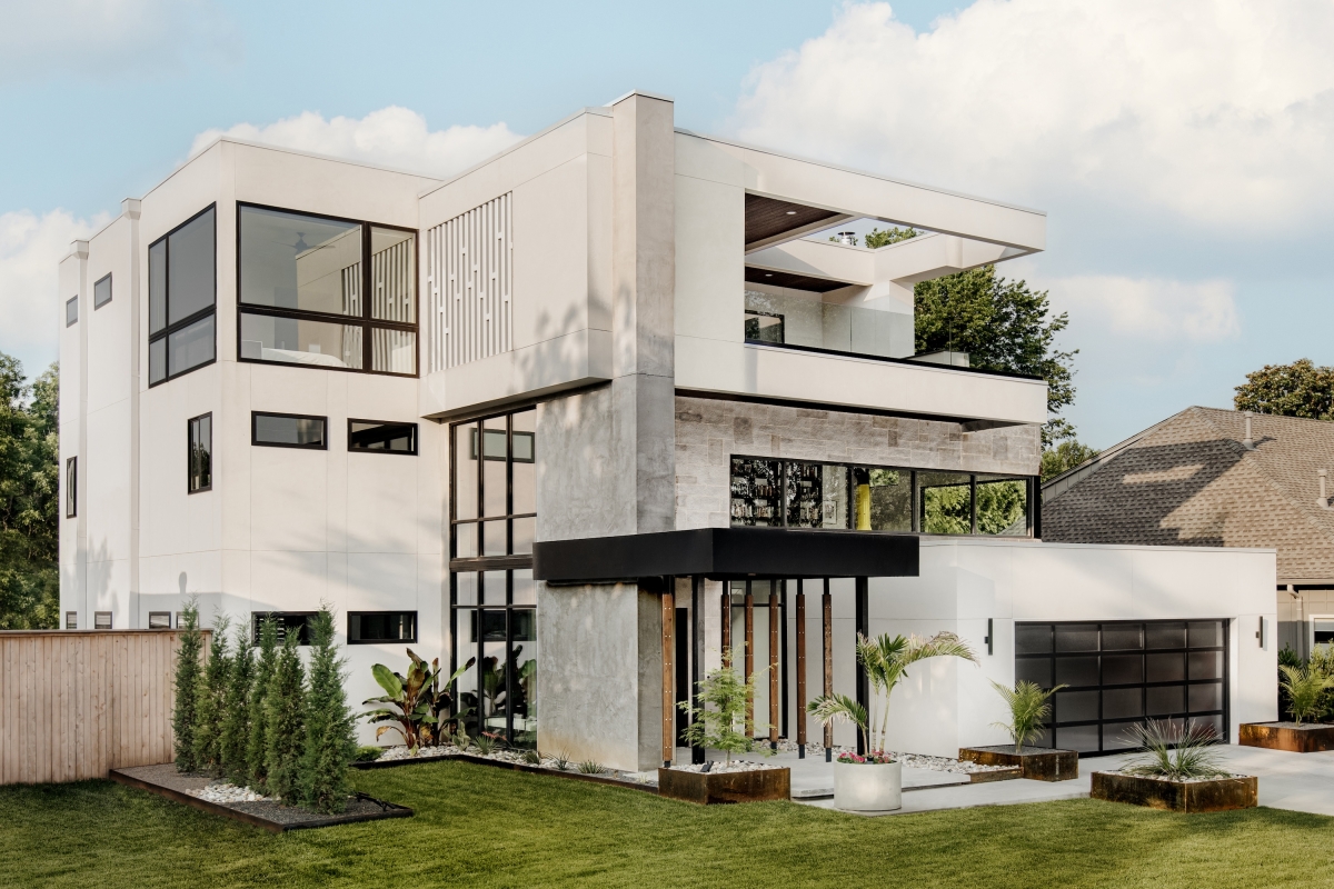 When we were approached to design this home, we had to accommodate a lot of programming in a small footprint. Creating a 3-story home on a diminutive lot presented a lot of challenges. In response, we used as much of the space as possible. The client wanted a 2-car garage which we knew would dominate the front elevation, so we had to make sure the entry was profound enough to capture your attention. An open-air third-story patio with a cantilevered corner provides views heretofore unavailable in the area. An open-concept floorplan provides visual connections between the living room, dining room, and kitchen with a two-sided fireplace and custom wine refrigerator defining the spaces. With three bedrooms on the second floor, we were able to use the entire third floor to create a primary suite with an elegant bathroom and separate walk-in closets. Expansive windows and the introduction of natural elements to the interior truly bring the outside in for this young family.