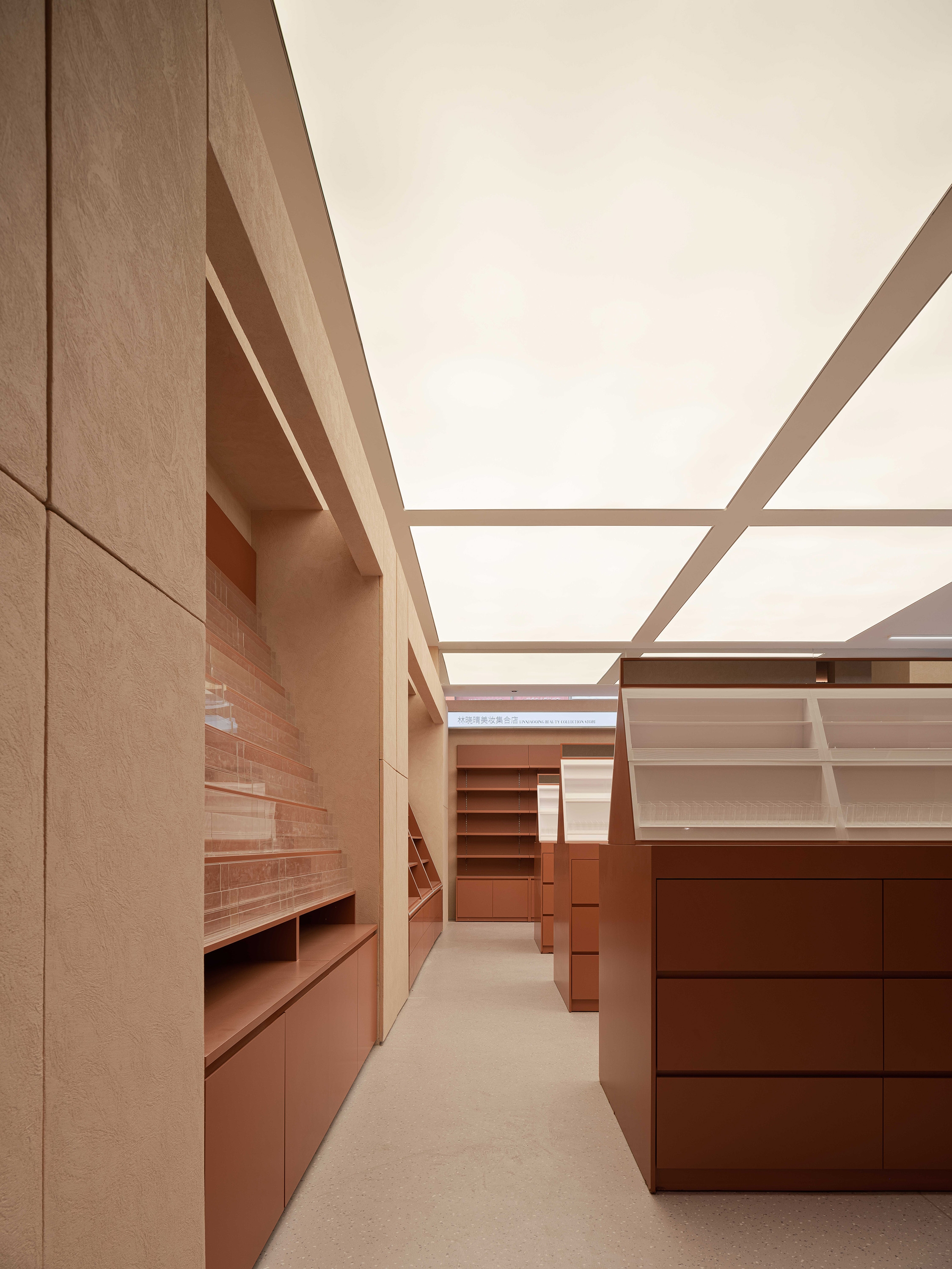 Drawing inspiration from natural environments and the core of minimalism, the first floor creates a delicate and multifunctional hub space, optimizing the display effect of wall space with either straight or inclined structures. In terms of lighting, artificial light is the main source, while natural light is cleverly introduced to achieve a dynamic balance in the space, providing a sense of healing for visitors amidst the interplay of light and shadow.
