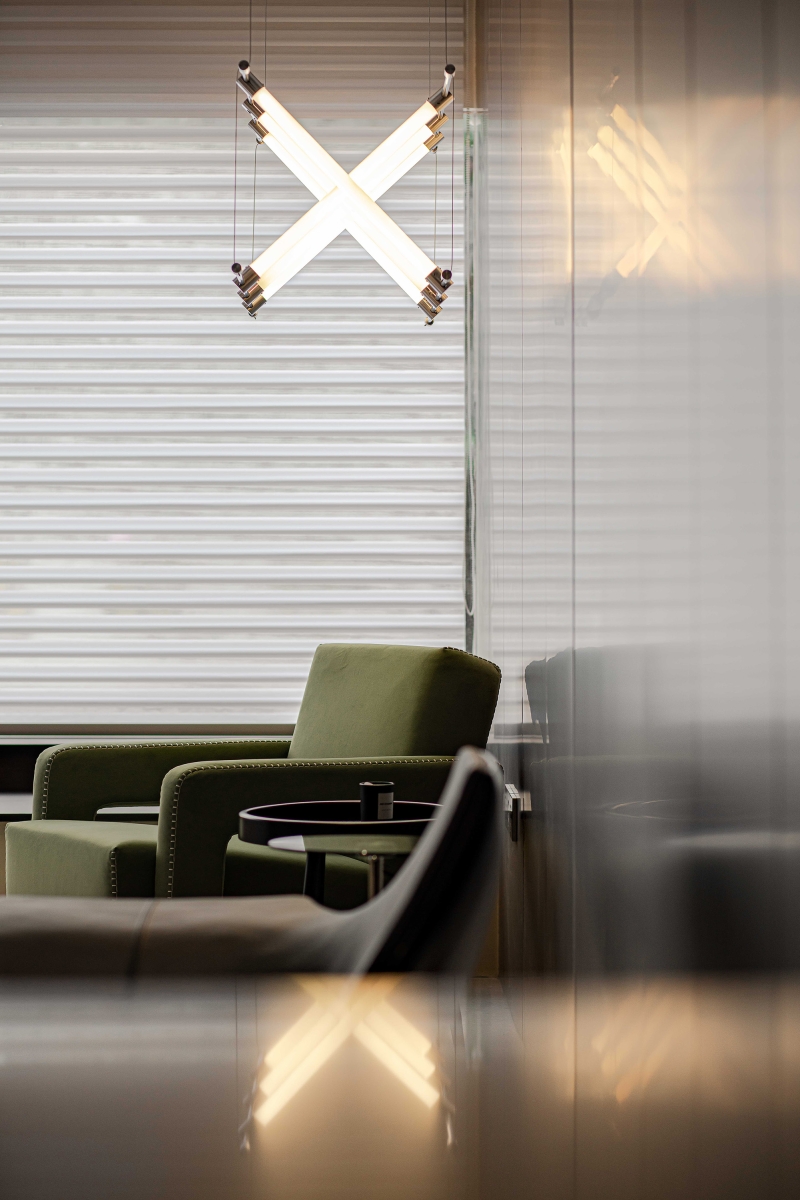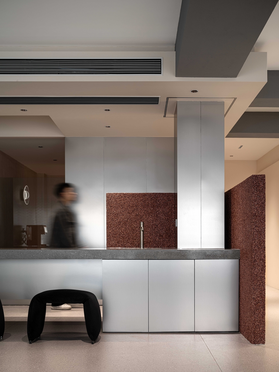 On the second floor, metallic elements are extended, utilizing the intersection of color block collisions and texture variations to construct a layered primary and secondary space. The use of white space accentuates the high-end tone of the materials, and combined with diverse furniture creativity, it creates different narrative scenes that are both continuous and independent, offering a layered emotional experience and aesthetic enjoyment.