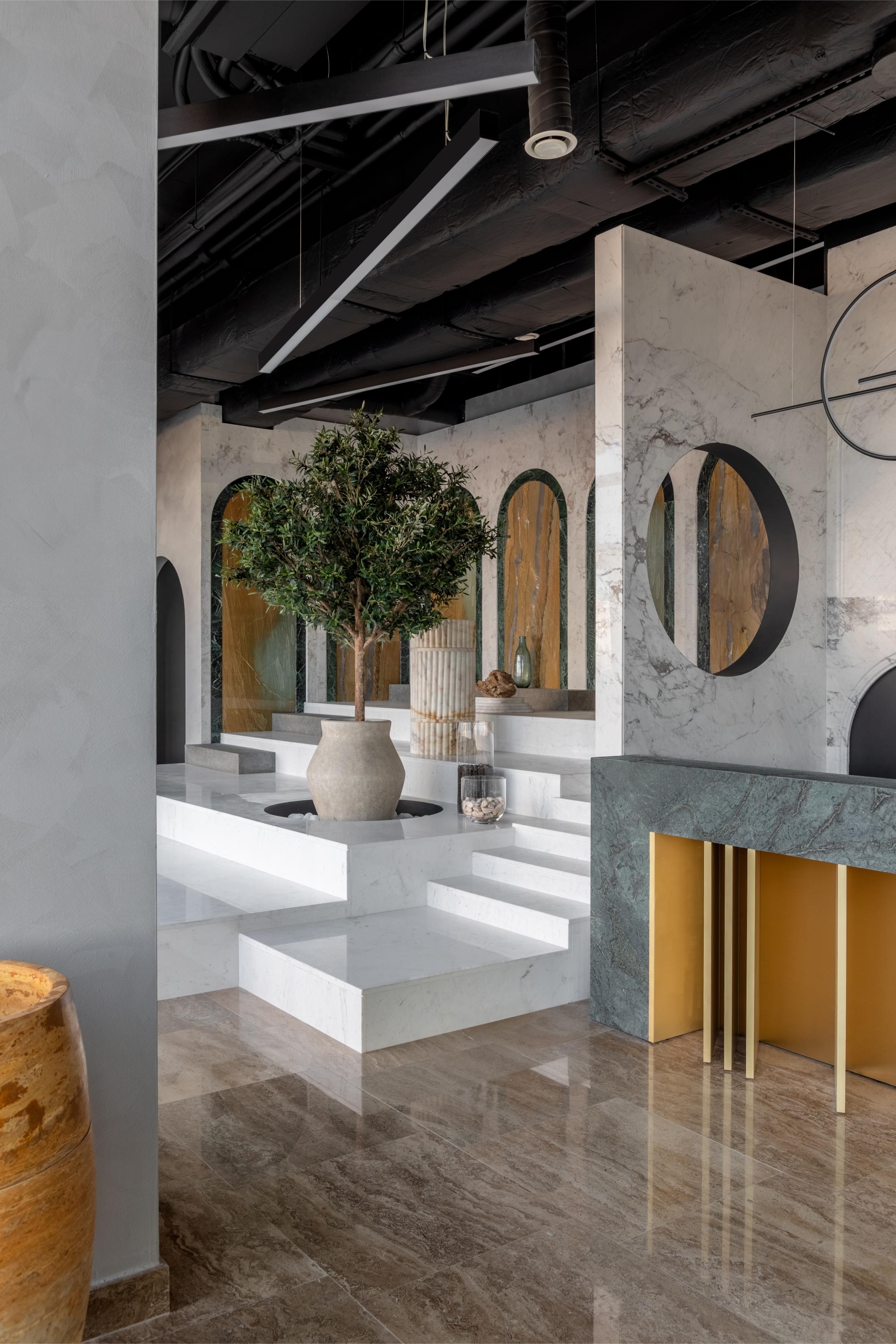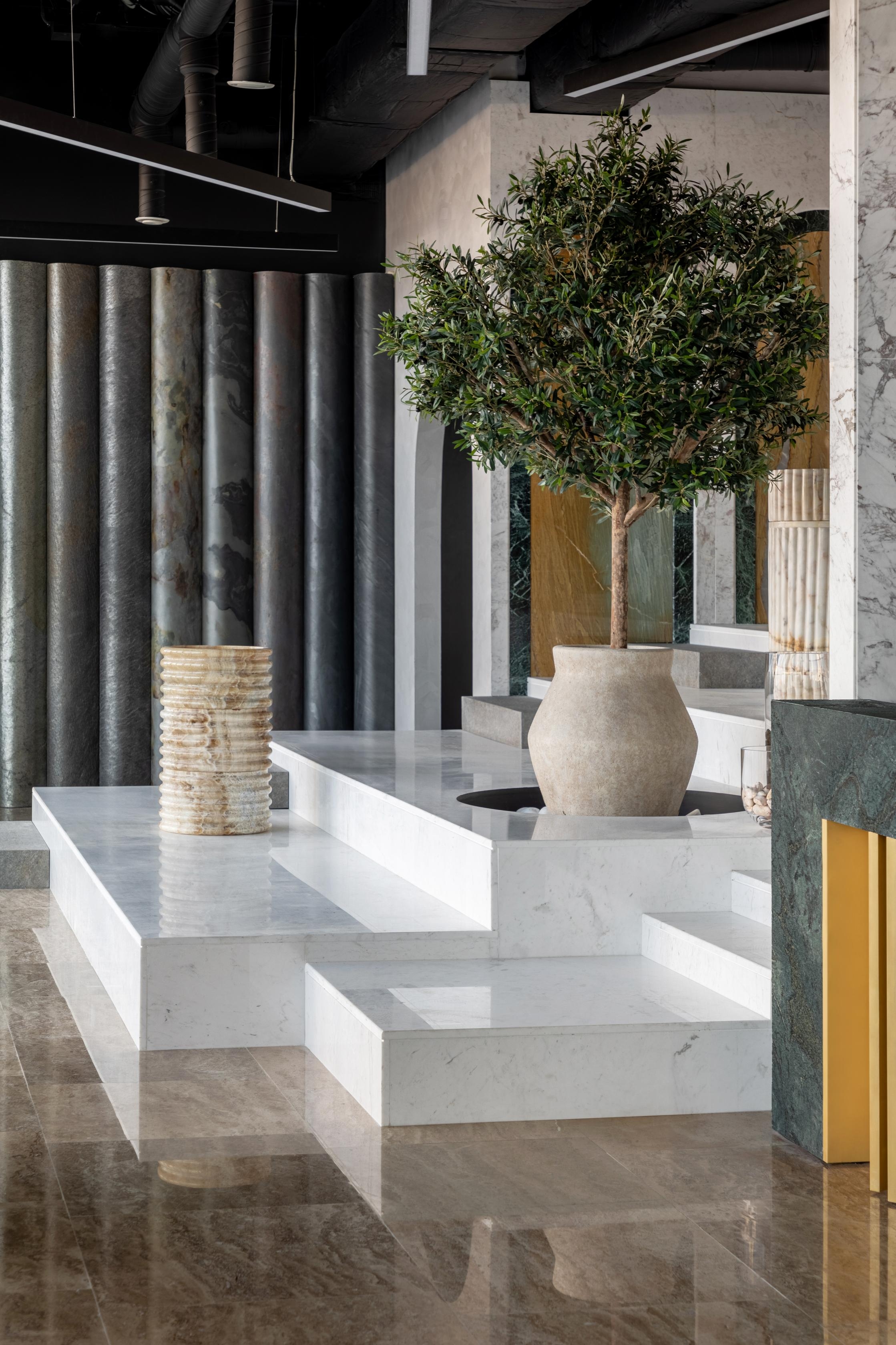 The primary objective was to create a space that does more than simply provide a sales experience. Instead, we designed a controlled course where clients are guided through a thoughtfully planned narrative. This approach ensures that each material is revealed at the optimal moment, fostering a sense of discovery and appreciation.