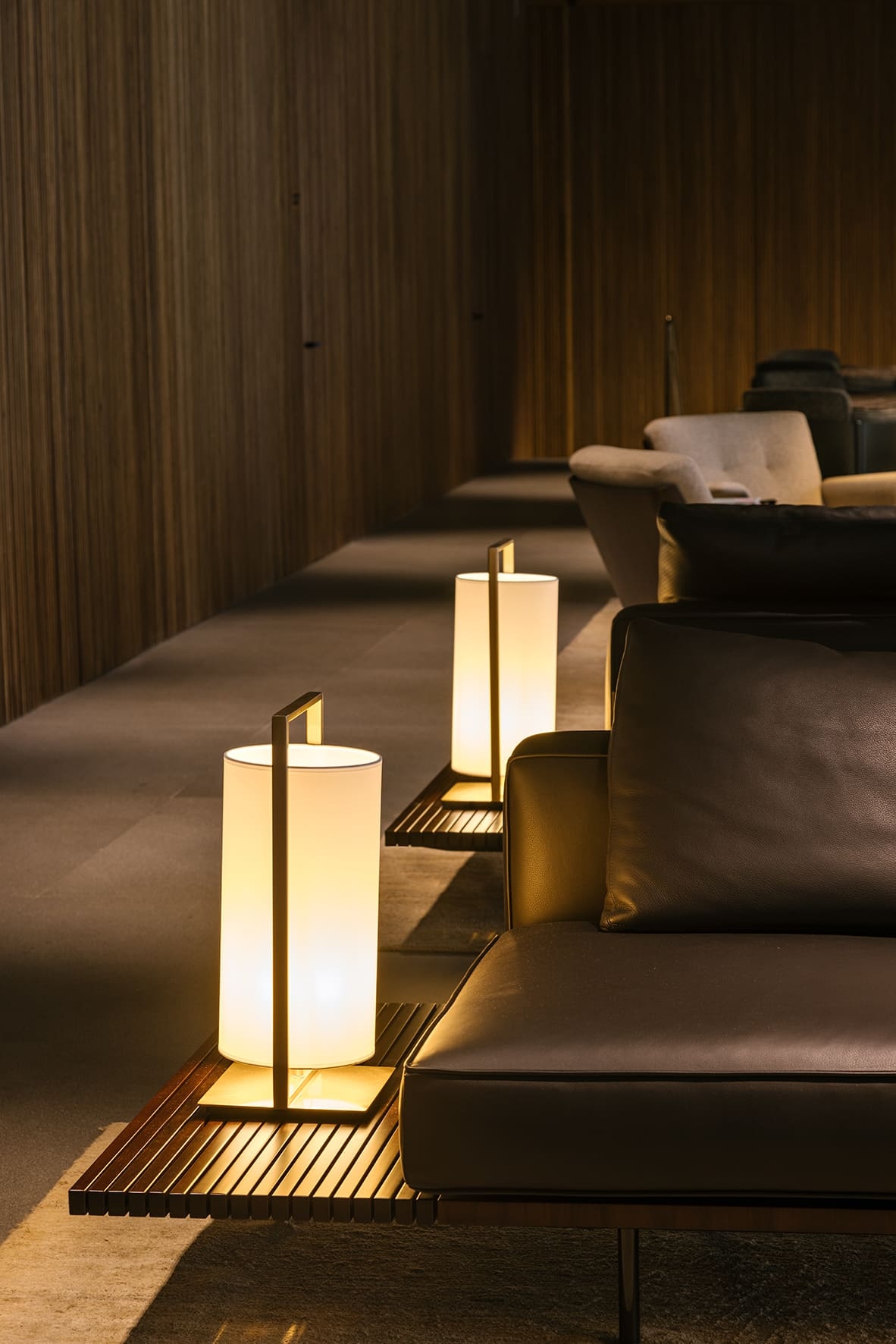 Important mid-century pieces are balanced with contemporary designs by Minotti, the most famous furniture factory from the heart of Italian tradition, including some design collections by Studio MK27 such as Brasilia sofas, Super Quadra sideboards and the iconic Daiki armchair.