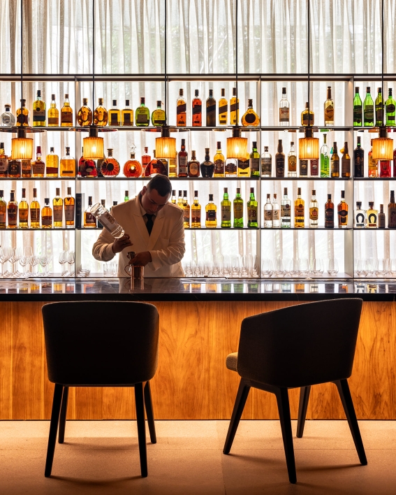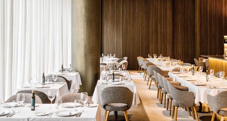 Fasano Itaim is an ode to classic elegance. The Italian family, devoted to hospitality for three generations, forged a brand over the principles of excellence and warm service. Its interiors are dark, walls covered in Brazilian freijó wood, with very punctual lighting. A diffuse natural brightness filtered by continuous linen curtains creates an ethereal atmosphere.