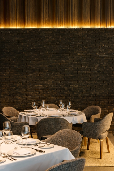 The lobby and bar’s sober ambiance undergoes a transformation as you step into the restaurant. Here, the atmosphere is cozy, bathed in natural light streaming in through generous windows. The use of tactil