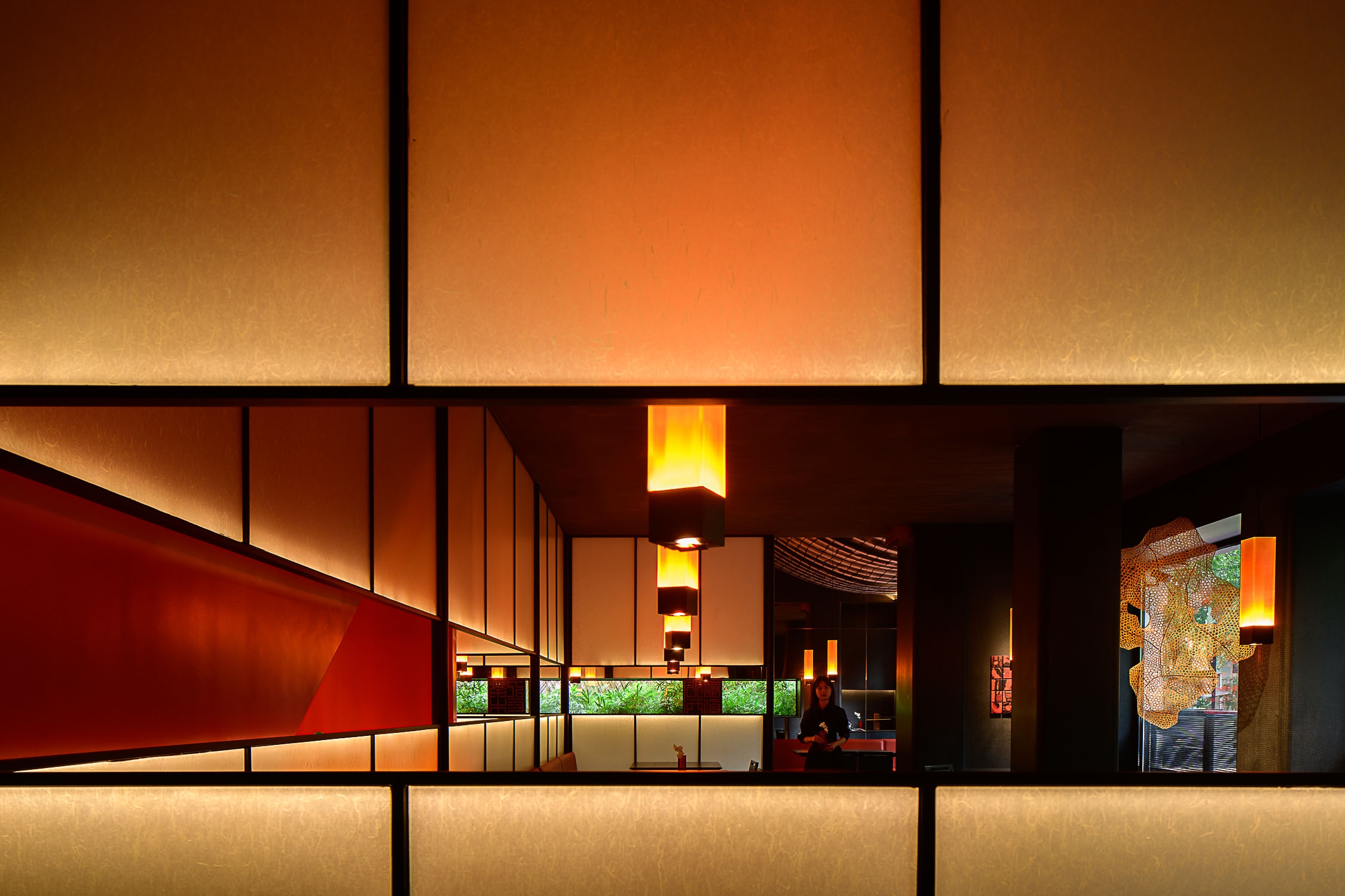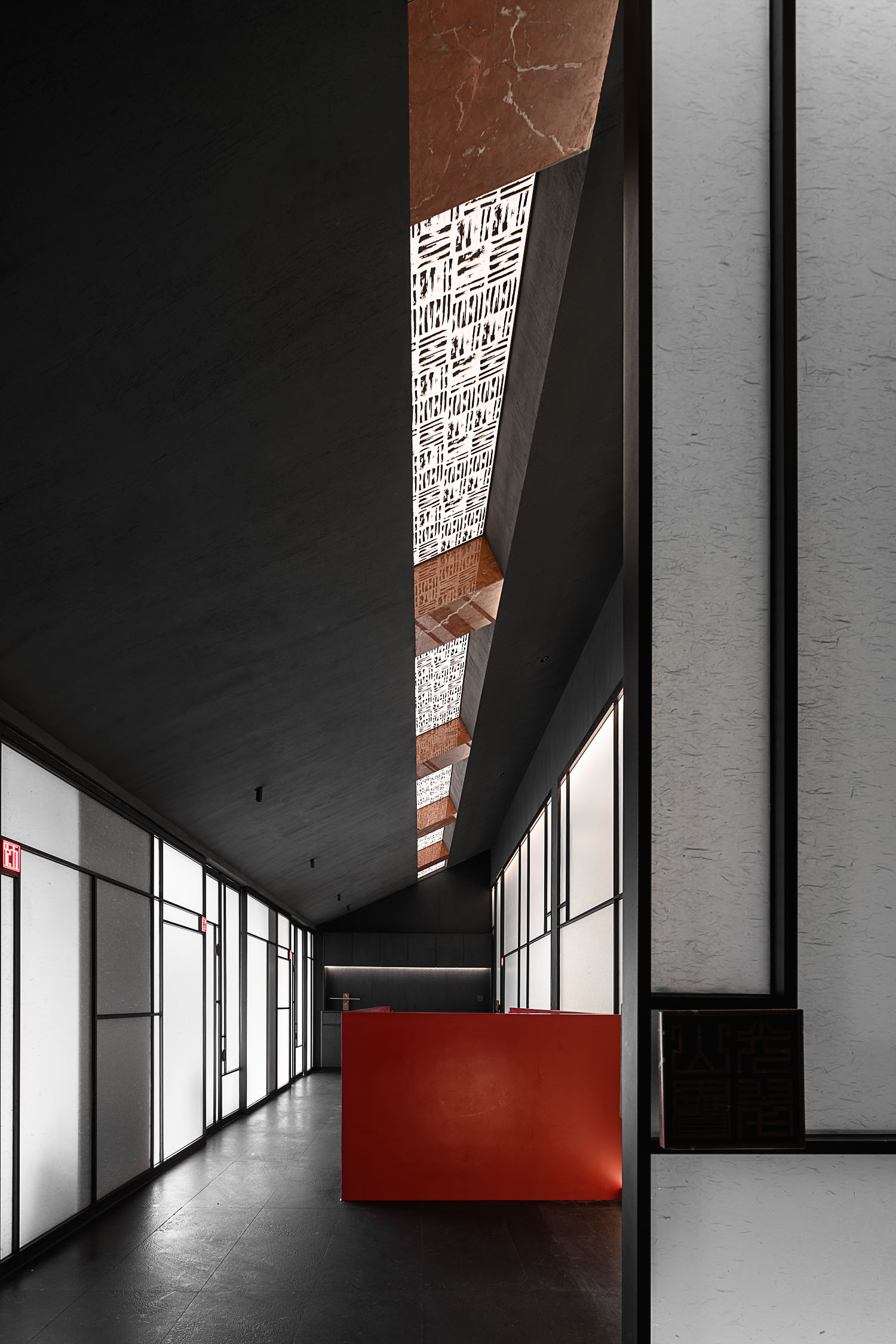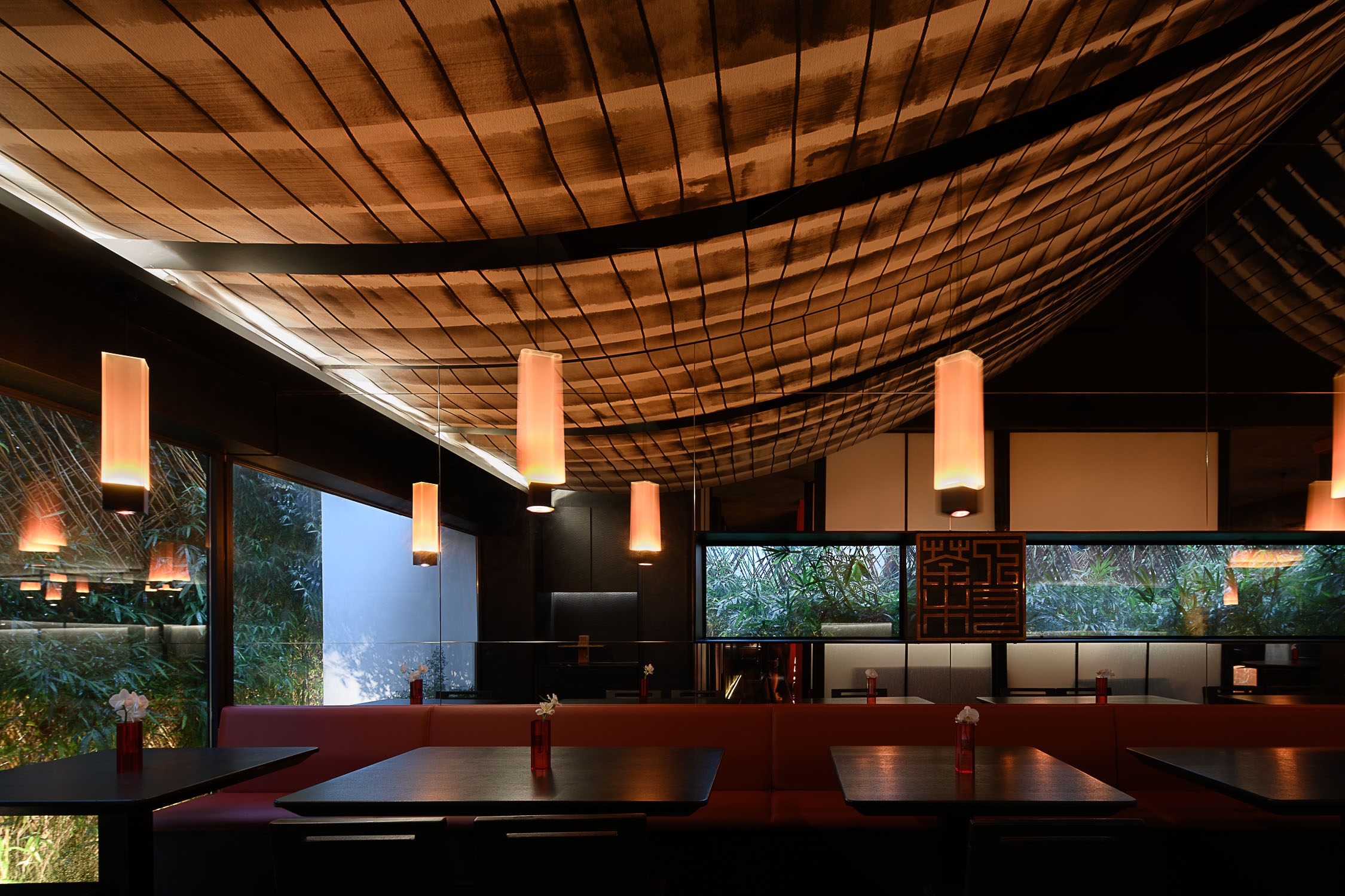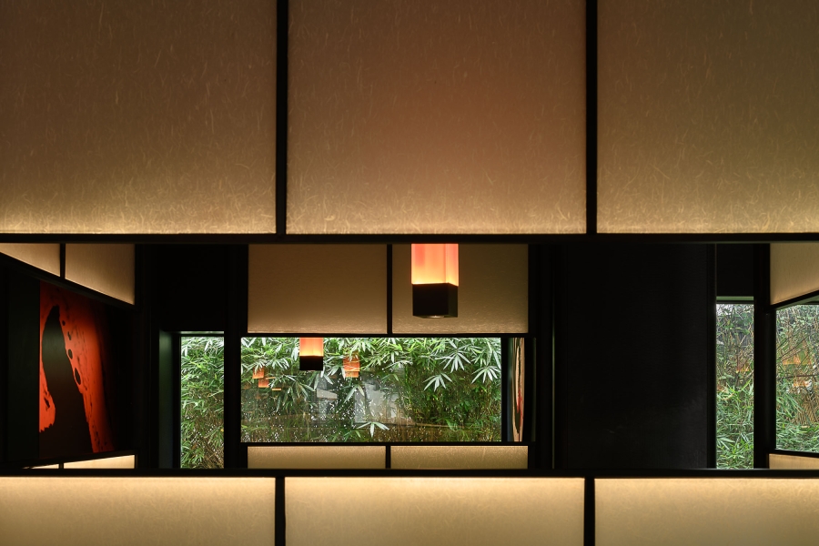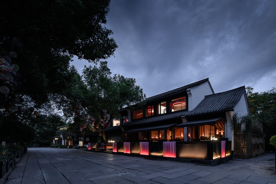 The design of "Charen Village" West Lake new store is centered around ink-wash painting, integrating the classic path of Chinese culture with modern dining. It reflects the brand's artful balance between tradition and innovation. Choosing the wetland-style traditional houses of Jiangnan as the architectural foundation, the design revitalizes the structure through a thoughtful reevaluation of the exterior and framework, creating a dreamlike Jiangnan ambiance.