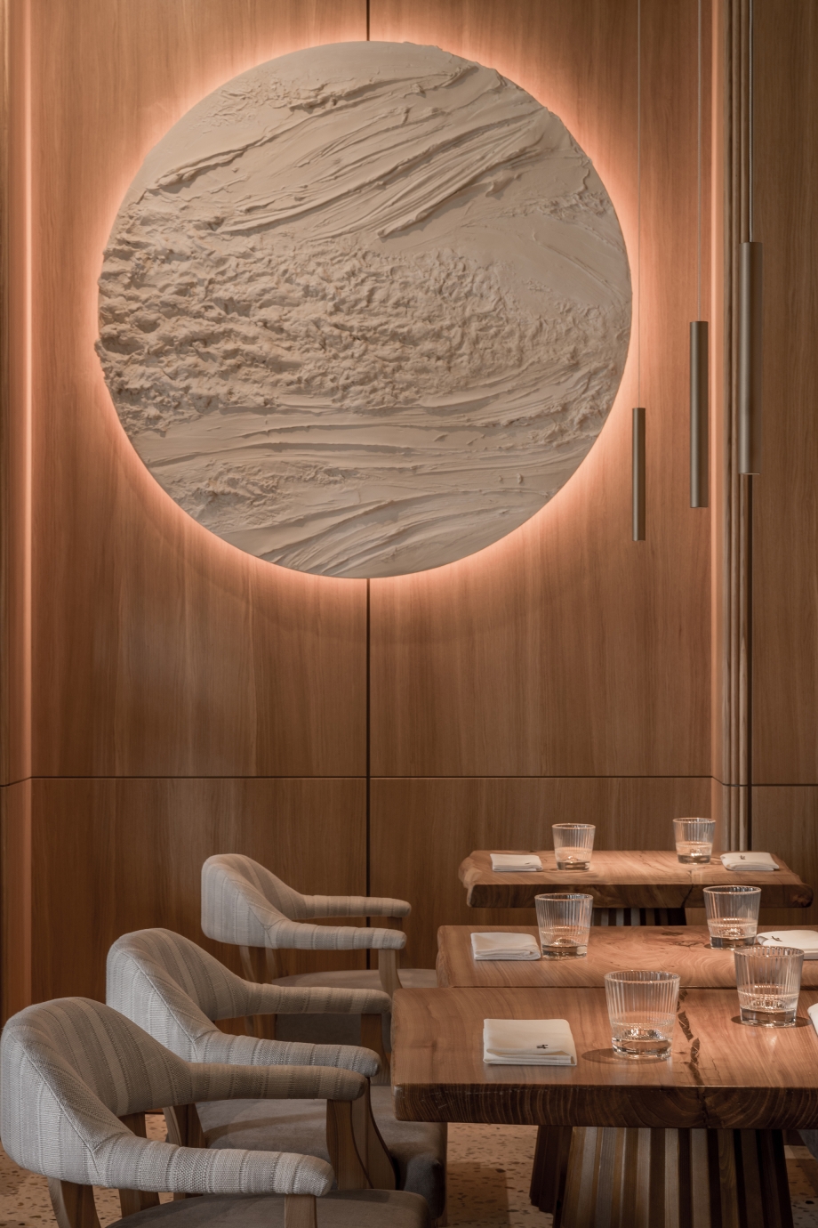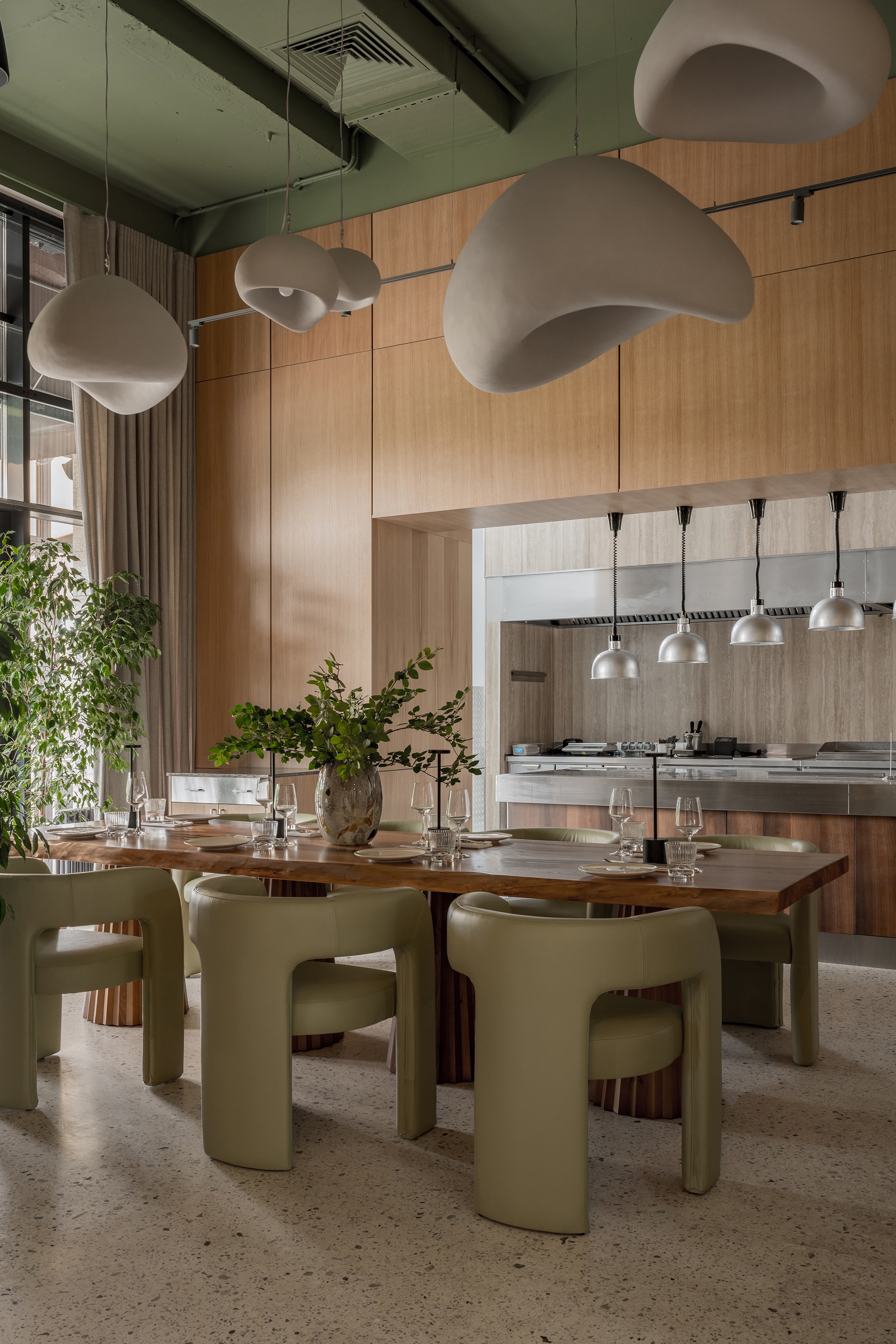 Forest is a restaurant of modern cuisine for every day. The philosophy of the interior – nothing in the restaurant should distract from gastronomy. The interior is decorated in a modern style and natural tones. The color scheme is designed in beige and gray colors.