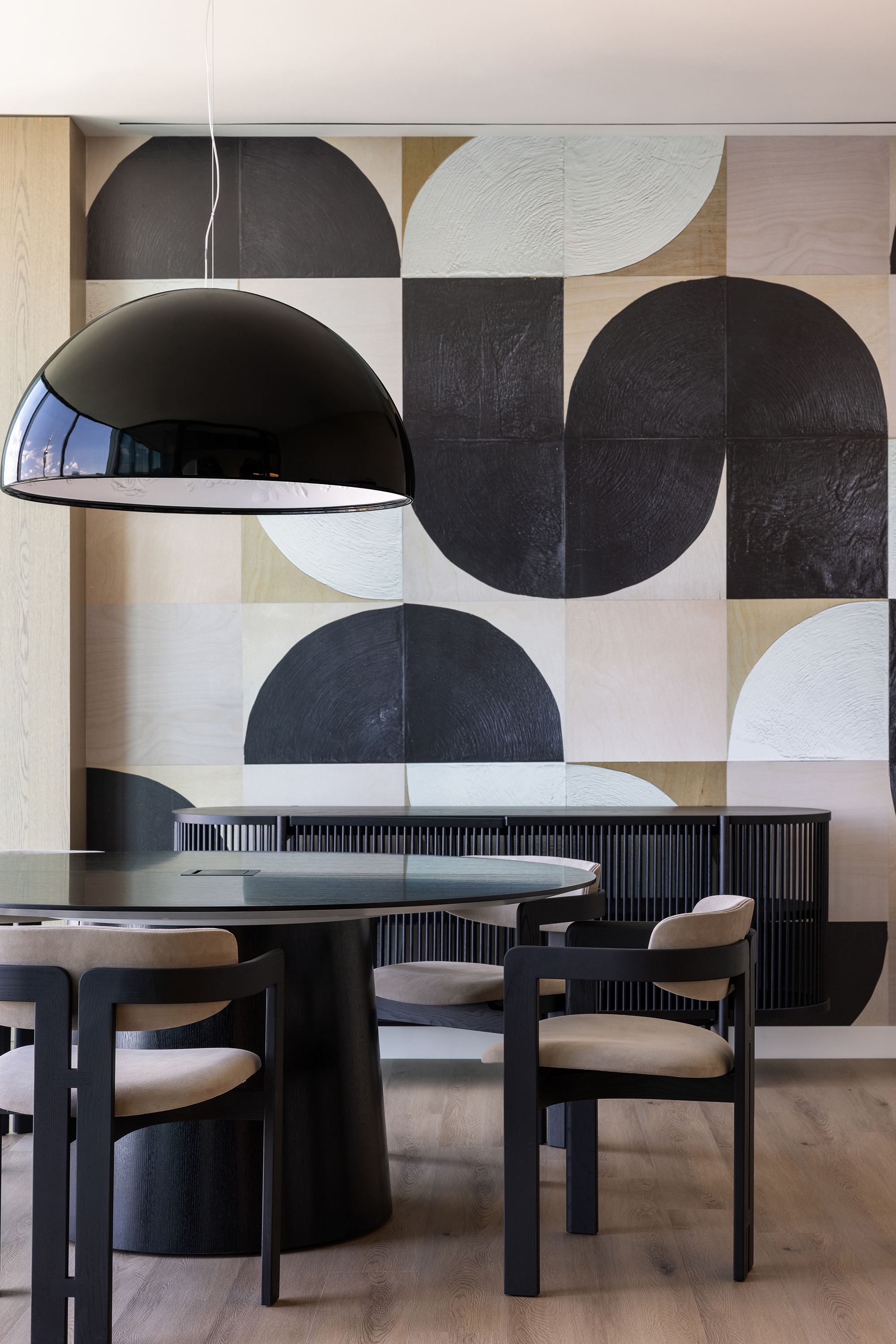 Elements of hospitality design create moments of delight that nurture a sense of ease as people experience the space. The curated art, objects, and greenery within the space come from diverse Canadian artists and vendors. Rich materials and furniture were chosen to provide the comforts of home with ergonomics in mind. Layered wood tones, hand troweled plaster, textured brick veneer, and leather wrapped pulls offer moments of tactile connection to authentic materials. The furniture and lighting evolve throughout to correspond with the unique experiences across the three floors.