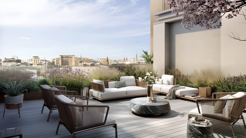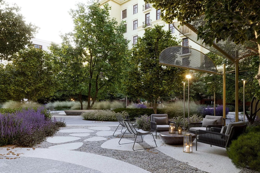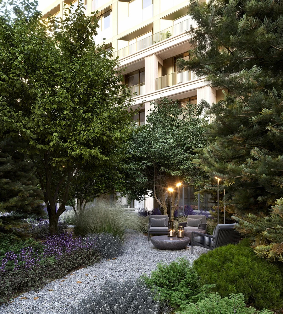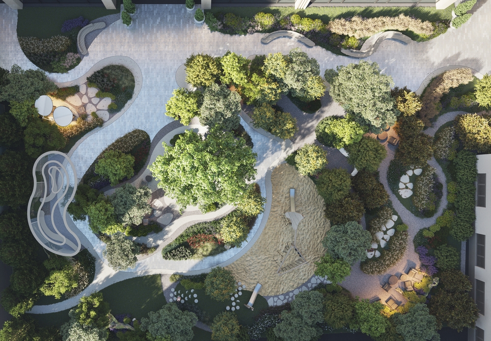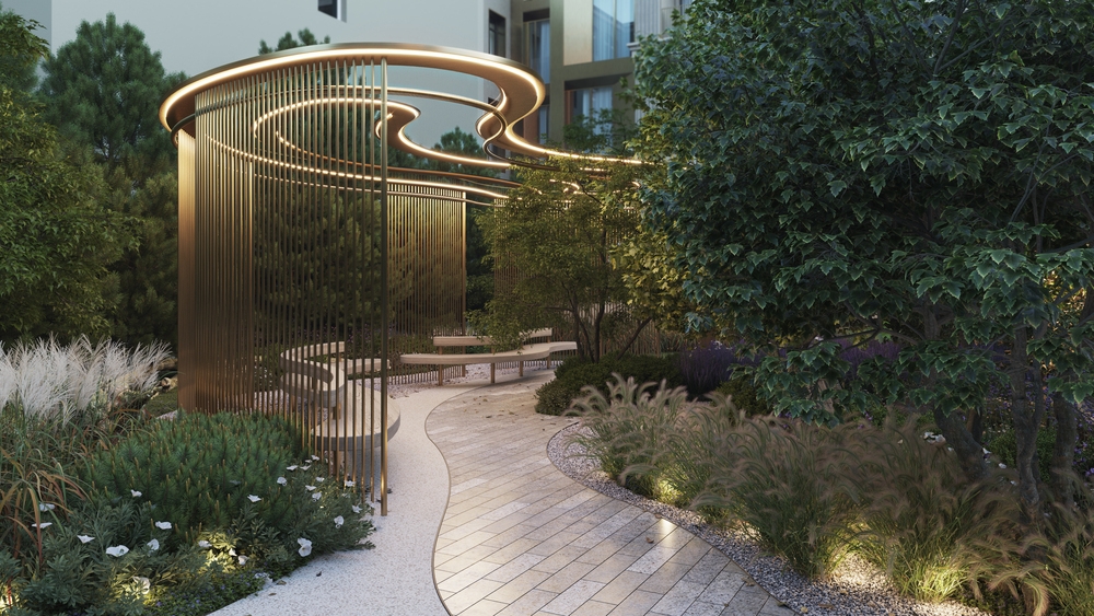 The concept of the project is based on coziness and comfort as a way of life. Our goal was to complement the beautiful spacious apartments with a picturesque green area that would harmoniously blend with the overall atmosphere of the Luce residential complex.