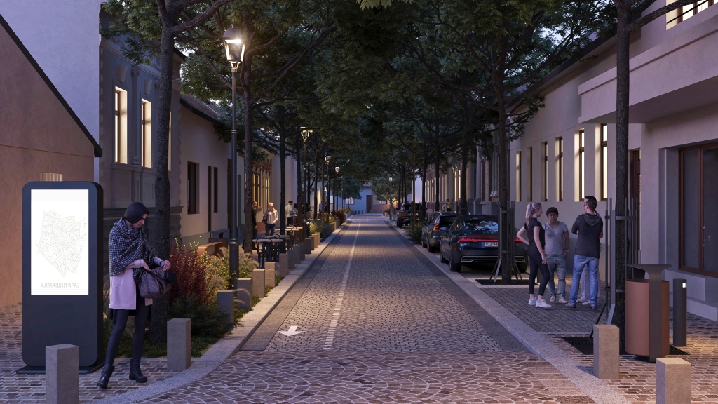 The urban transformation of the Almaš Neighborhood, one of Novi Sad's oldest areas, includes a complete reconstruction of infrastructure, paving, landscape design, facade conservation, public lighting, traffic management, a new pedestrian zone, urban furniture, visual identity, and tourist signage. Designated a protected cultural-historical unit in 2019, the project aims to revitalize the area while preserving its ambiance, addressing issues like clogged streets, poor infrastructure, and a lack of greenery.
