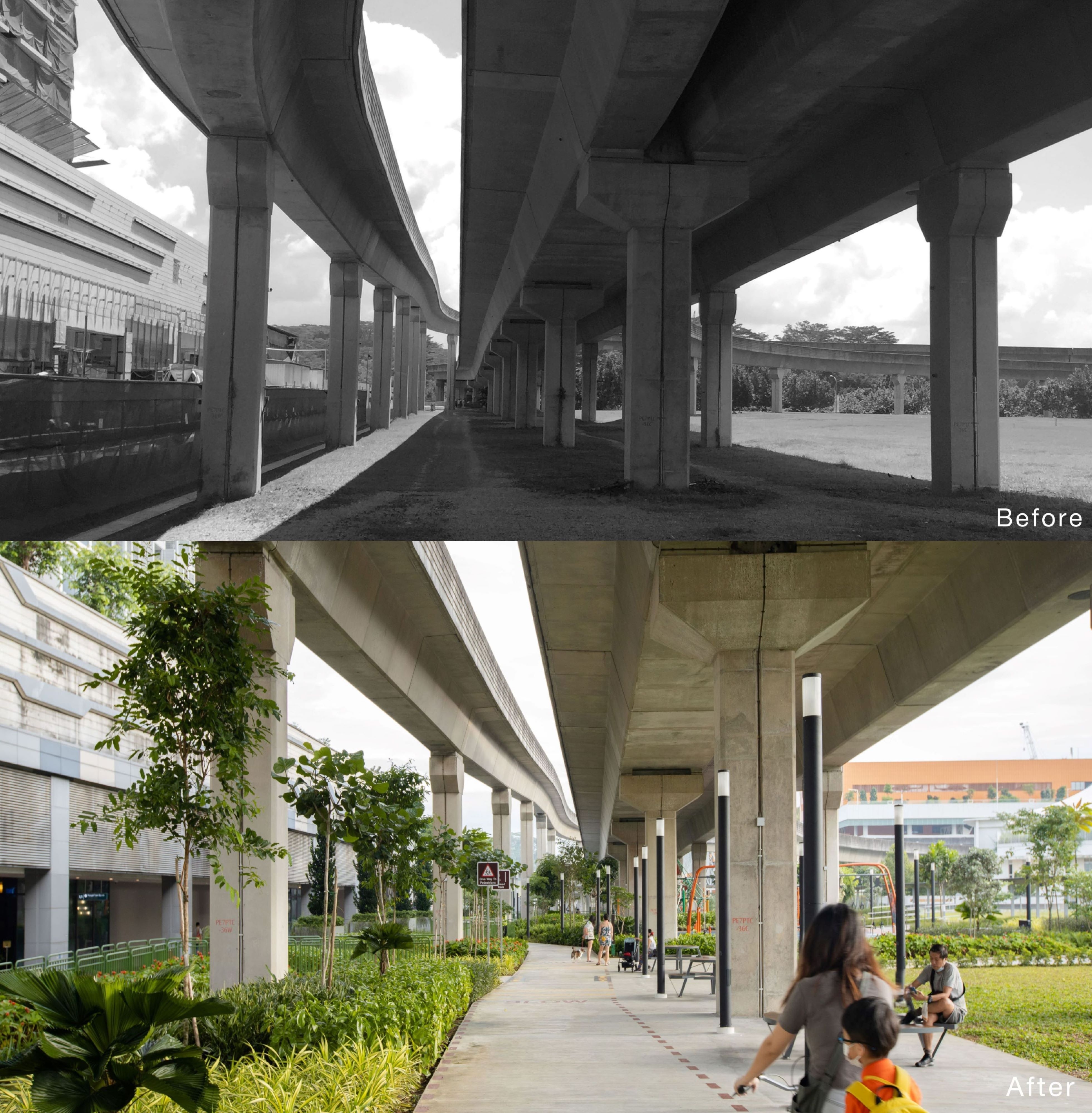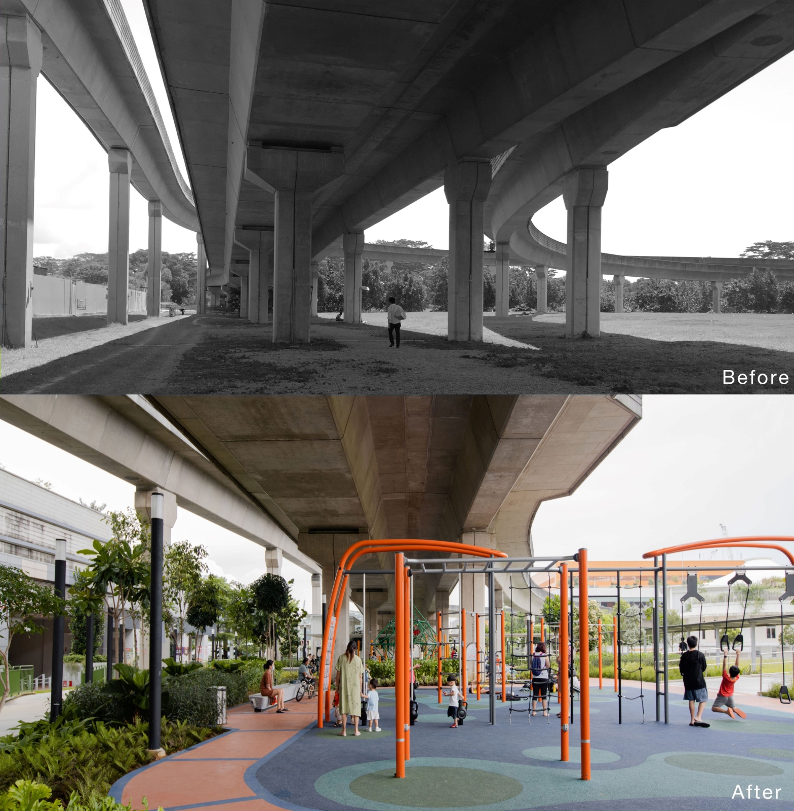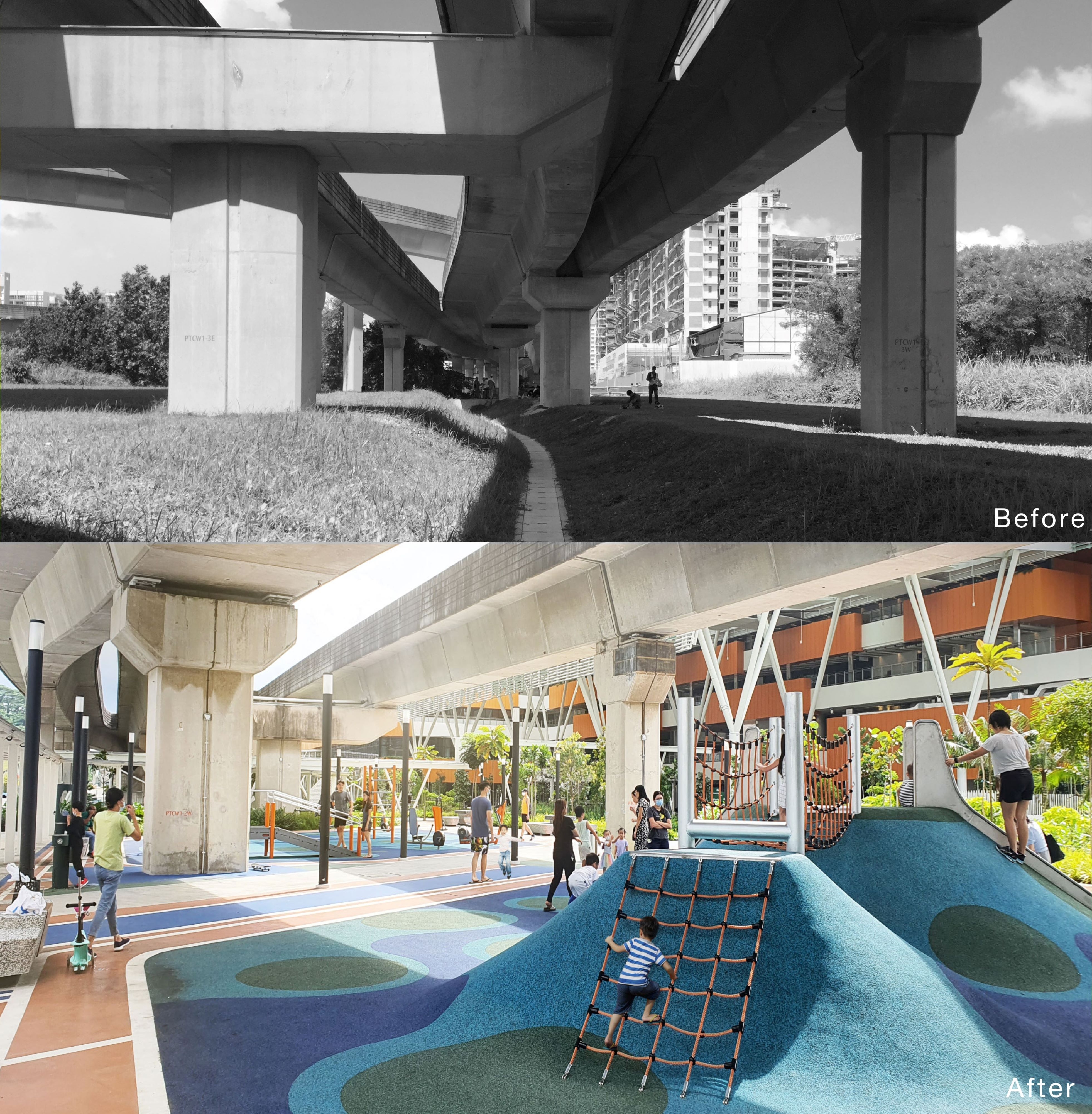 Before its transformation, this 1.2-hectare plot was a 500-meter-long unutilised space under the viaduct. However, the team noticed great potential in this space to benefit the community and the environment. Strong support and collaboration with six government agencies and the local community enabled the design team to navigate many constraints within this site to create a unique recreational space.