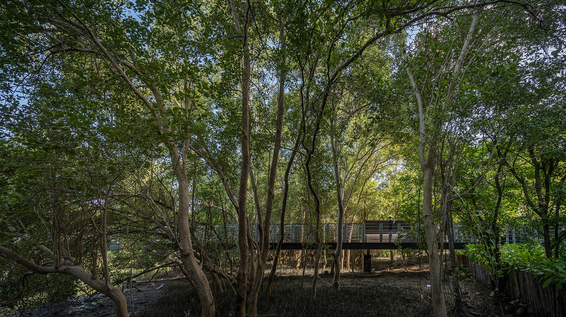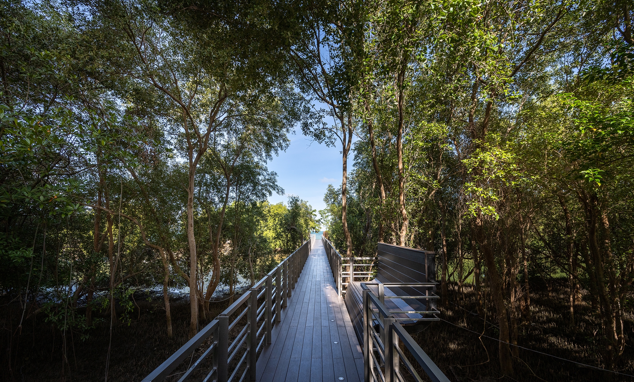 The Bayphere exemplifies this concept through landscape design, which features a ground-floor garden, a rooftop pool, and an elevated boardwalk that connects to the beach. This layout emphasizes both the area's spectacular aesthetics and its environmental significance.
