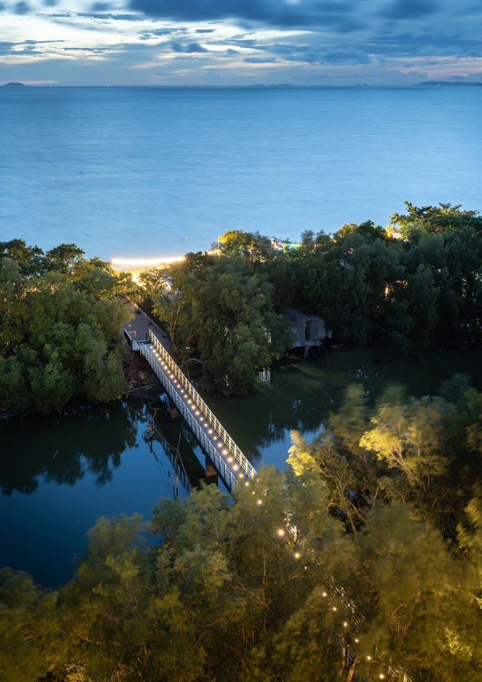 The Elegant Seaside Hotel in Pattaya offers a unique blend of natural beauty and historical narrative. Nestled by the Gulf of Thailand, this development incorporates a scenic mangrove forest into its architectural form, representing the land's metamorphosis and the natural phenomena that have shaped it.