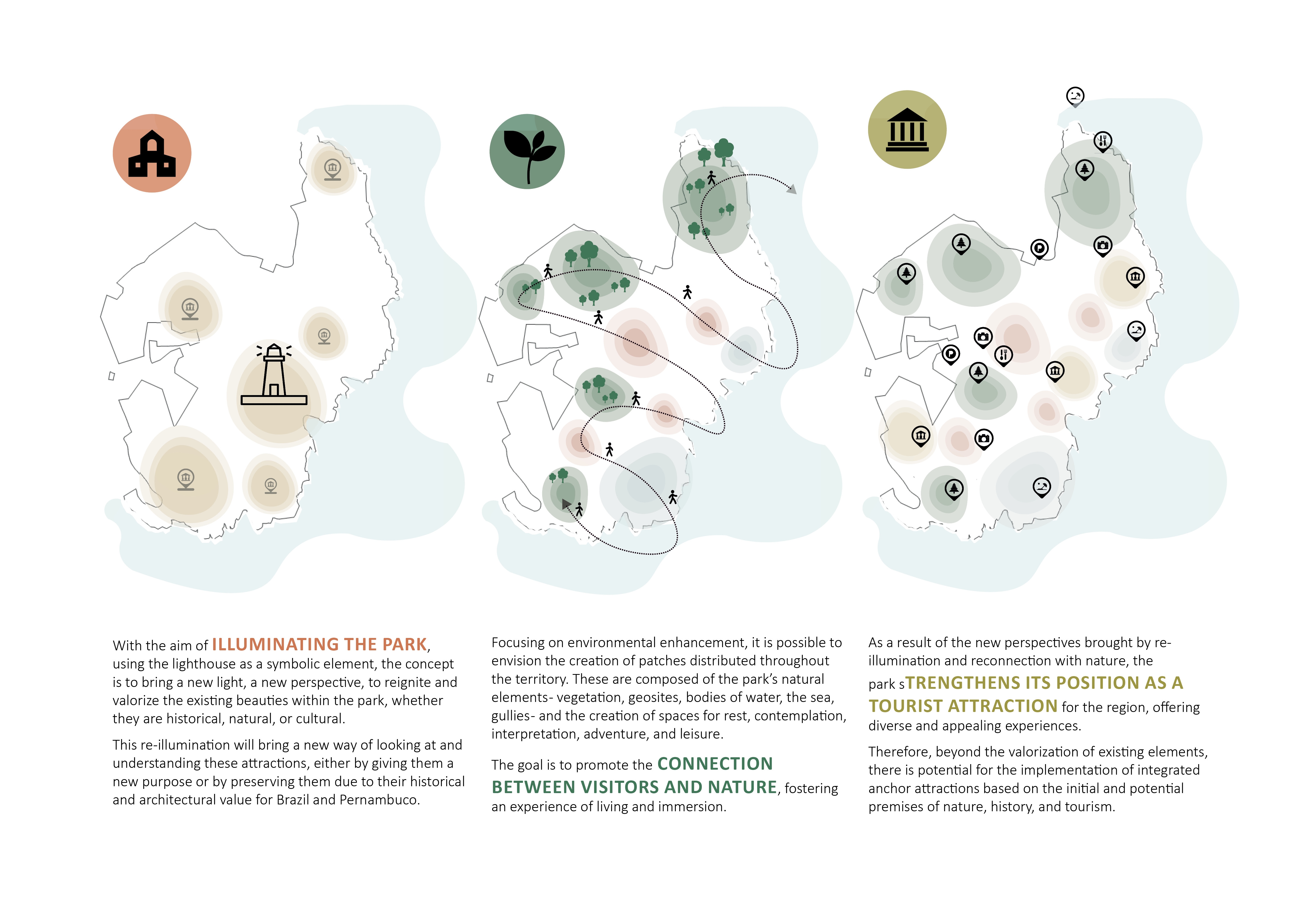 The masterplan focuses on three key areas: “Illumination” highlights natural and built assets like historic buildings and geological features. “Connection” aims to make the park accessible for visitors to engage with nature and water. “Tourism” involves developing support facilities, food services, recreational spaces, and a museum linked to the Geopark.