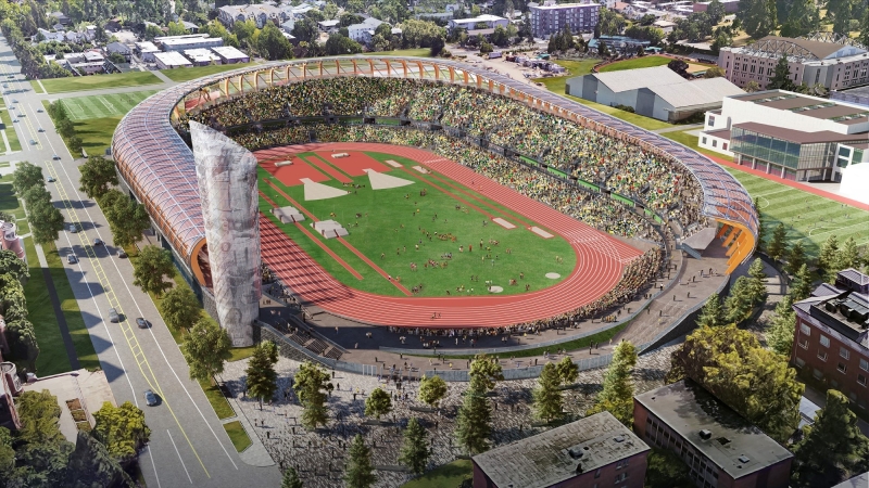 Envisioned as the state-of-the-art track and field, Hayward Field propels athletes onto the world stage. Offering magical views, plazas welcome the global community, anchor the stadium within the urban context, and weave the pedestrian corridor with the reinvented campus open space. A century after the first bleachers, athletes competed on this iconic stage at The World Games celebrating Athletic Championships brought to the USA for the first time.