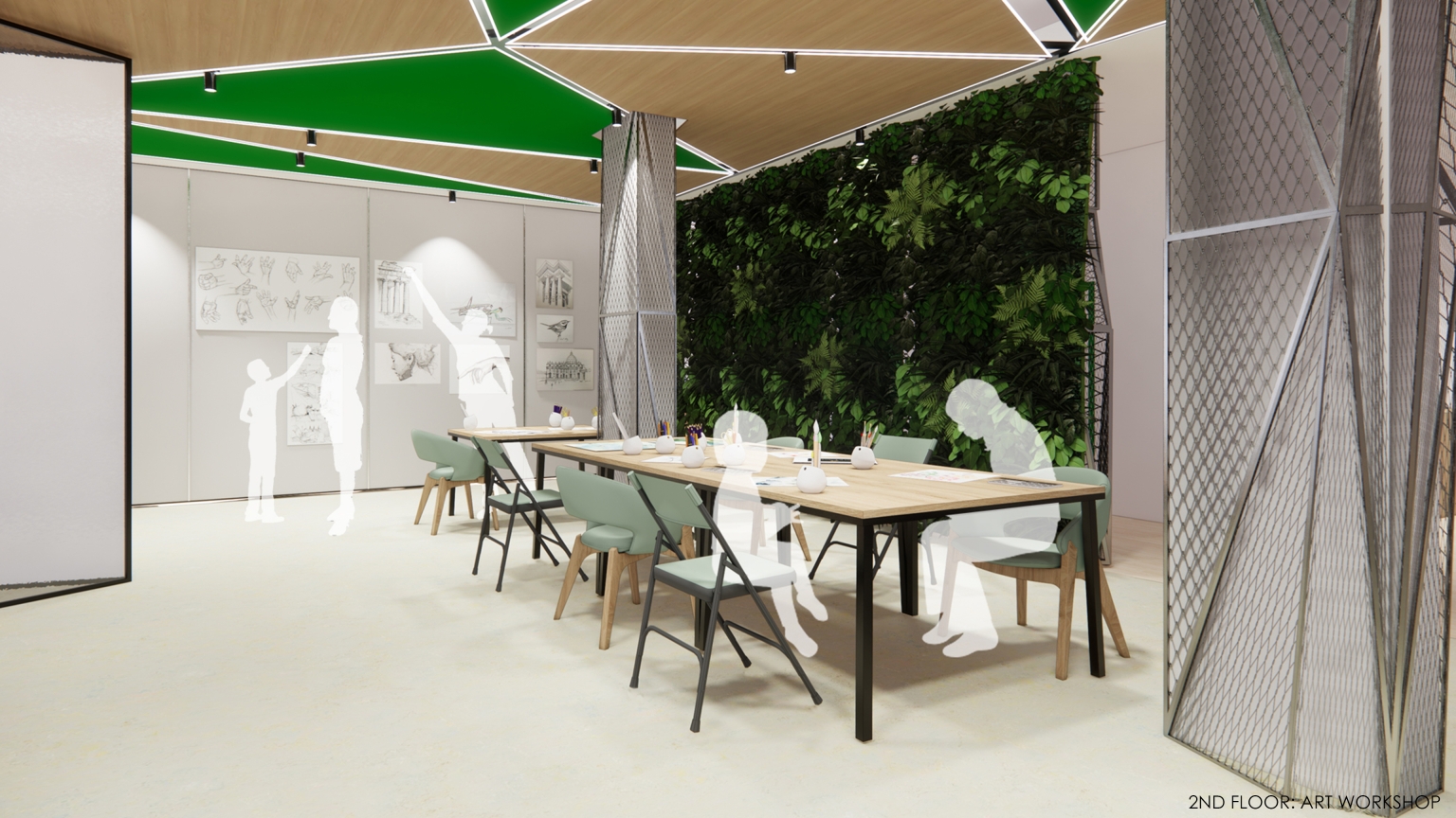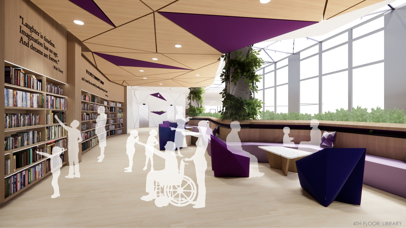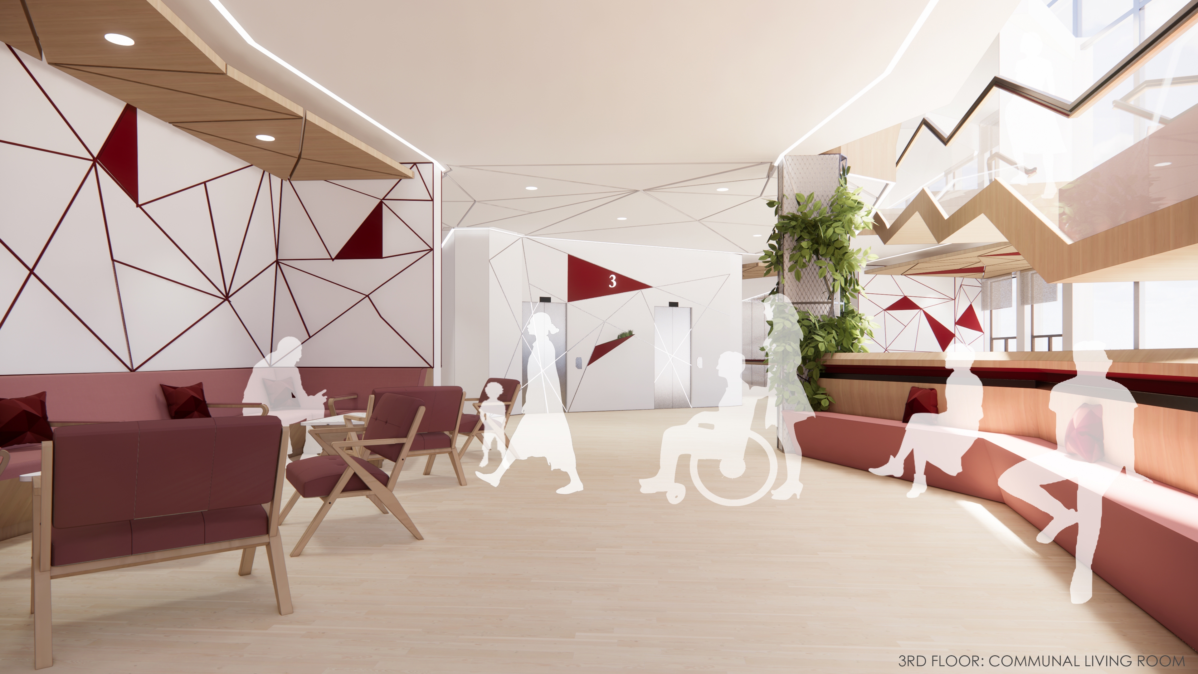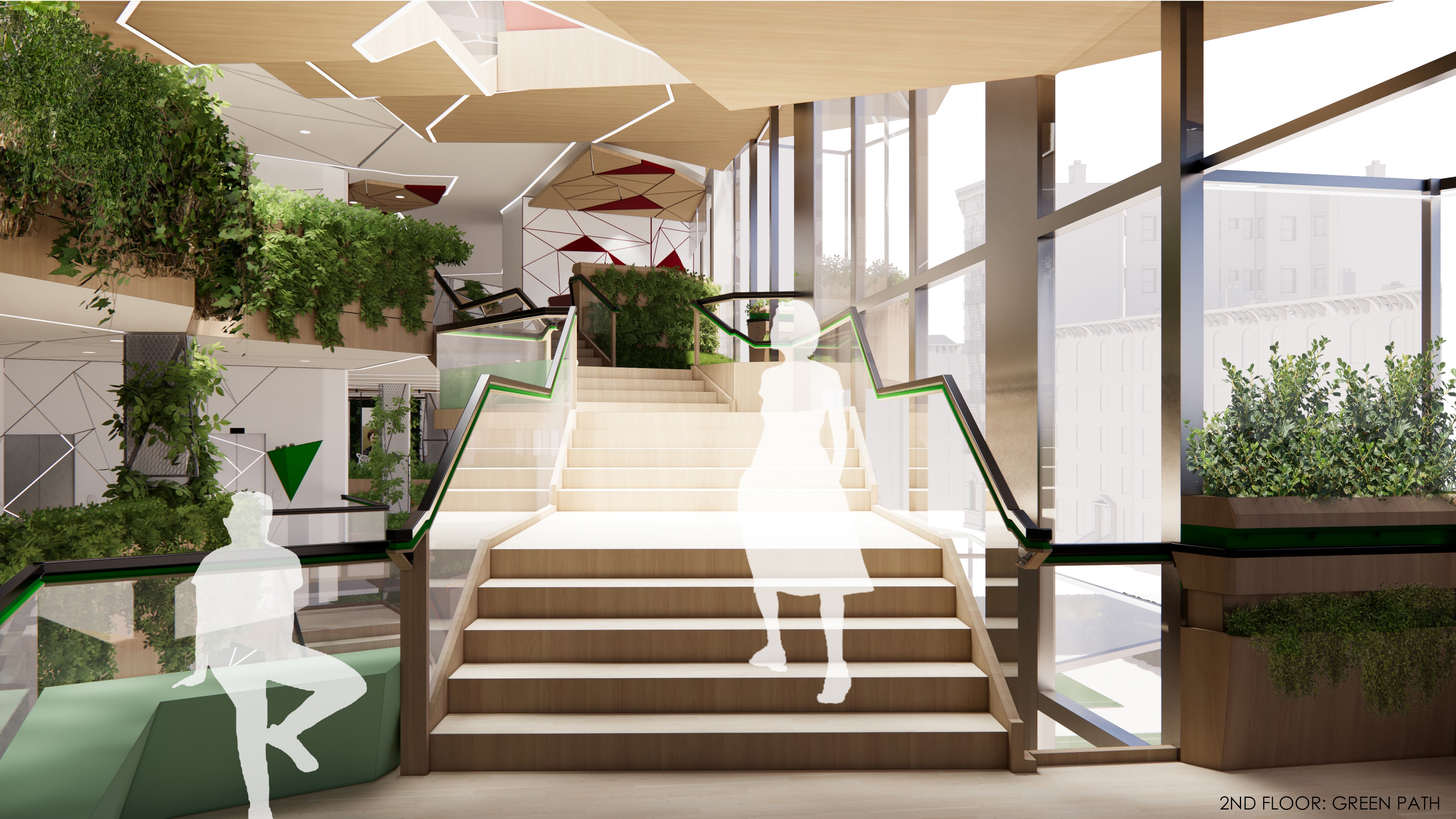 Wagner Senior Community Center brings together seniors and younger generations in a dynamic and youthful space. Similar to taking a walk in the park, visitors can access activity spaces on different floors which are connected via a green path that takes the form of ramps and stairs. The path allows seniors to be physically active and allows for social interactions and being with nature. The path forms the primary circulation route which connects all intergenerational and senior specific spaces together, enabling wayfinding, along with color coded finishes on different floors.