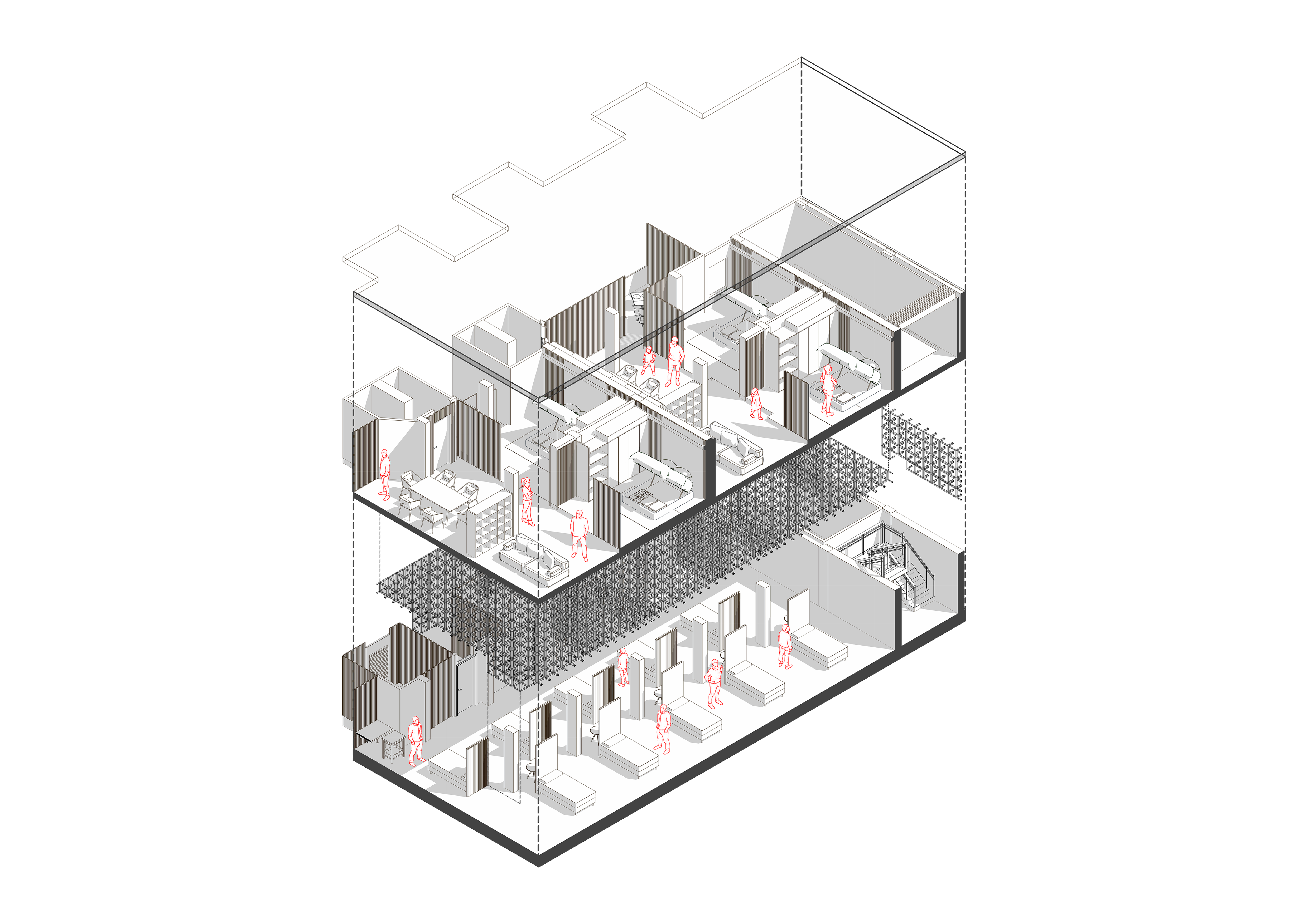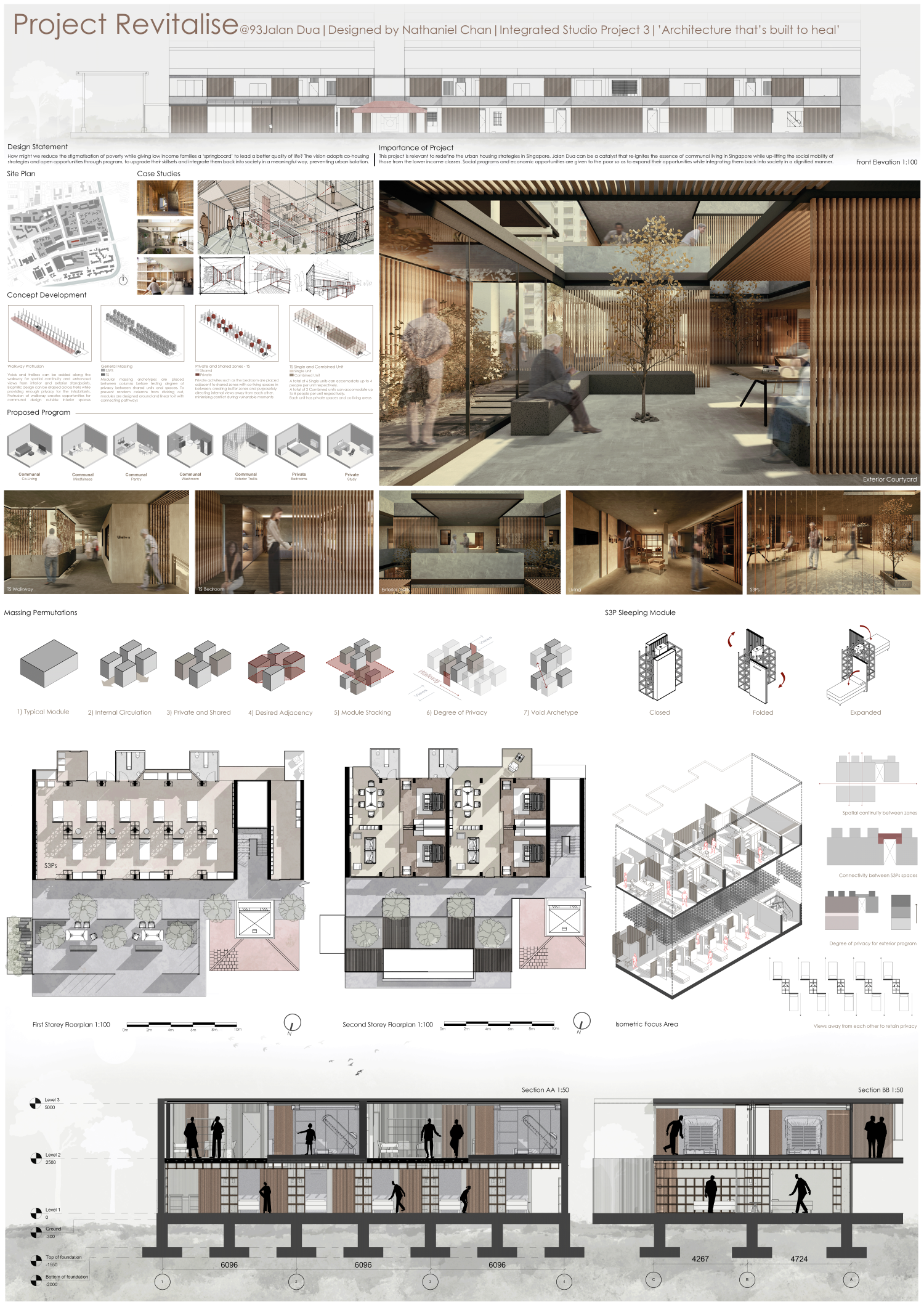 Project Revitalise aims to reduce the stigmatisation of poverty while giving low-income families a ‘springboard’ to lead a better quality of life. The vision adopts co-housing strategies and open opportunities through program, to upgrade their skillsets and integrate them back into society in a meaningful way, preventing urban isolation while redefining mass housing strategies in Singapore.