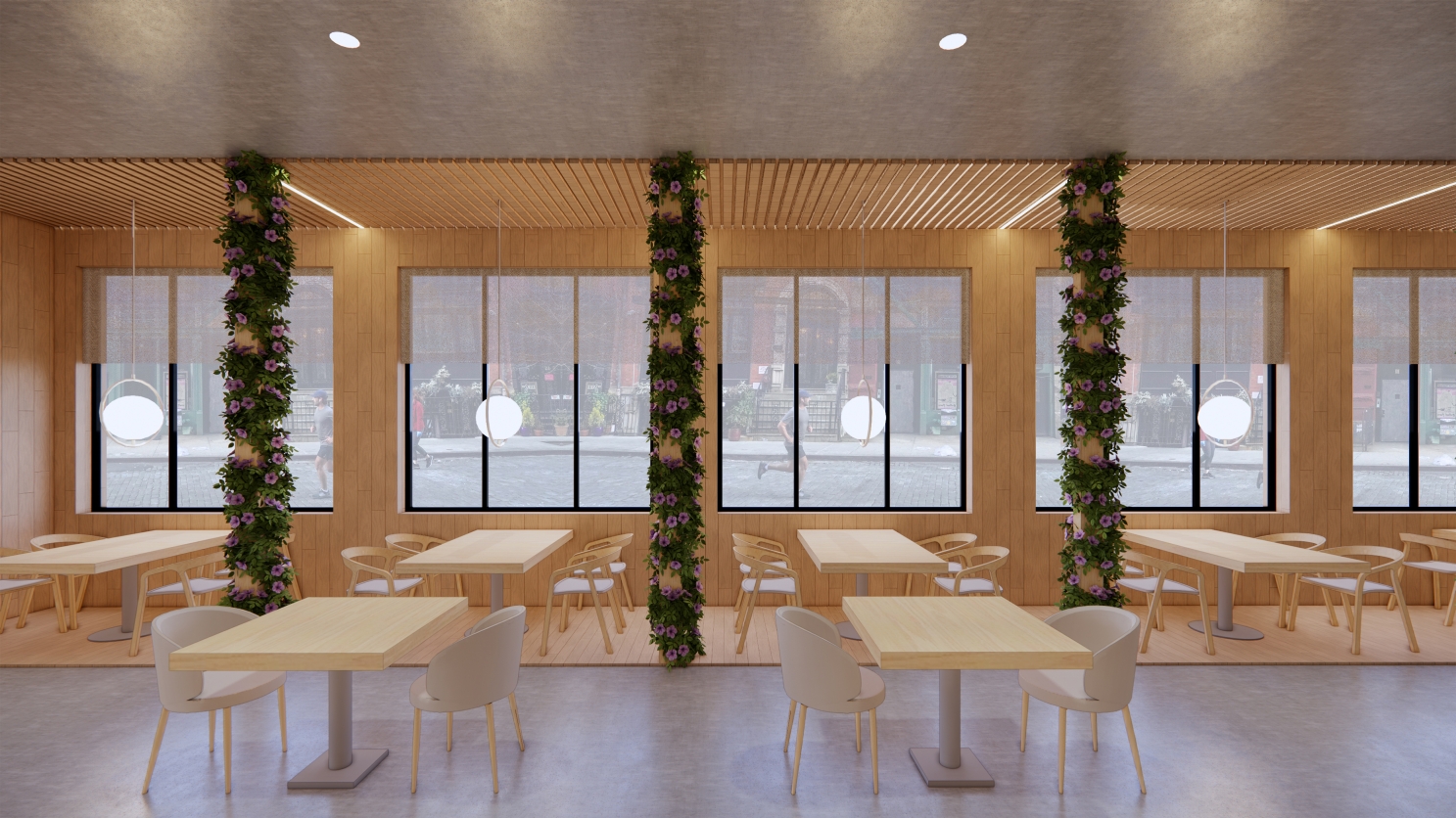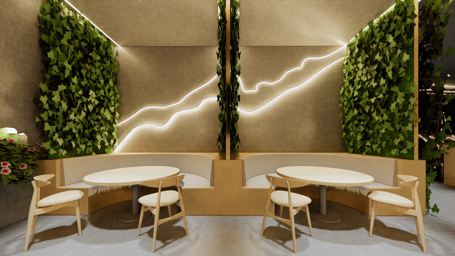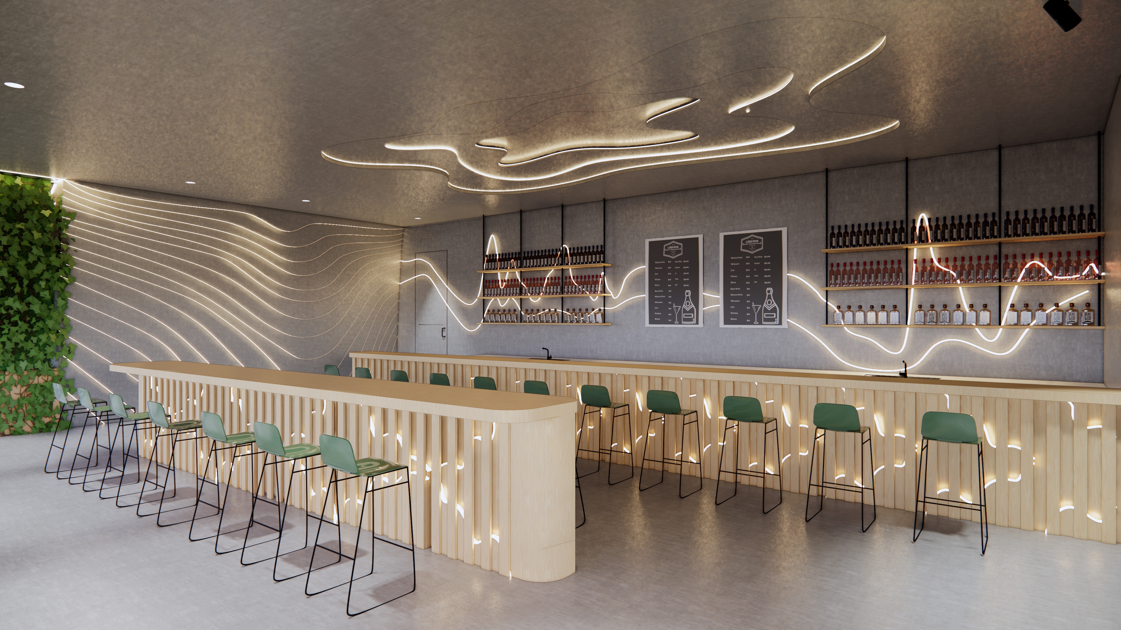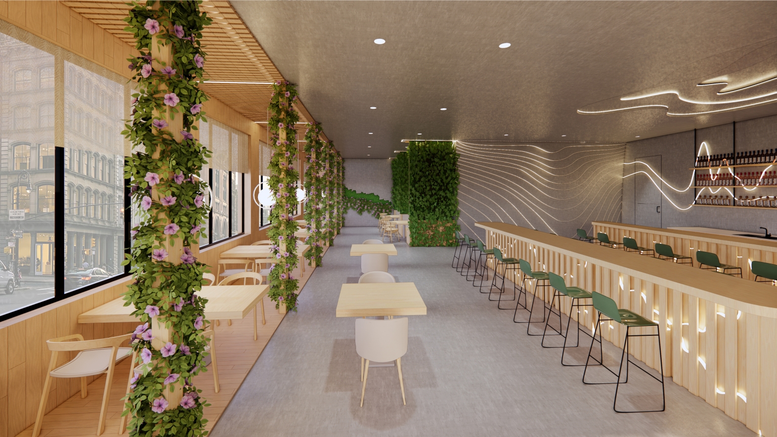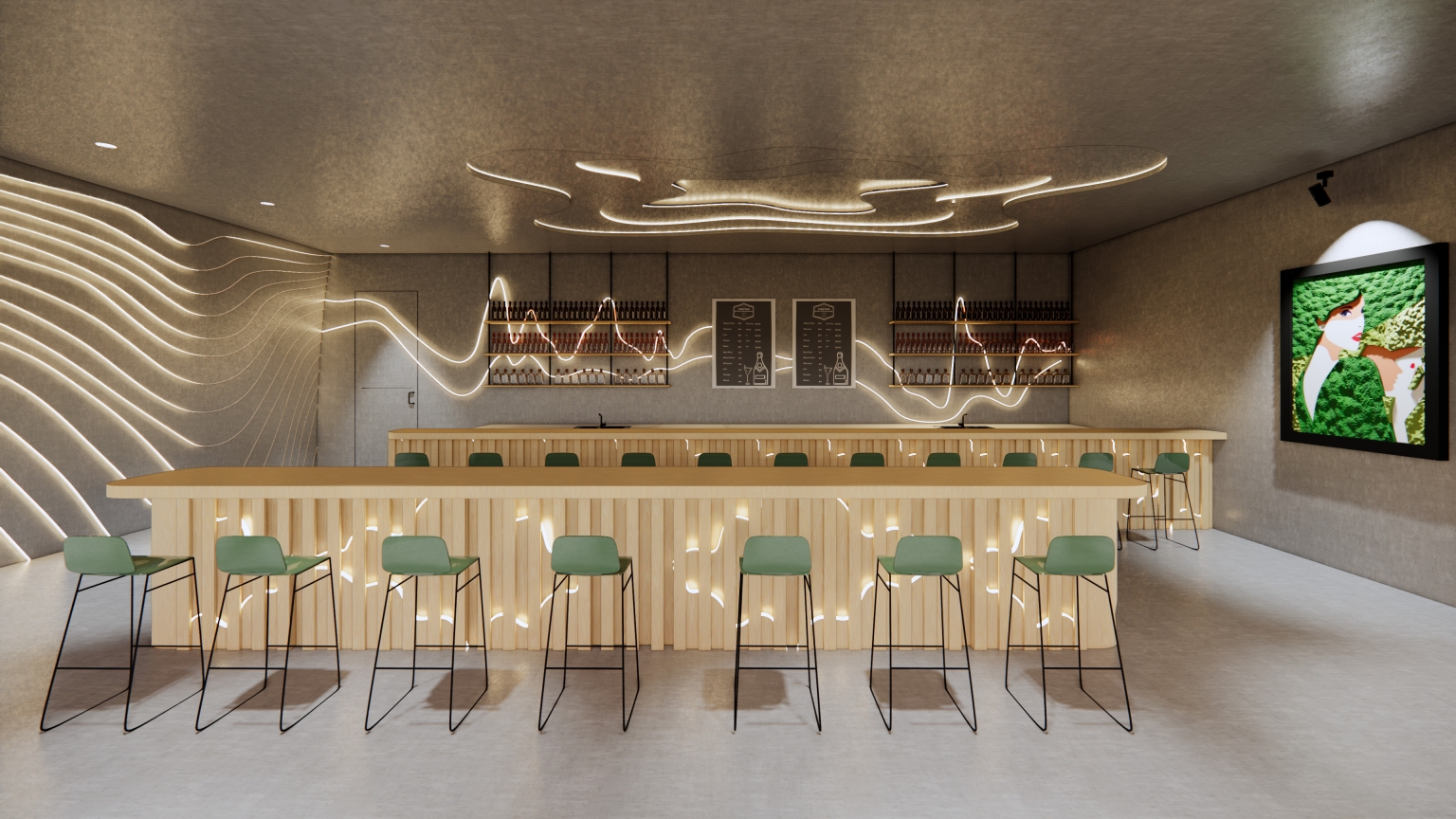 This project is located in NoHo, New York, in a repurposed industrial loft. Botanique Restaurant and Bar brings nature into the interiors as a respite from the densely built city, blending it with materials suggestive of the building's past use. The interiors use 3 simple materials- polished concrete, wood, and aluminium. Nature-inspired contours and shapes created on the walls, ceiling, and bar counter become a blend of minimal materials and formal expressions of nature. Simple pendants are mixed with curving light strips, creating a dramatic effect with minimal fixtures.