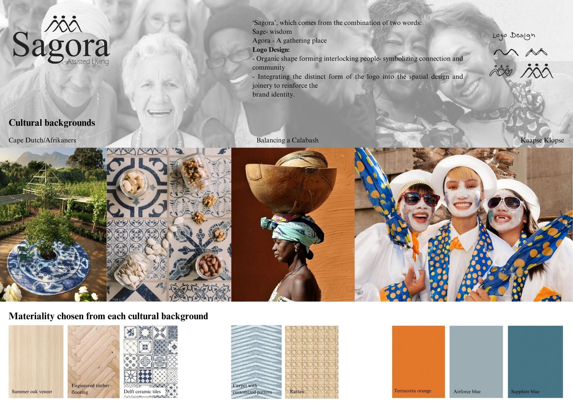 In designing assisted living spaces for the elderly, balancing physical needs with fostering community, connectivity, and shared experiences is the challenge. Traditional designs often focus on functionality, overlooking the emotional and social needs vital to resident's well-being. My concept, "Uniting Communities Through Cultural Exchange," envisions a space where elders from diverse cultural backgrounds in Cape Town can come together and share their wisdom through life experiences. The design emphasizes the positive impact of social interaction and shared experiences on the well-being of elderly individuals. It incorporates cultural elements and Cape Town artists to facilitate communal activities, gatherings, and storytelling sessions. The design addresses their emotional and psychological needs by encouraging residents to engage and form meaningful relationships. This approach enriches their daily lives, enhancing mental well-being and fostering a sense of belonging.