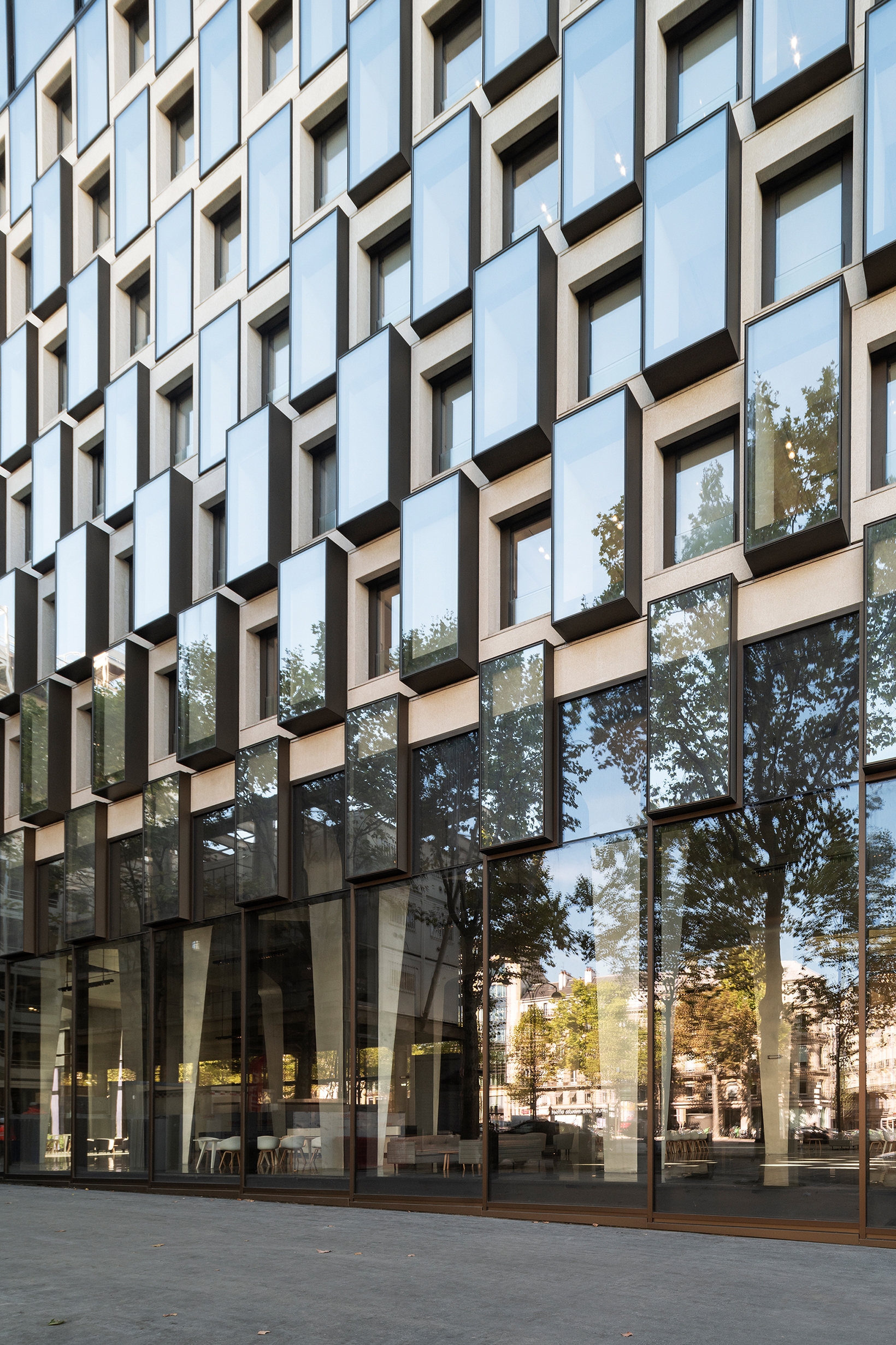 ‘A restructuring project made it possible to intensify the strong architectural gesture’ - this is the basic idea behind the renovation of the former Peugeot headquarters near the Arc de Triomphe. The project now offers the central Parisian urban space an exciting 110 metre long façade. The existing concrete structure forms the backdrop for an innovative window system. Rhythm, plasticity and self-imposed order are found in a façade that gives the ‘Grande Armée - l1ve’ project a strong physiognomy.