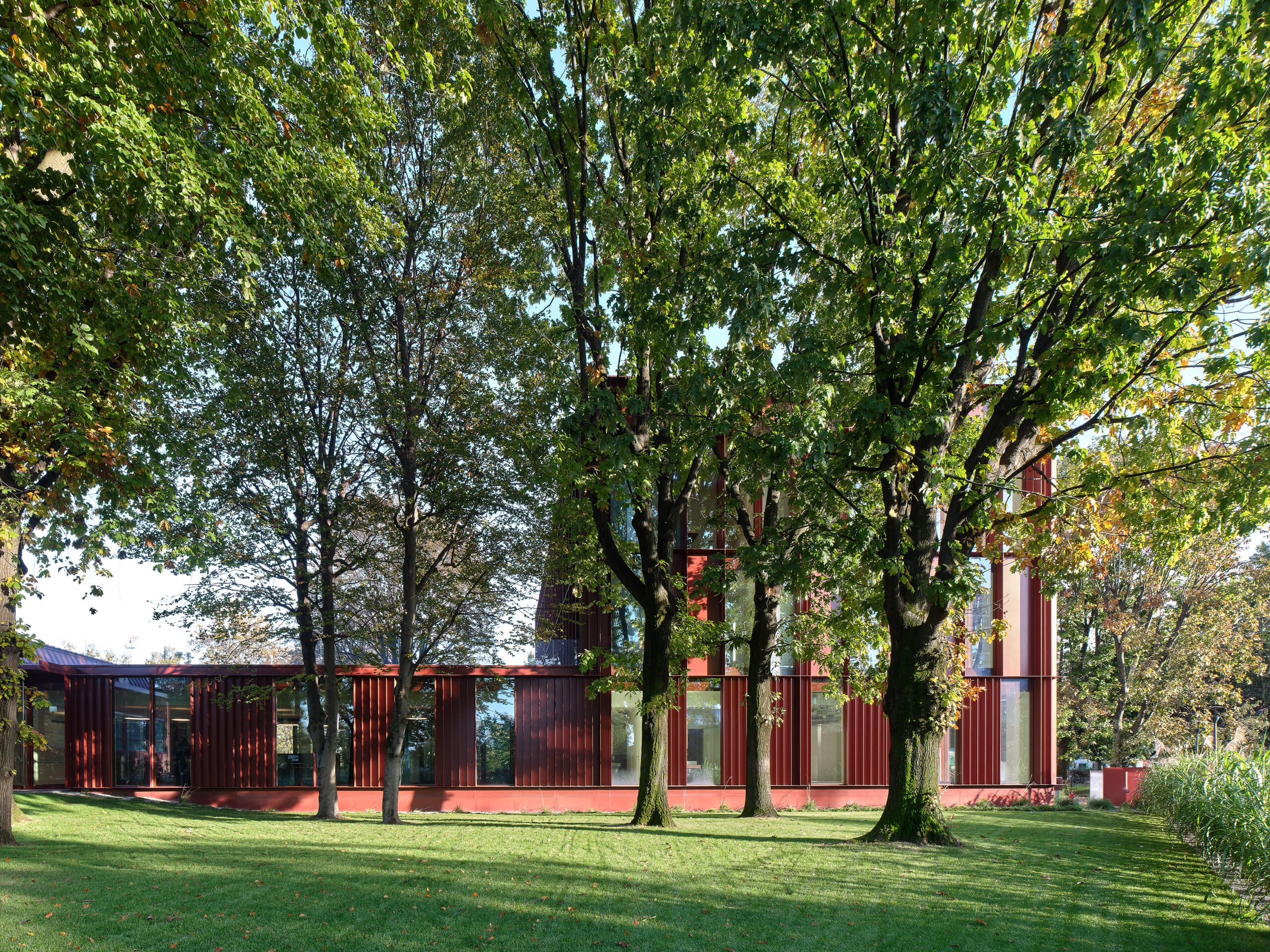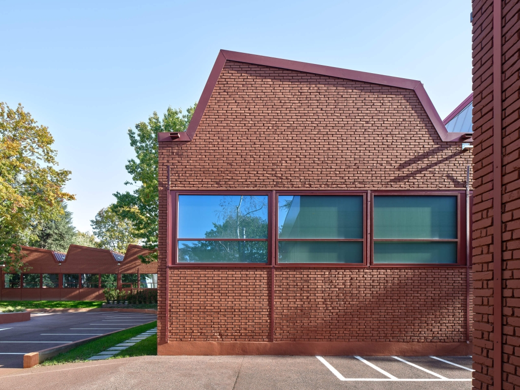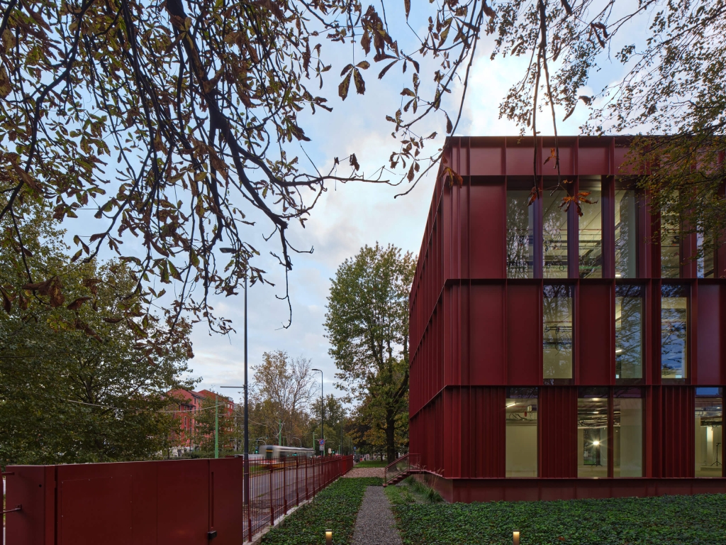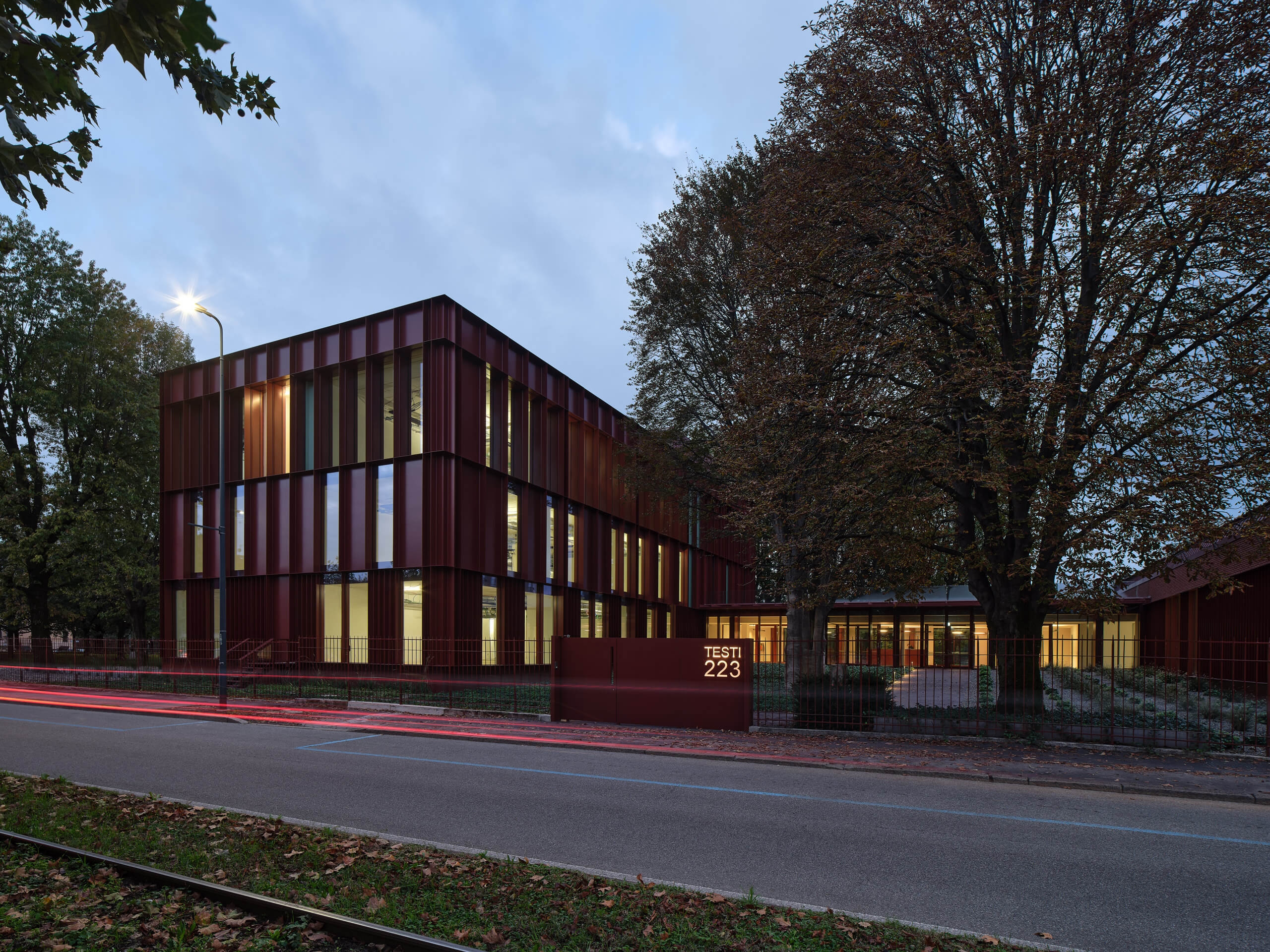 The project enhances and restores a Pirelli complex from the 1950s originally designed as a school-workshop, consisting of a classroom building and a brick factory with a shed metal roof. The client’s brief was to create new high-quality office spaces from an abandoned building complex without compromising the historical character of the surrounding environment and for this reason the project creates a new harmonious layout by aligning seamlessly the classroom-turned-office spaces with the brick building and demolishing a portion of the connecting building, thus emphasizing the courtyard facing Viale Fulvio Testi. The office building’s body, characterized by a neat system of metallic panels, maintains the same proportion as the existing concrete panels but is painted in a matte brick-red colour. Instead, the former factory building is entirely preserved, except for modifications made to the windows and roof for energy efficiency reasons. Testi 223 achieved the LEED® Gold and WiredScored Certification employing strategies through material selection, energy-efficient systems, and sustainable construction practices to minimize both embodied and operational carbon footprints.