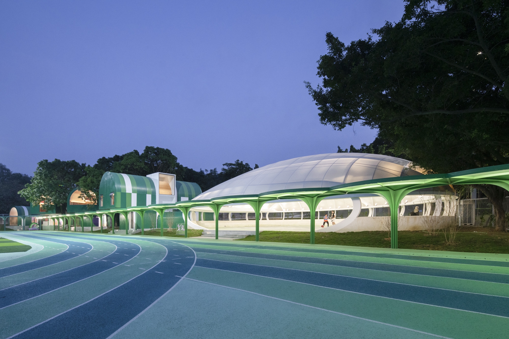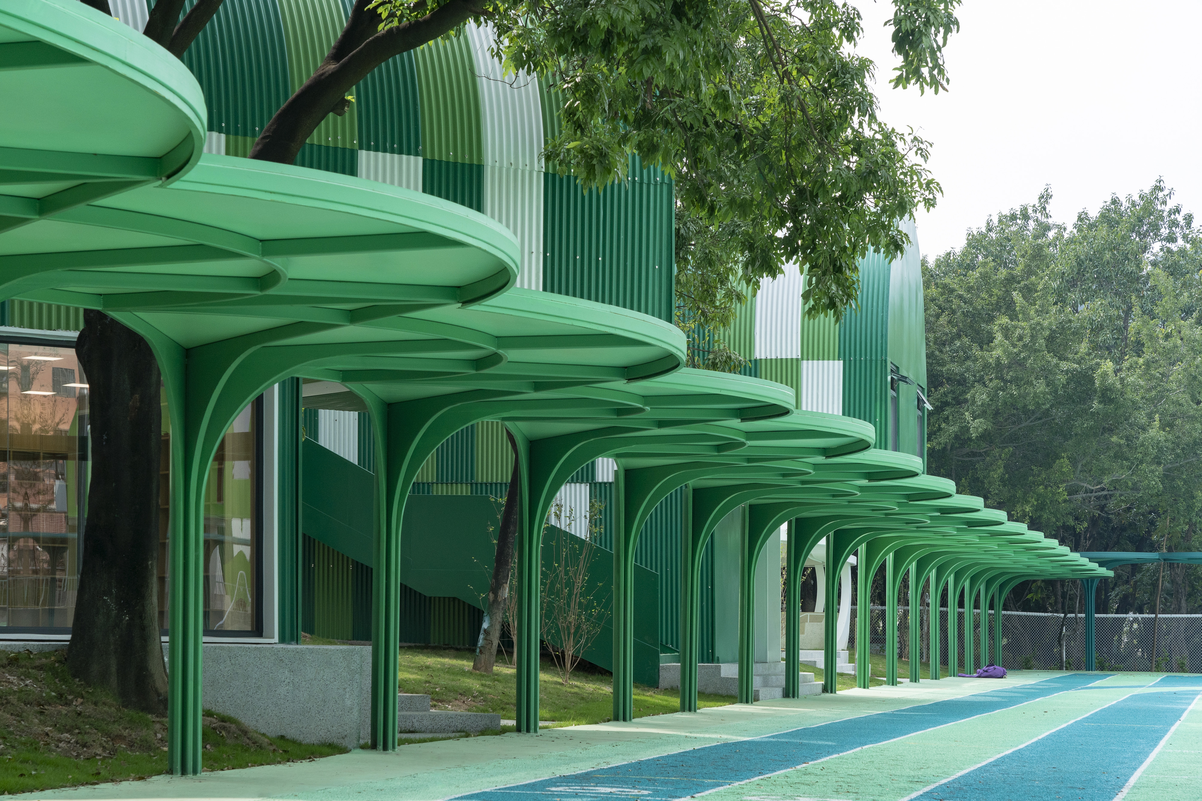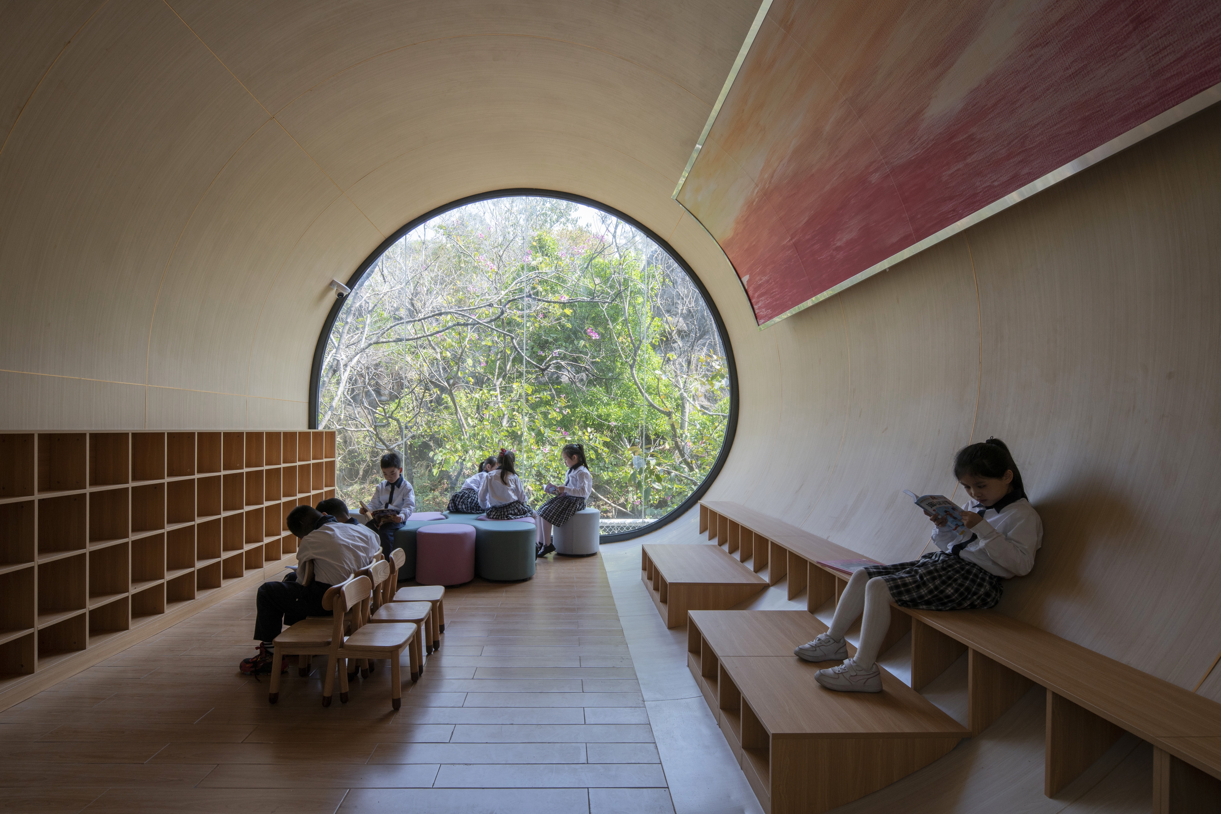 Longjiang Central Primary School (Jinping Campus) is located at the foot of Jinping Mountain, Longjiang, Foshan. It was rebuilt from the existing Jinping Middle School in order to meet the growing demands for high-quality education in the central urban area. After the renovation, the lower grade campus can accommodate 20 classes of grades one and two. The renovation takes the advantage of the site, extracting a series of natural elements from Liyugang Park in Jinping Mountain and bringing them back to the campus design. By integrating and interacting with the natural environment, a campus that learns in nature is formed. This "campus in the park" or the "park in the campus" builds a bridge for the first and second-year students to transition from kindergarten to primary school.
