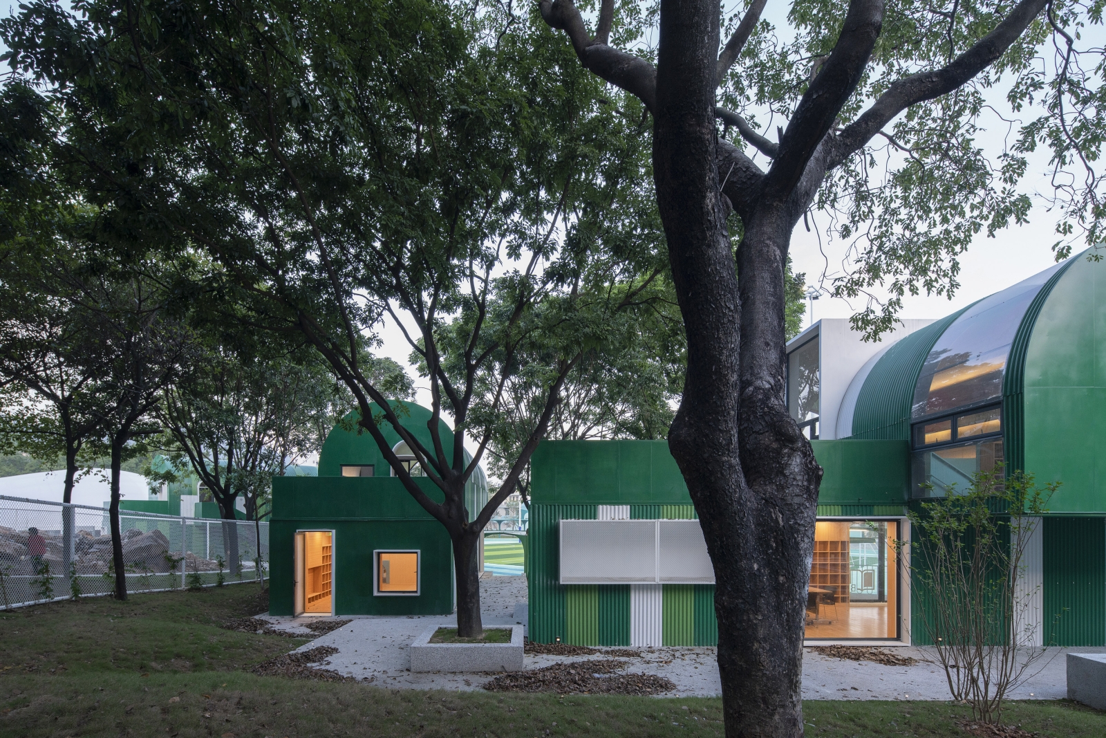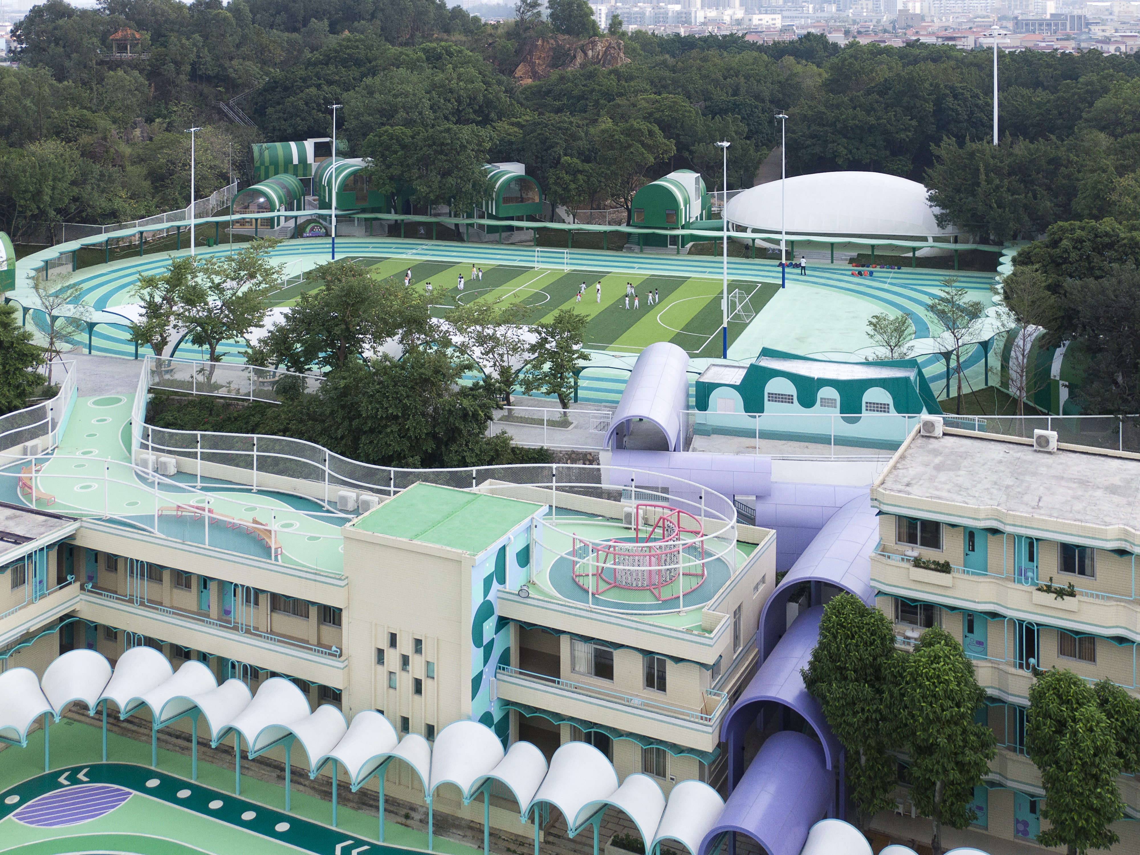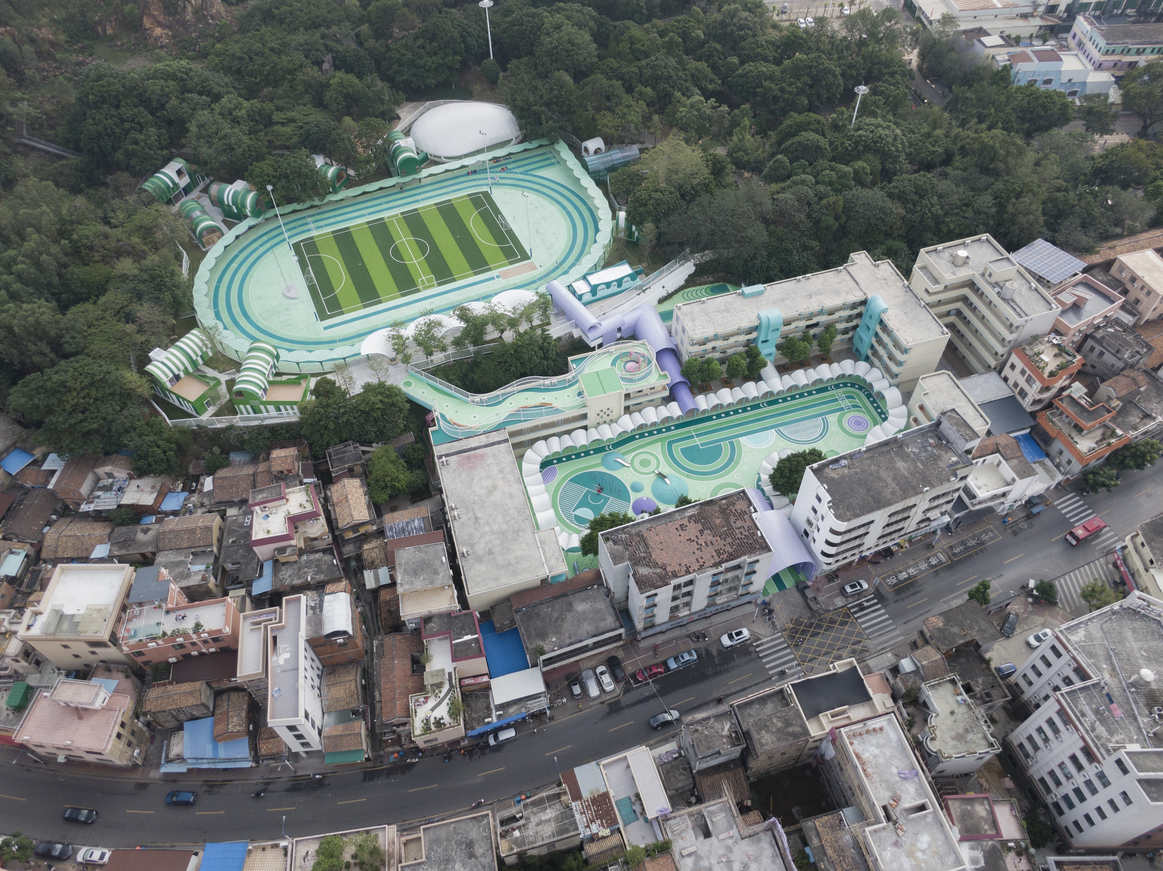 Longjiang Central Primary School (Jinping Campus) is located at the foot of Jinping Mountain, Longjiang, Foshan. It was rebuilt from the existing Jinping Middle School in order to meet the growing demands for high-quality education in the central urban area. After the renovation, the lower grade campus can accommodate 20 classes of grades one and two. The renovation takes the advantage of the site, extracting a series of natural elements from Liyugang Park in Jinping Mountain and bringing them back to the campus design. By integrating and interacting with the natural environment, a campus that learns in nature is formed. This "campus in the park" or the "park in the campus" builds a bridge for the first and second-year students to transition from kindergarten to primary school.