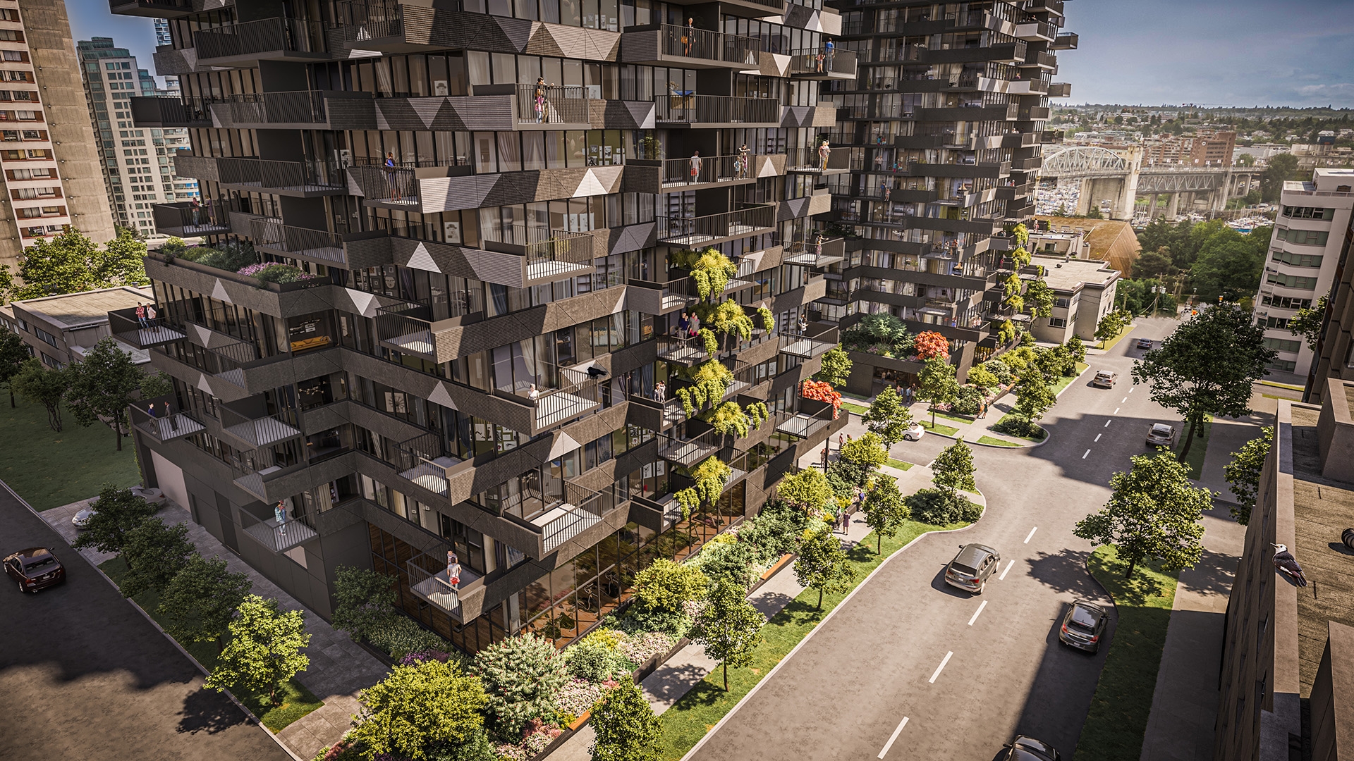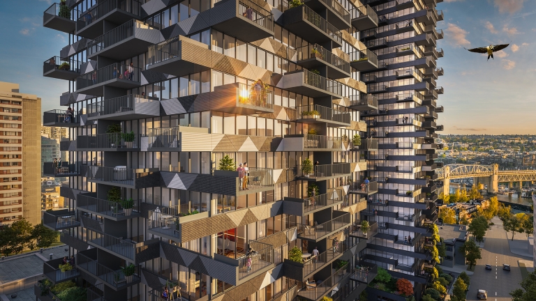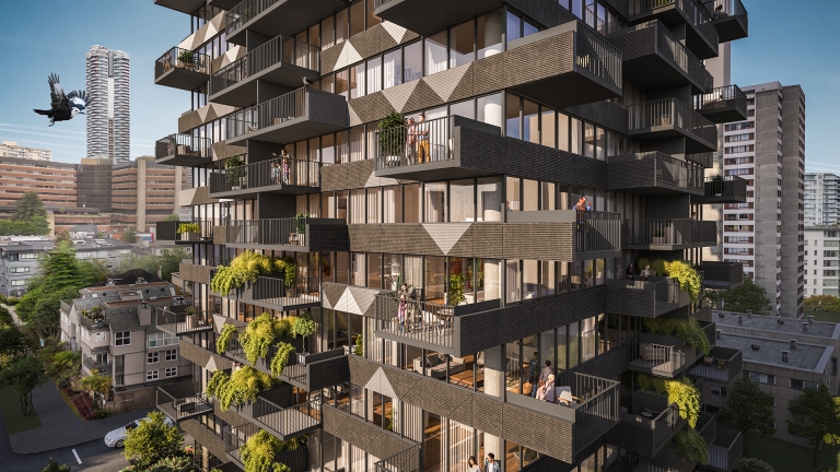 Vancouver’s West End is one of North America’s most densely populated neighbourhoods, yet one of the most livable communities. Harwood consists of two towers on a shared podium. Its 549 residential rental units include 20% at below-market rates, addressing the diverse local community.