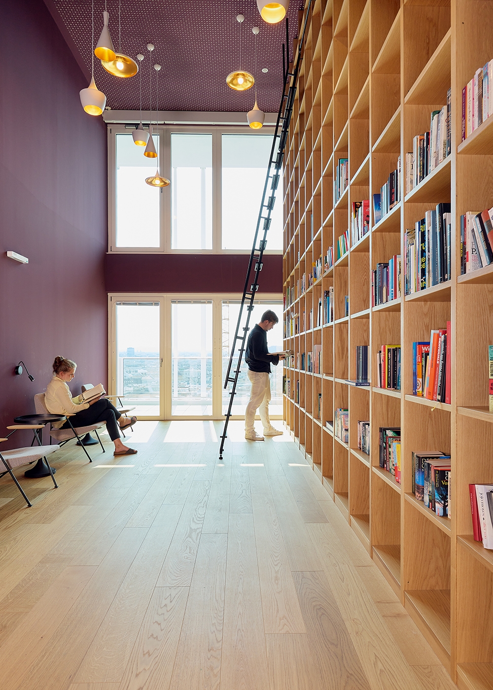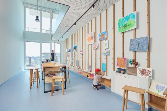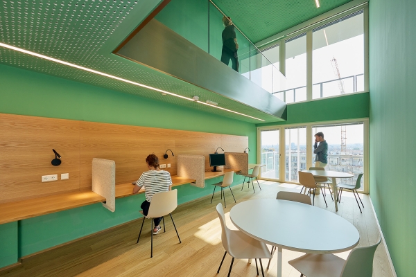 A standout feature of Taborama is its multi-storey community rooms, distributed throughout the building and accessible to all residents. These spaces, such as a children's playroom, a crafts and painting area, shared offices and a library, strengthen a sense of community and enhance the shared living experience.