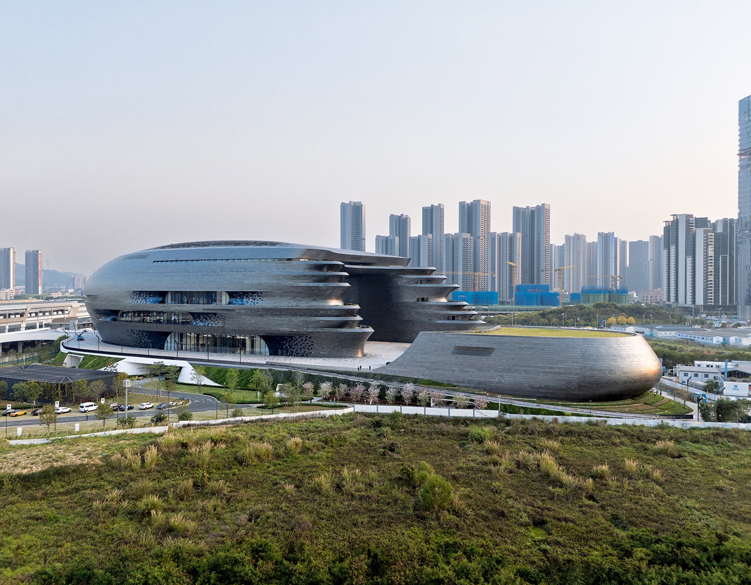 The museum incorporates 35,000 sq. m of permanent and temporary exhibition halls and galleries, with 6,000 sq. m of immersive theatres and cinemas, as well as 5,400 sq. m of research laboratories, educational facilities and an innovation centre. Additionally, 34,000 sq. m of visitor amenities and storage join production and maintenance workshops. The many galleries within Shenzhen’s new scientific institution emerge from the floor and walls of its central atrium, while other galleries float above the awesome scale and composition of the atrium’s grand public space, each giving visual clues that intuitively direct visitors through the museum’s series of interconnected spaces.
