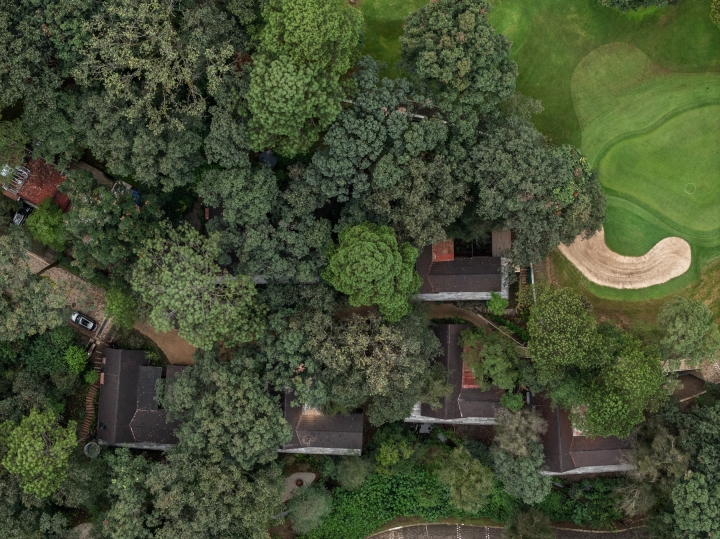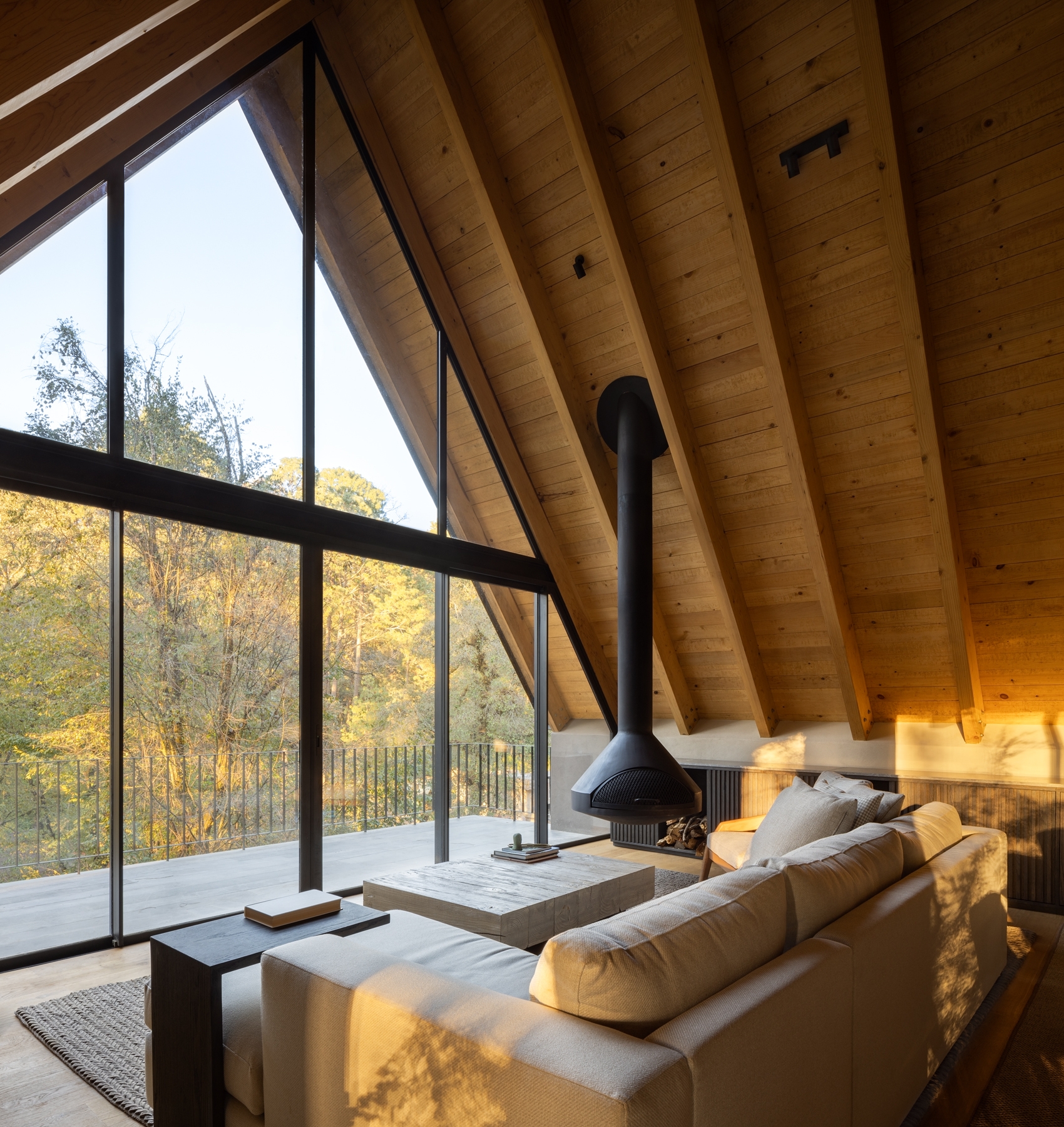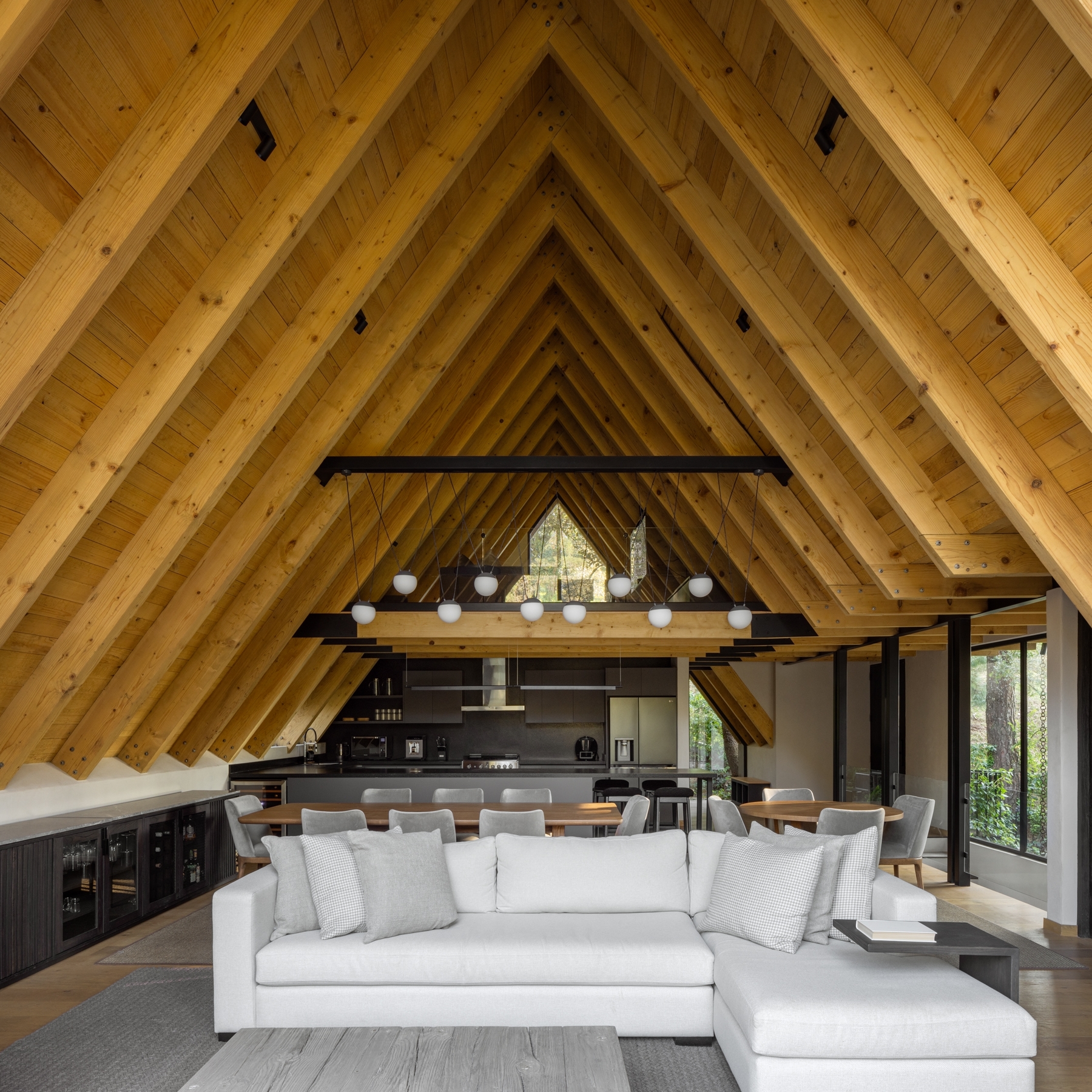 El Ocojal is a residential complex of six 350 m2 houses nestled in the forest over a plot of 7,000 m² in a weekend destination for Mexico city inhabitants. Its name refers to the predominant vegetation of the area. The project was conceived with the objective of minimizing intervention in the environment, preserving the existing vegetation and carrying out only minimal logging of three trees, thus ensuring the integration with the landscape. It is achieved both through the layout of the houses and through the use of materials such as timber and clay-tile that respond to the natural context, establishing a color palette aligned with the context.The A morphology provides spatial amplitude, with double-height areas and large windows that frame the landscape and establish a direct visual connection with the surroundings.
