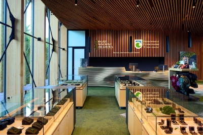 Every element expresses the Maori values of kaitiakitanga (guardianship of the natural world) and manaakitanga (generous hospitality). Constructed with locally grown timber and crafted by local hands, the centre serves as both a regenerative tourism anchor and a vessel for intergenerational knowledge. Artworks, materials, and spatial rituals embed ancestral stories into every surface.