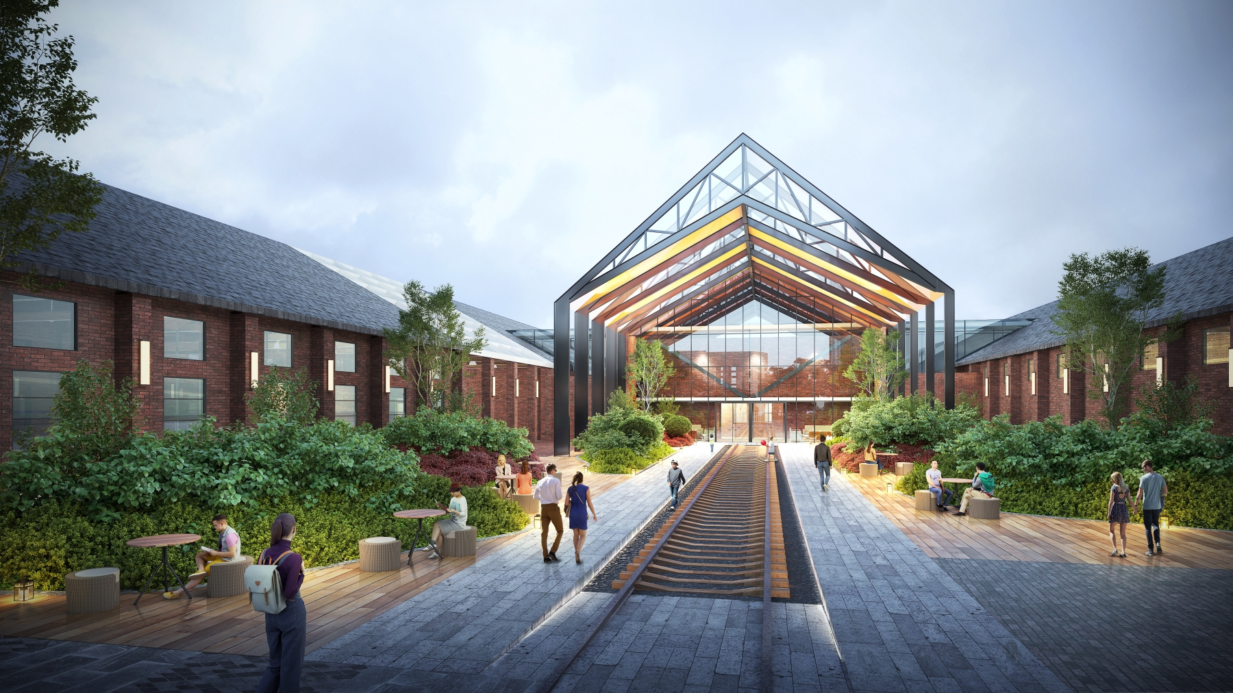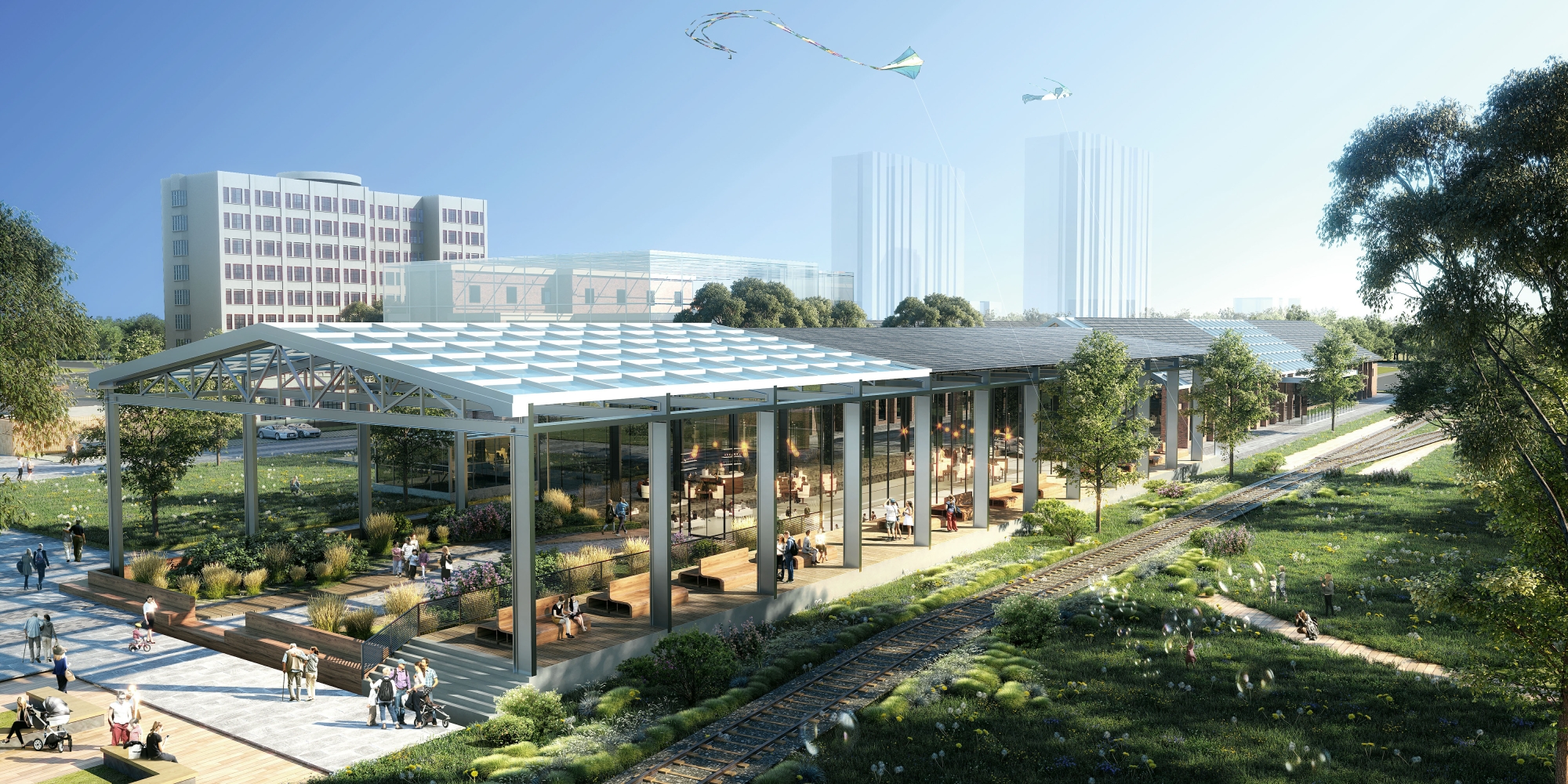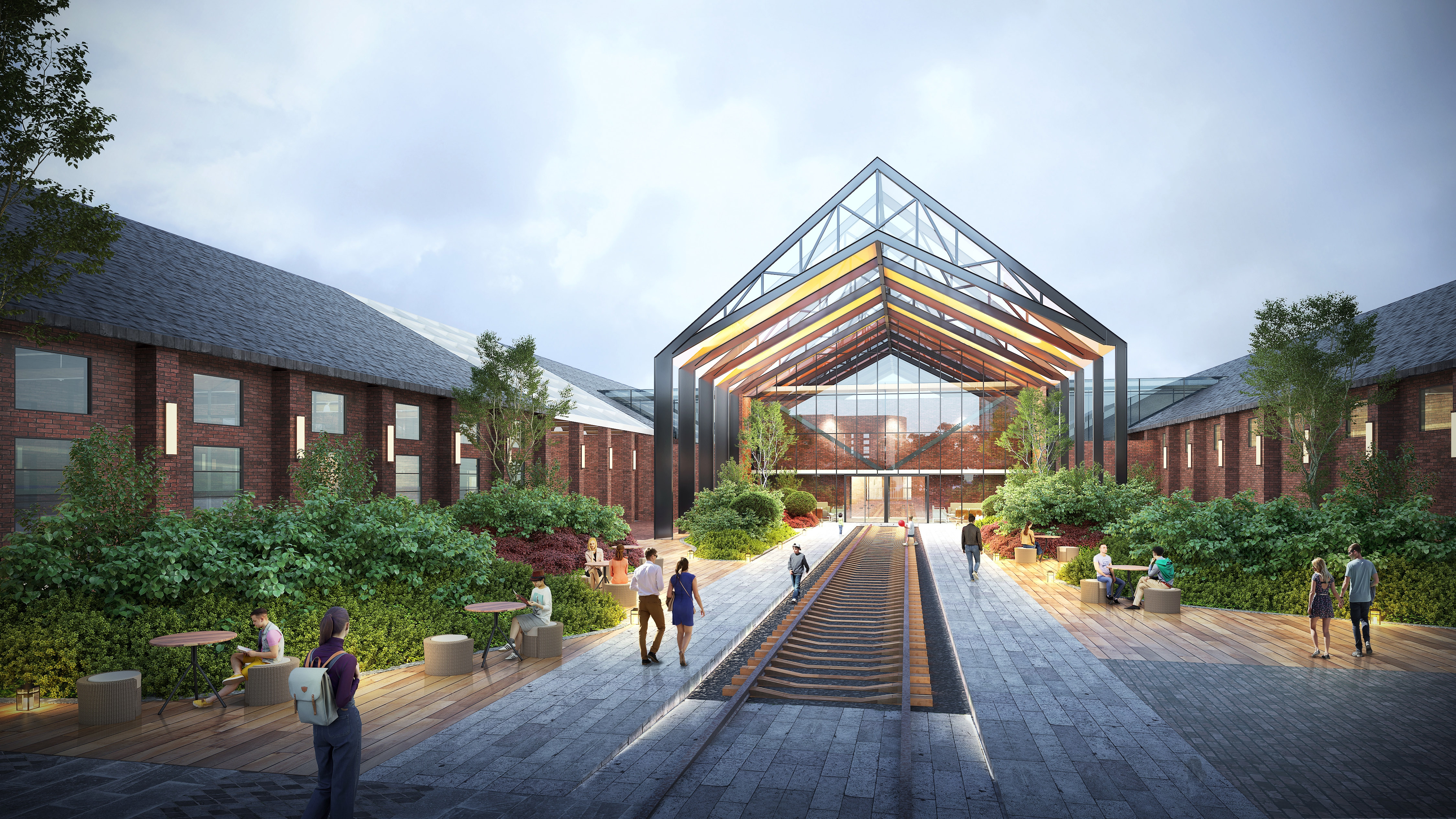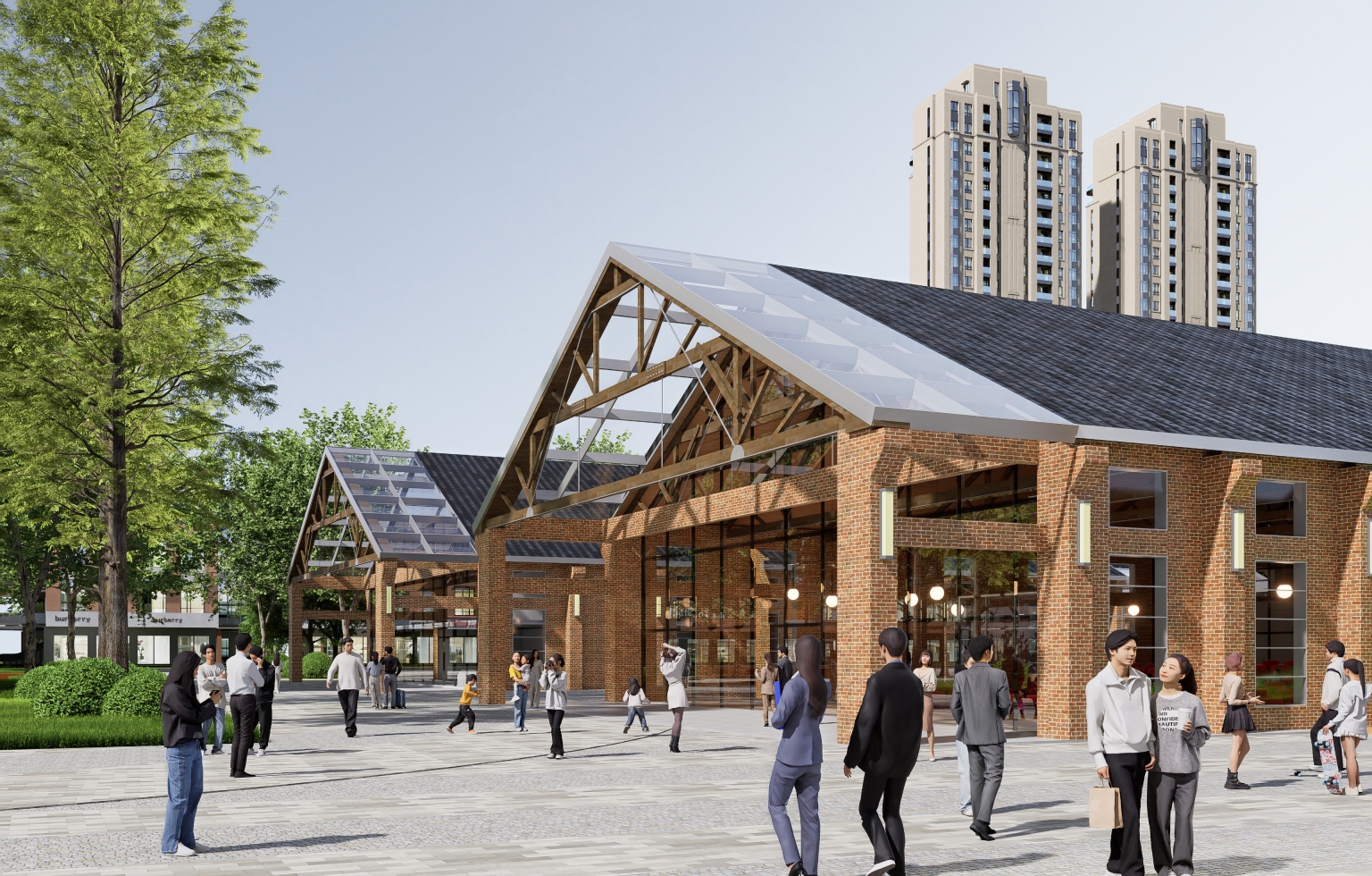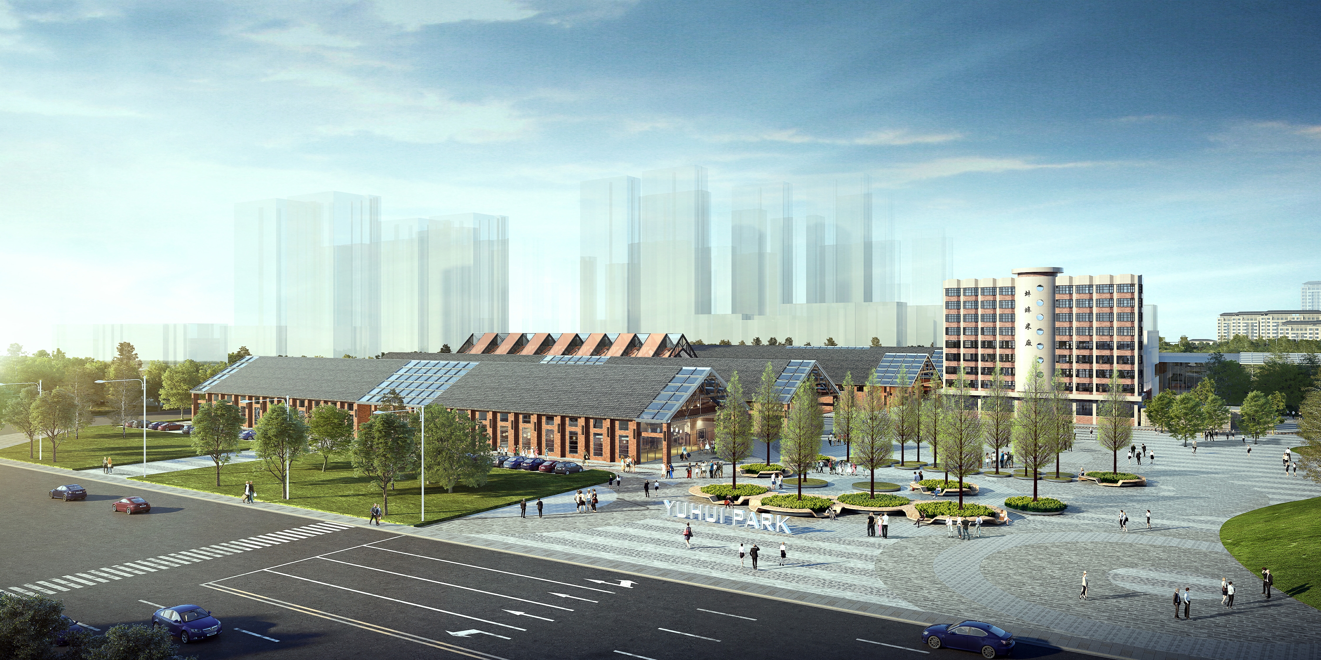 There is a railway track within the project that used to transport rice to the rice factory. We will keep this railway track and update both sides of the track to become a railway park, which will seamlessly connect the rice factory building complex, Yuhui District government, and waterfront park. By preserving the original historical traces as much as possible, bring new vitality into this post-industrial factory area.