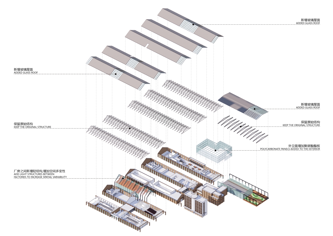The initial owner was planning to demolish the Bengbu rice factory. But when we went to the site for on-site inspection, we found that the rice factory complex covers factories from various historical periods such as the 1950s, 1960s, and 1980s, just like geological faults record the industrial architectural styles of different periods in Bengbu City. Especially the huge rice storage facility within the venue, measuring 60 * 25 meters, is truly awe inspiring. The indoor wooden frame has rich details and a strong sense of history.