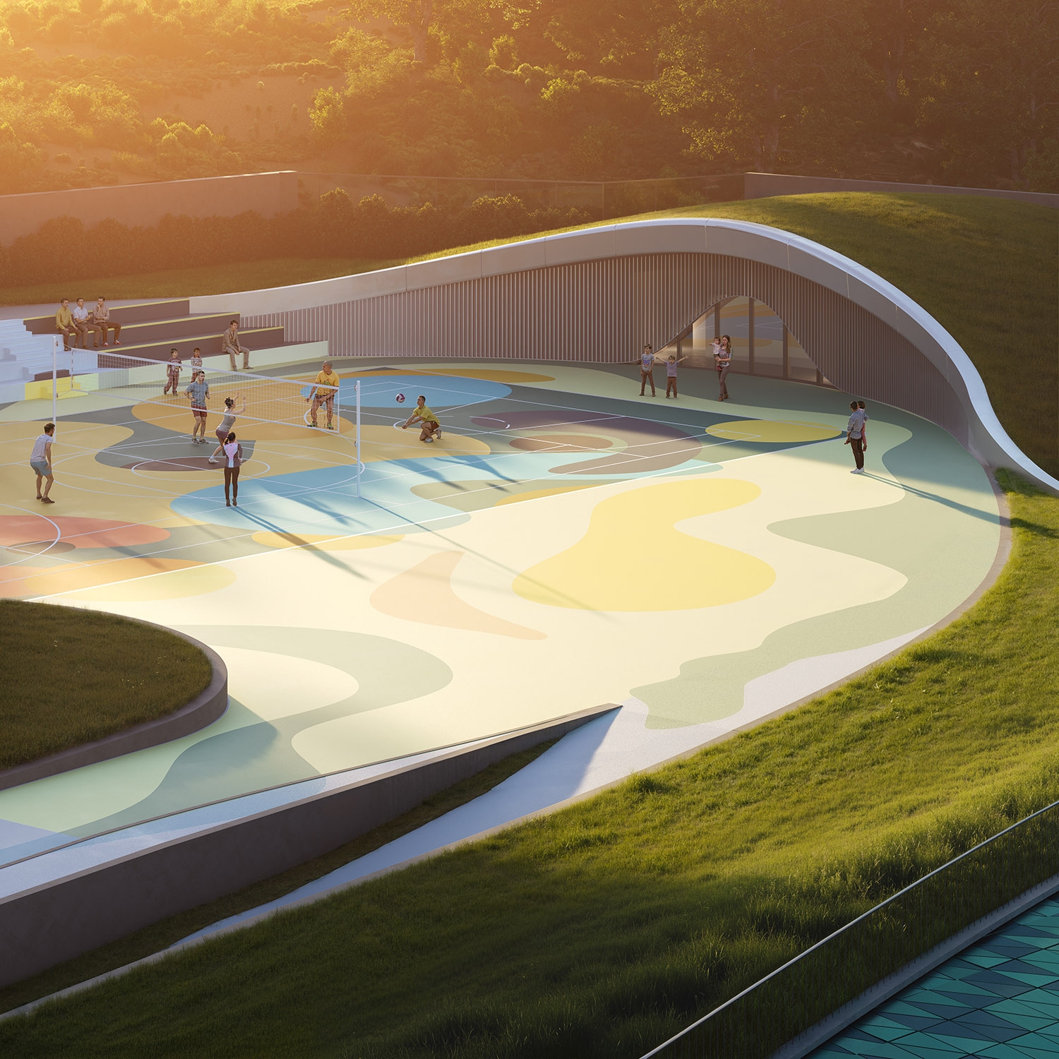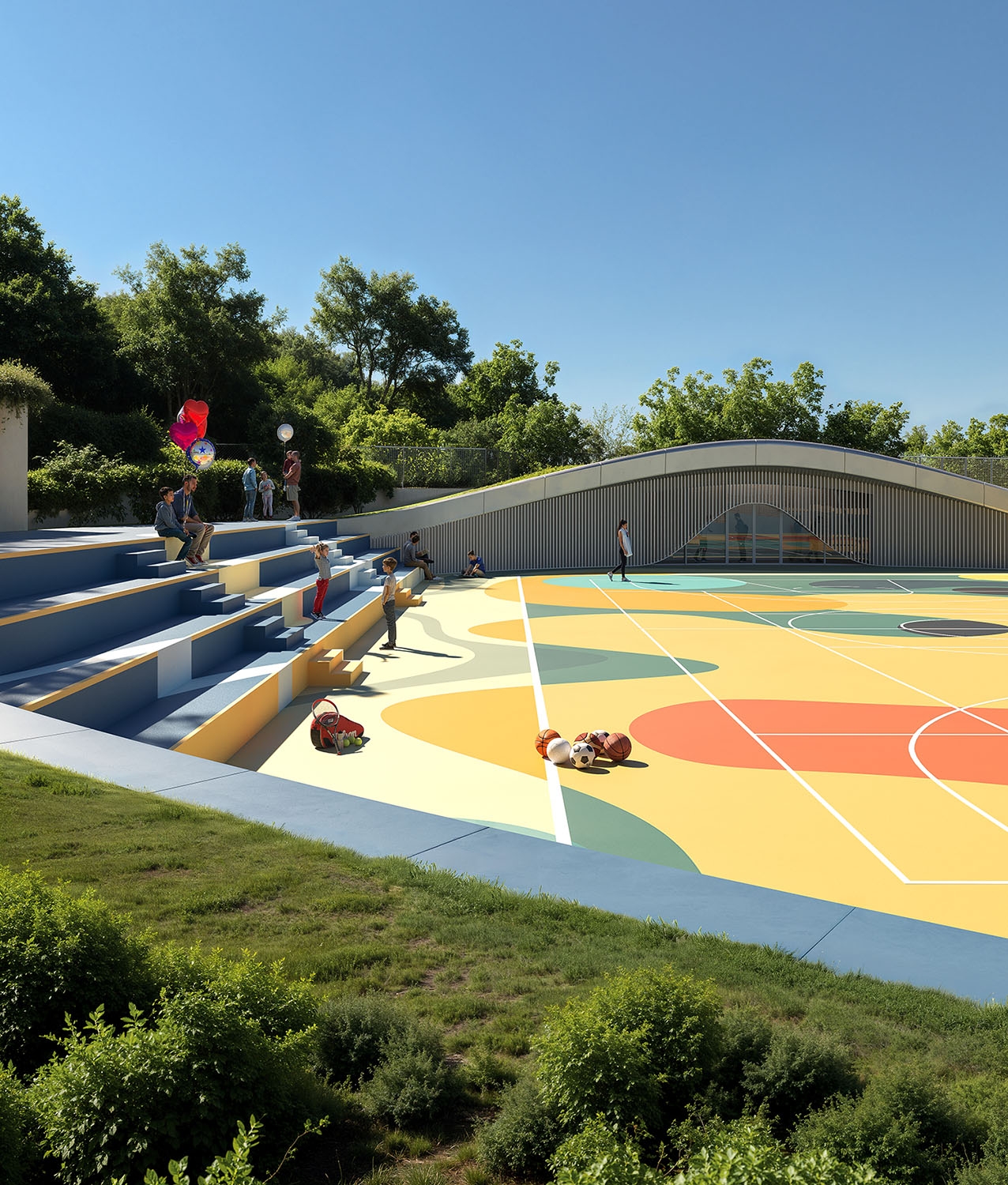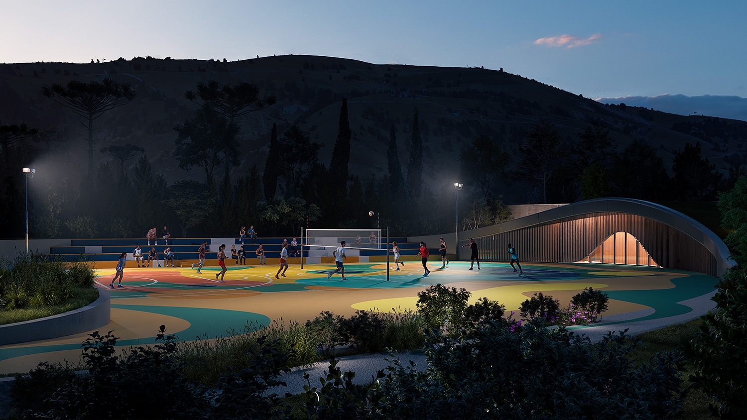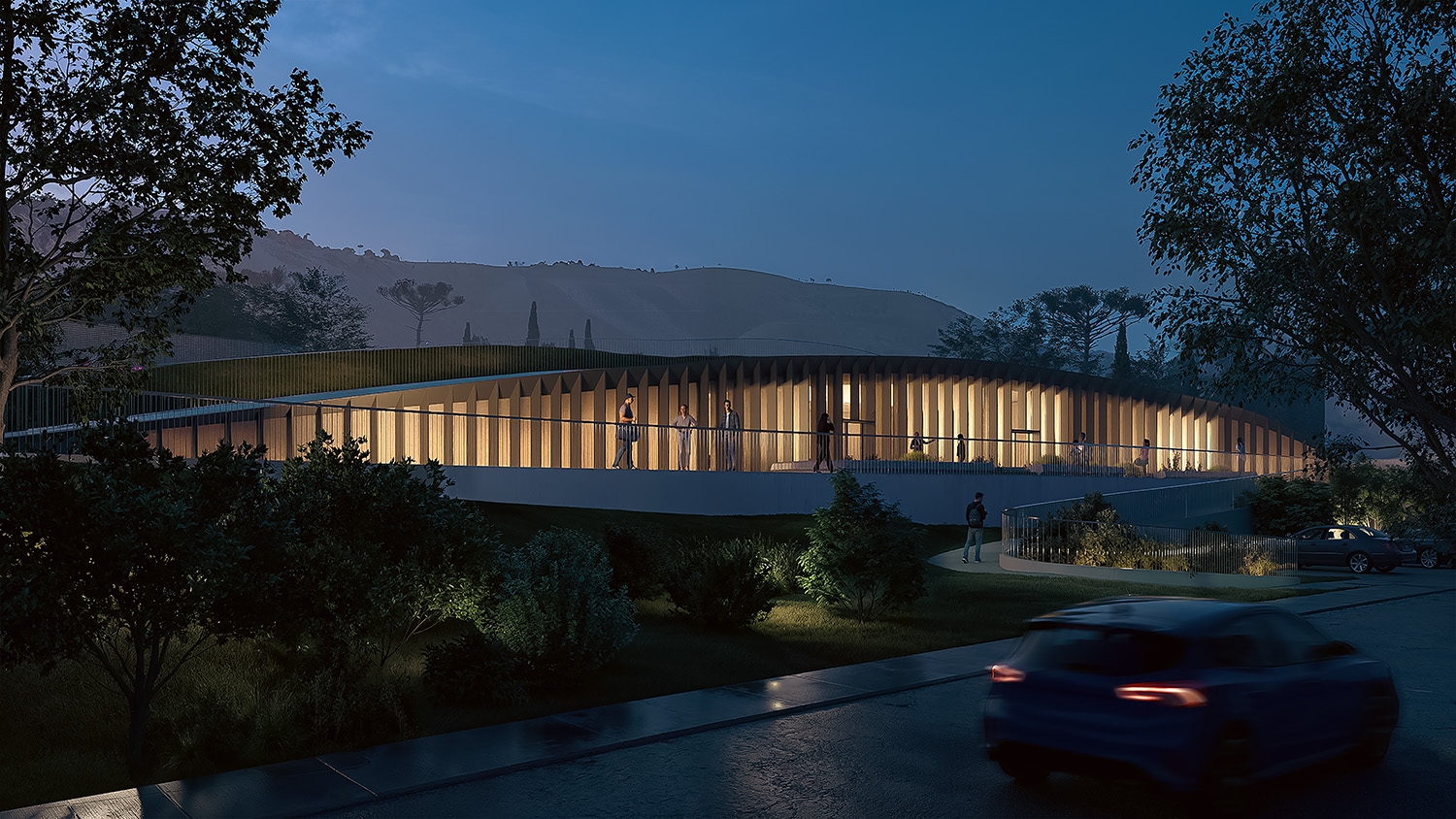 The regeneration of the Loreto district in Santa Maria a Vico is part of a broader urban program involving also Via Mandre and Via Panoramica. The project aims not only to recover abandoned areas but to transform them into vibrant places that foster community, encounter, and shared growth. Loreto regeneration is structured in three thematic areas. The first hosts a multifunctional building inspired by the natural forms of the surrounding landscape, designed as a dynamic center for culture, exhibitions, conferences, and collective work. The second area is dedicated to sports and socialization, with a multipurpose field for football, basketball, and volleyball, alongside a discreetly integrated service building with locker rooms and technical spaces. The third combines functionality and sustainability through a parking area conceived as part of the landscape, with curved lines, greenery, and accessible pedestrian paths. Sustainable rainwater management, low-consumption lighting, and eco-friendly materials reduce environmental impact. Loreto thus becomes a model of sustainable urban development, where modernity and nature coexist in harmony and design strengthens collective identity.
