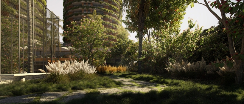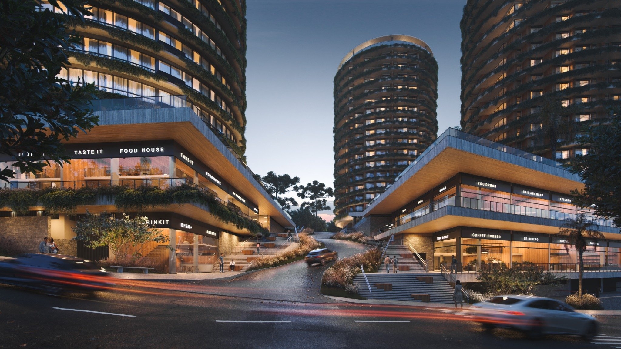 Guided by territorial consulting, the proposal addresses the lack of green spaces and tourist attractions downtown, fostering a dynamic urban experience. The development features five circular towers—three residential and two mixed-use—arranged around an elevated public plaza envisioned as an inviting pedestrian destination, and a winding street. The active commercial base ensures a continuous flow of people, cultivating an atmosphere of energy and engagement.
