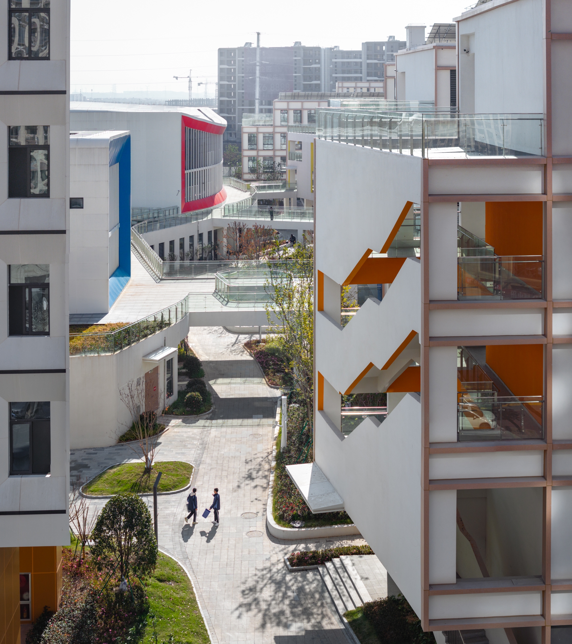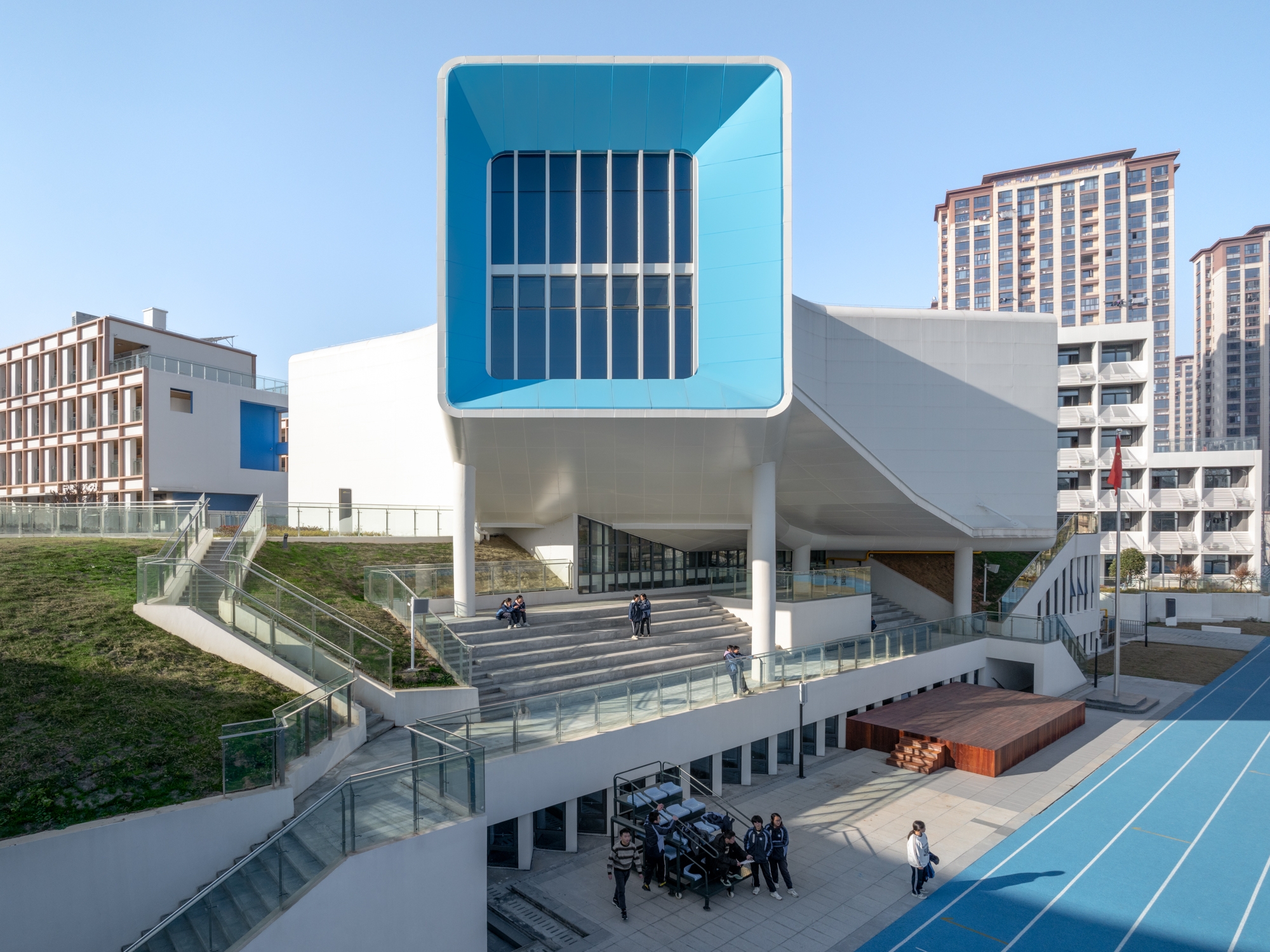 Quzhou No.6 Experimental School covers 67,500 sqm, with a 36-class primary and 18-class middle school. The design redefines the conventional campus by introducing a “campus street” system—an open, interconnected framework linking teaching, hybrid, and cultural zones across varying scales. Inspired by the “Tree of Growth” concept, the campus integrates pocket gardens, terminal volumes, and informal grey spaces to create a multi-layered learning environment. The main street and secondary paths traverse rooftop terraces, sunken gardens, and semi-enclosed courtyards, allowing students to explore, interact, and learn beyond the classroom. Teaching clusters follow a rhythm of “corridor–terminal–grey space,” fostering spontaneous encounters. The cultural and sports center, nestled in a landscaped slope, offers venues for gathering, performance, and play. By softening the boundary between formal and informal learning, the project creates a vibrant, flexible, and future-oriented landscape. The architecture encourages curiosity, creativity, and collaboration, offering a model for school design that supports holistic student growth.