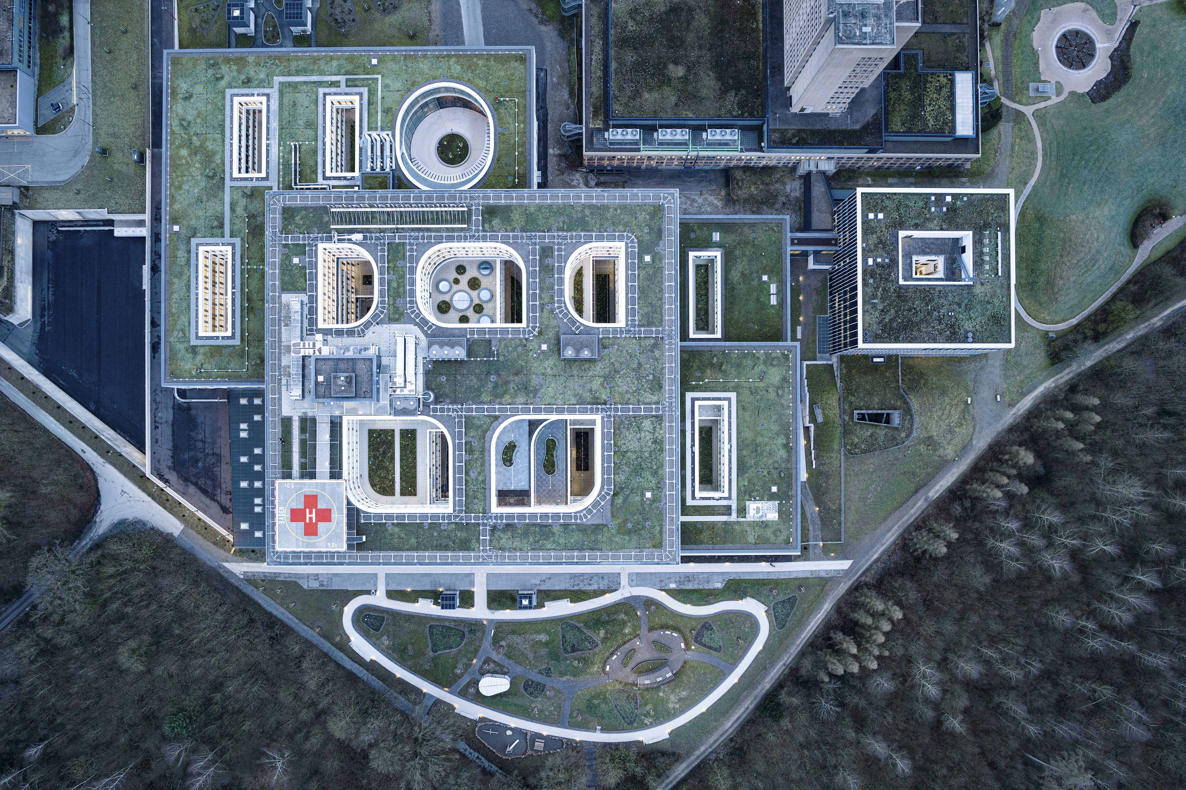A state-of-the-art facility designed to seamlessly integrate healthcare, technology and sustainability: the 76,215 m² structure replaces an outdated 1978 building with an entirely new approach prioritizing efficiency, adaptability and human-centered care. With 30% more space than its predecessor, it marks a bold departure from traditional hospital architecture. Designed as a holistic healing space, it favors single and double rooms over overcrowded wards, promoting comfort and recovery. Natural light floods the interiors through large windows and eleven inner courtyards, creating a calming atmosphere and reinforcing a connection to nature. The layout ensures seamless navigation, enhancing operational flow and the experience of patients and staff. At the intersection of architecture and technology, the building uses BIM and over 7,000 IoT sensors to optimize energy, monitor movement and enable predictive maintenance. Sustainability is embedded: energy-efficient systems, local materials and biophilic elements minimize impact. More than a hospital, it is a visionary model redefining medical spaces as adaptive, intelligent and human-centered.