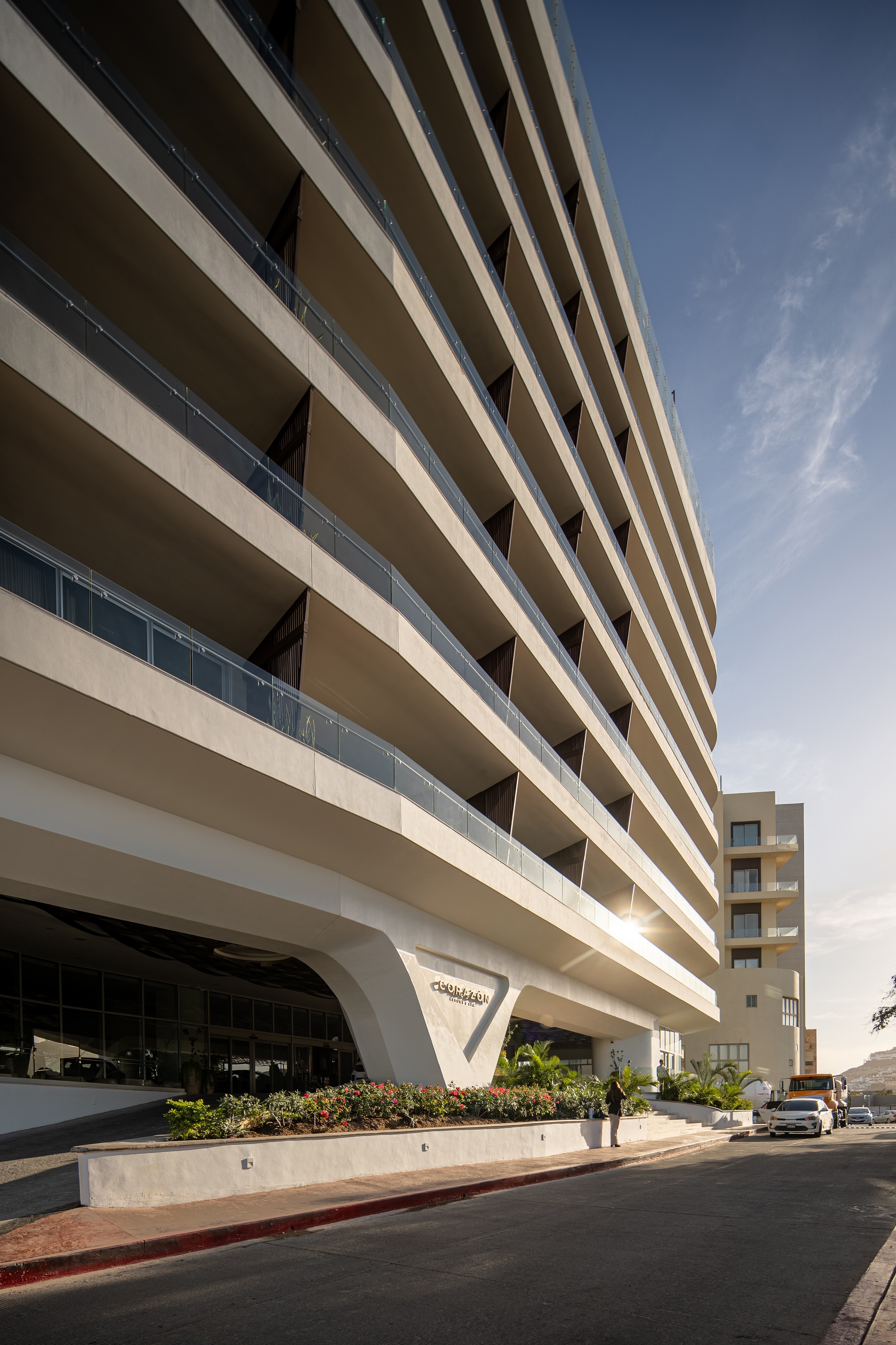 In Los Cabos, Mexico, Cabo Corazón Hotel is being renewed with the addition of Torre Corazón, an angular structure that connects and integrates the spatial relationships between the two original towers, consolidating a rehabilitation model that preserves the historical memory of the original building.