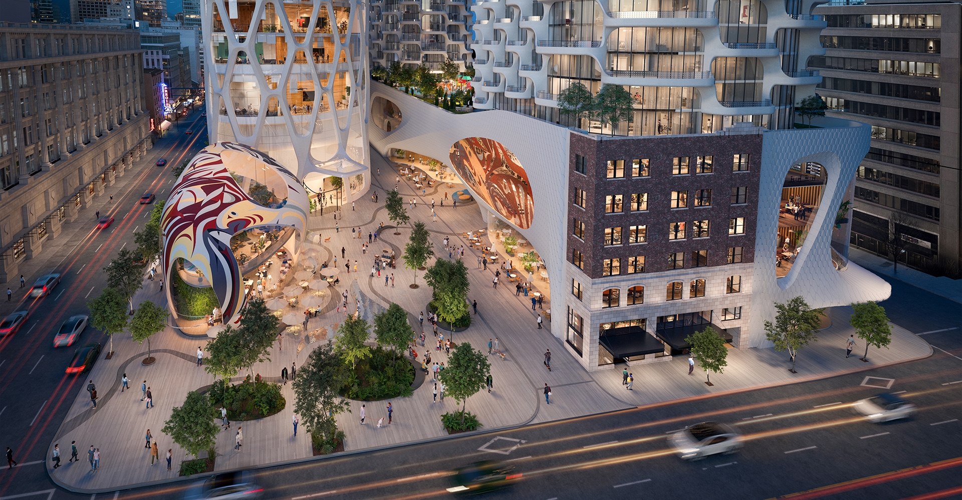 The development will create 1,939 new homes, a 920-room hotel, 70,000 ft² conference space, Indigenous-led reconciliation through art, and major public amenities across both sites. This transformative project will be a major economic catalyst for downtown Vancouver, creating thousands of construction and permanent jobs. By bringing a critical mass of residents, workers, and visitors into the core, the project will help create a more vibrant, welcoming, and safer downtown.
