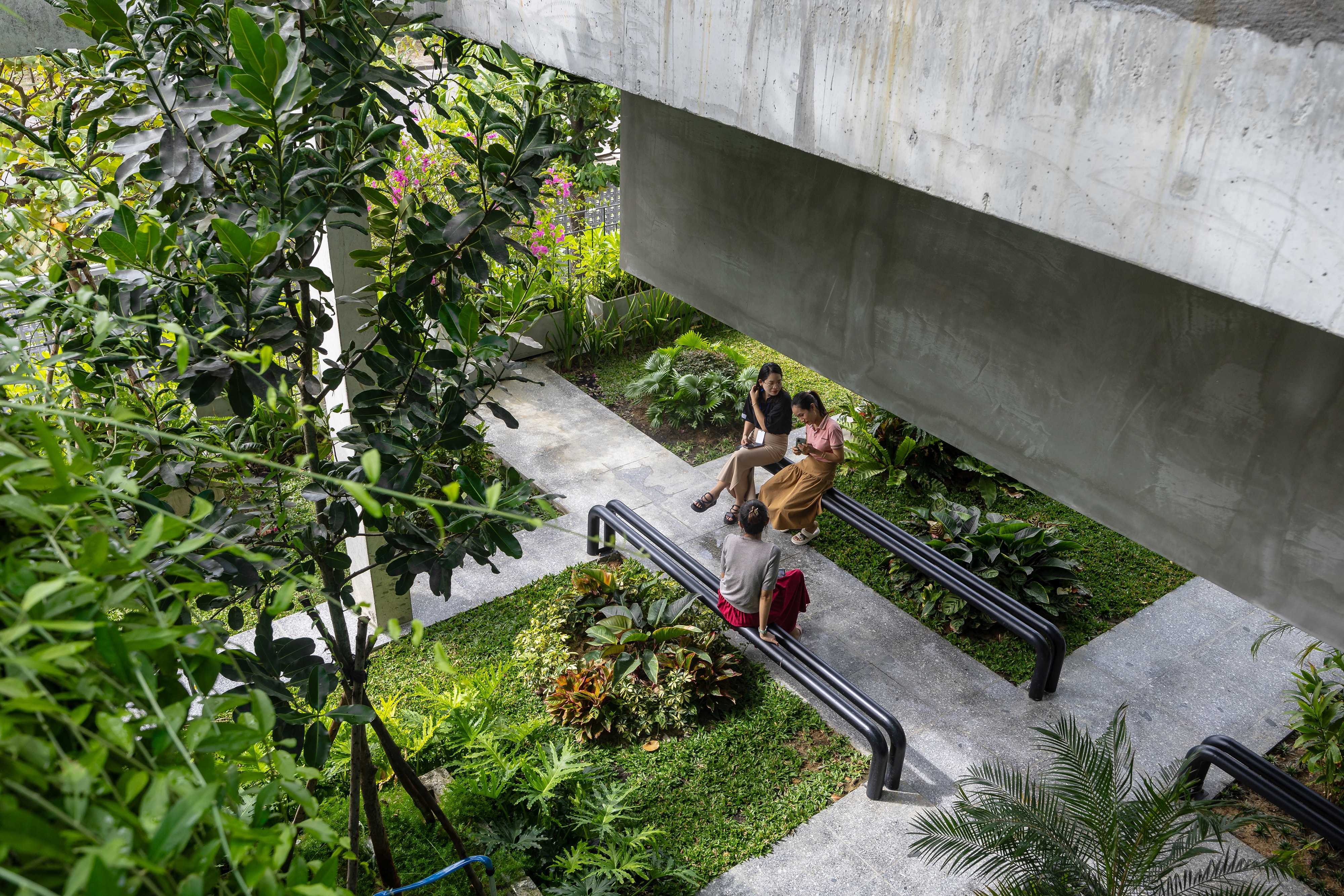 As a green building, integrated vegetation reduces heat gain and regulates the climate, fostering a healthier environment that improves mental and physical well-being. Socially, the project inspires pride and dignity within Vietnam's traditional textile industry.