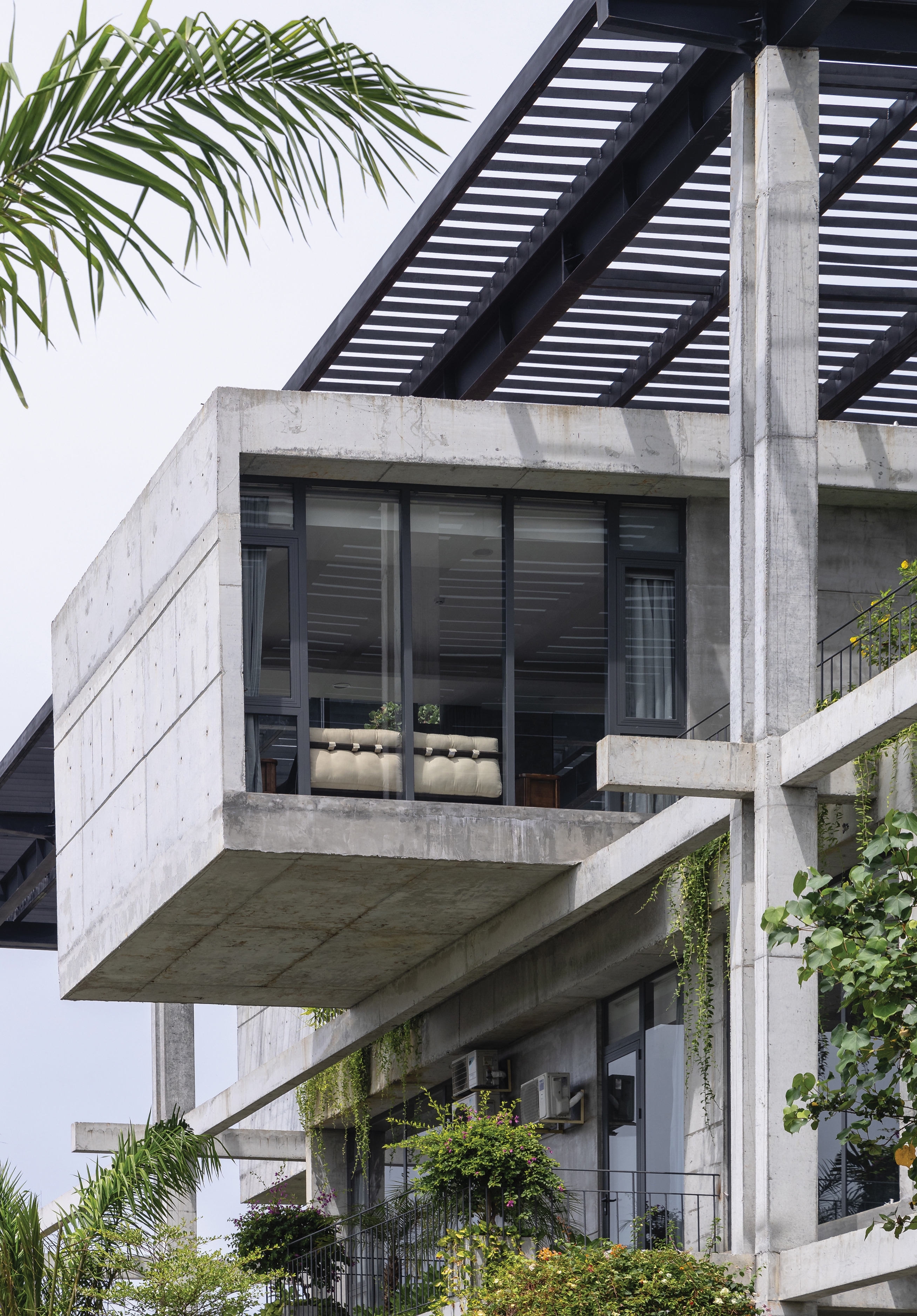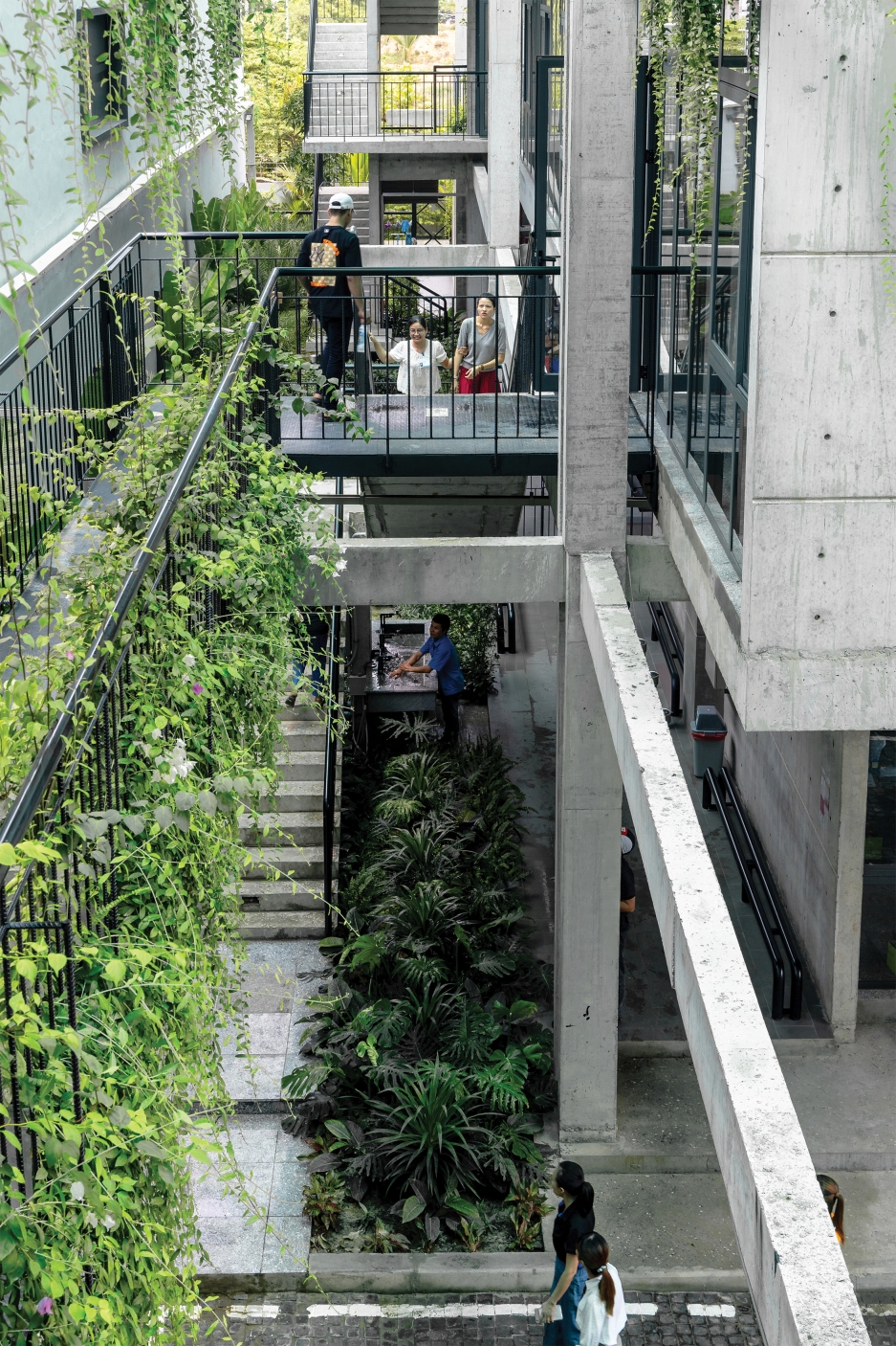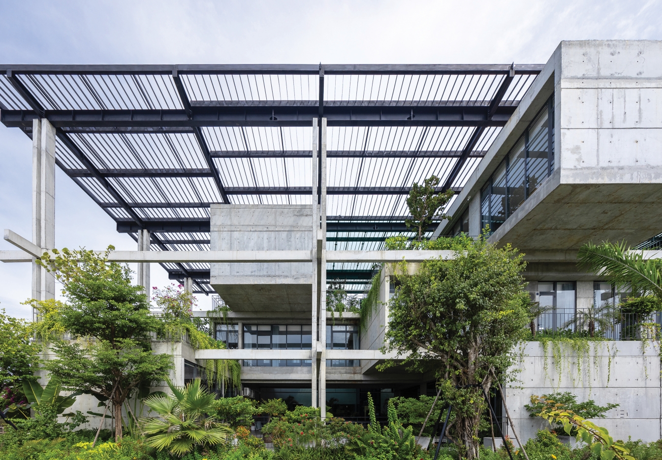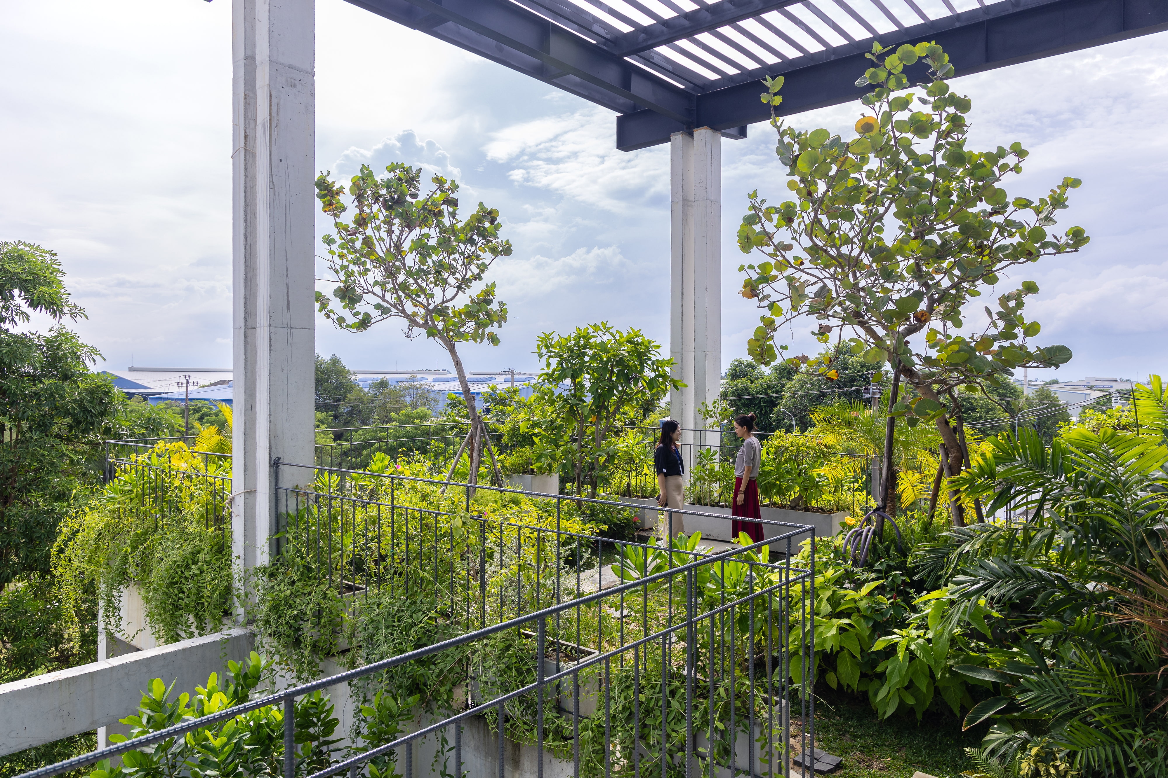 Inspired by a textile loom, a distinctive concrete frame is interwoven with lush greenery. This contrast creates a fresh architectural language that challenges the monotony of industrial typologies, bringing aesthetic novelty and value.