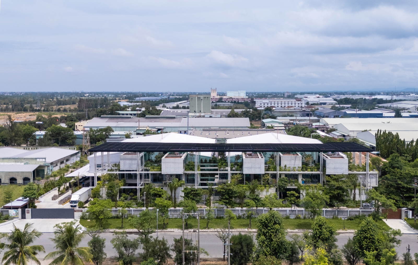 Completed in 2023 in Quang Nam, Vietnam, this project transforms a rigid industrial structure into a “Green Oasis” centered on human well-being.